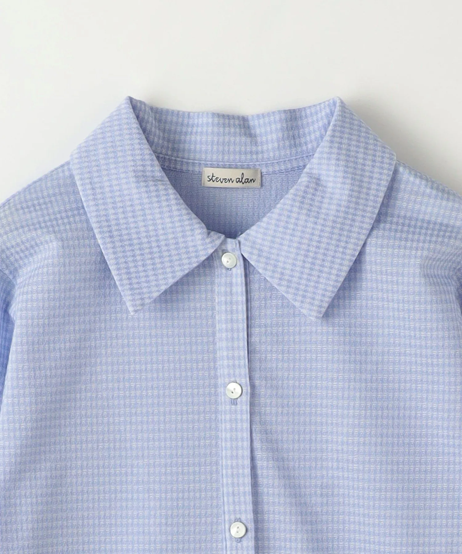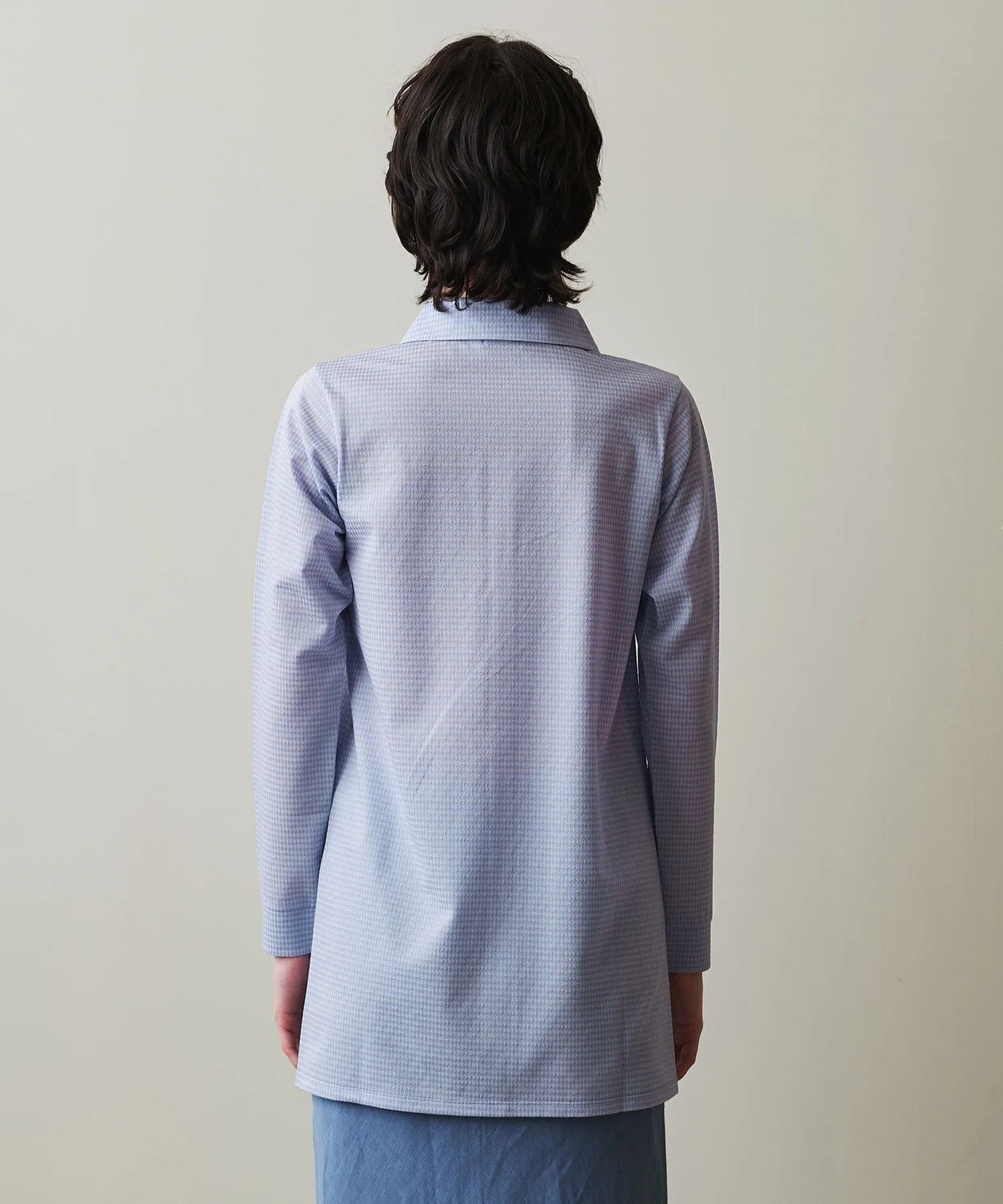 Рубашка-поло в стиле ретро с мелким клетчатым узором.