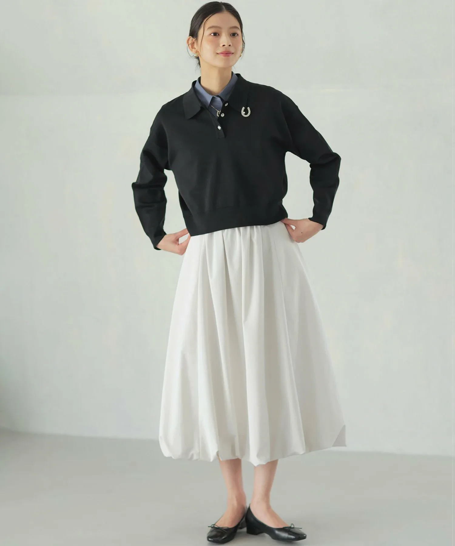 Этот вязаный свитер с отворотом наполнен фирменными женственными деталями Kumikyoku.