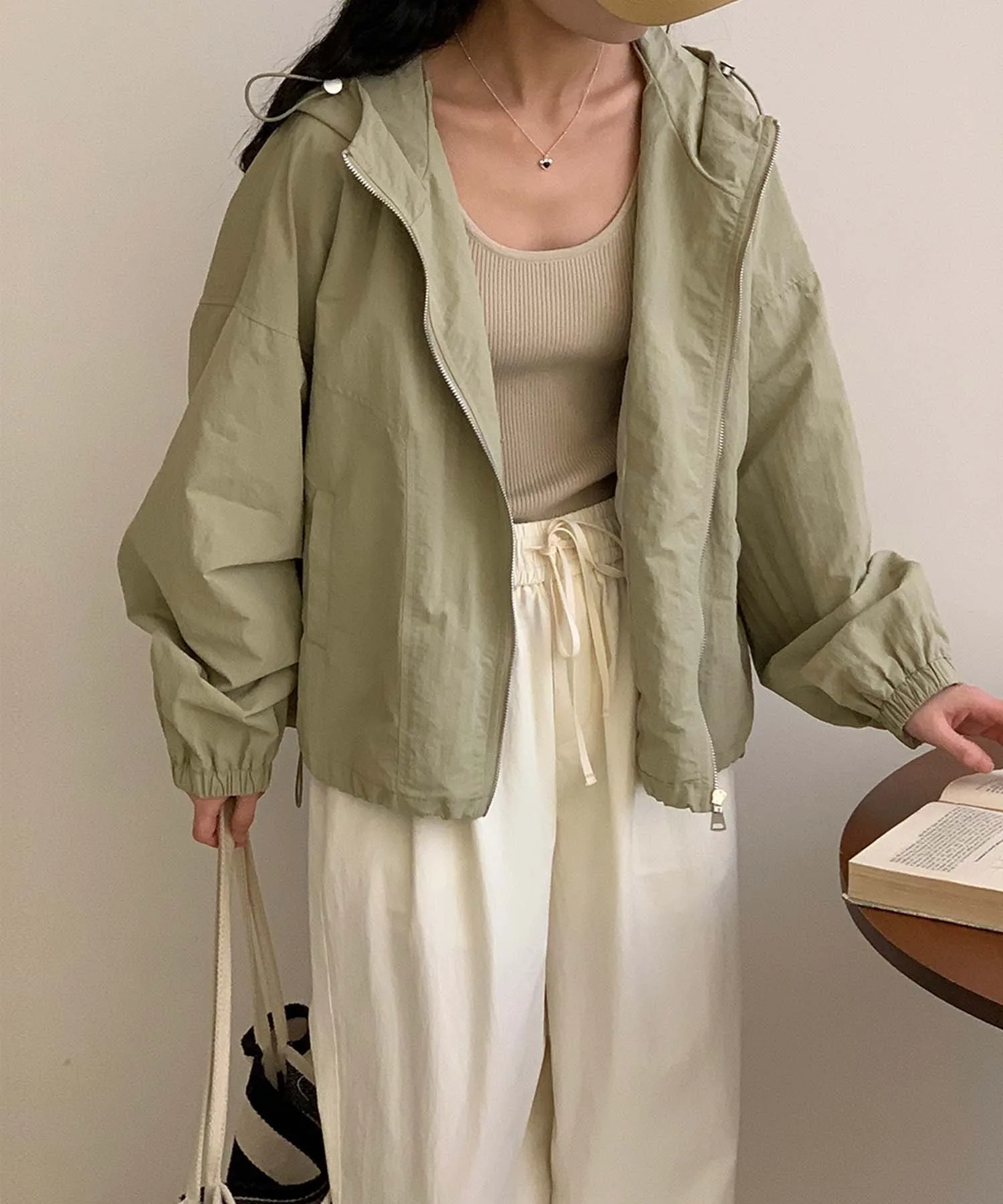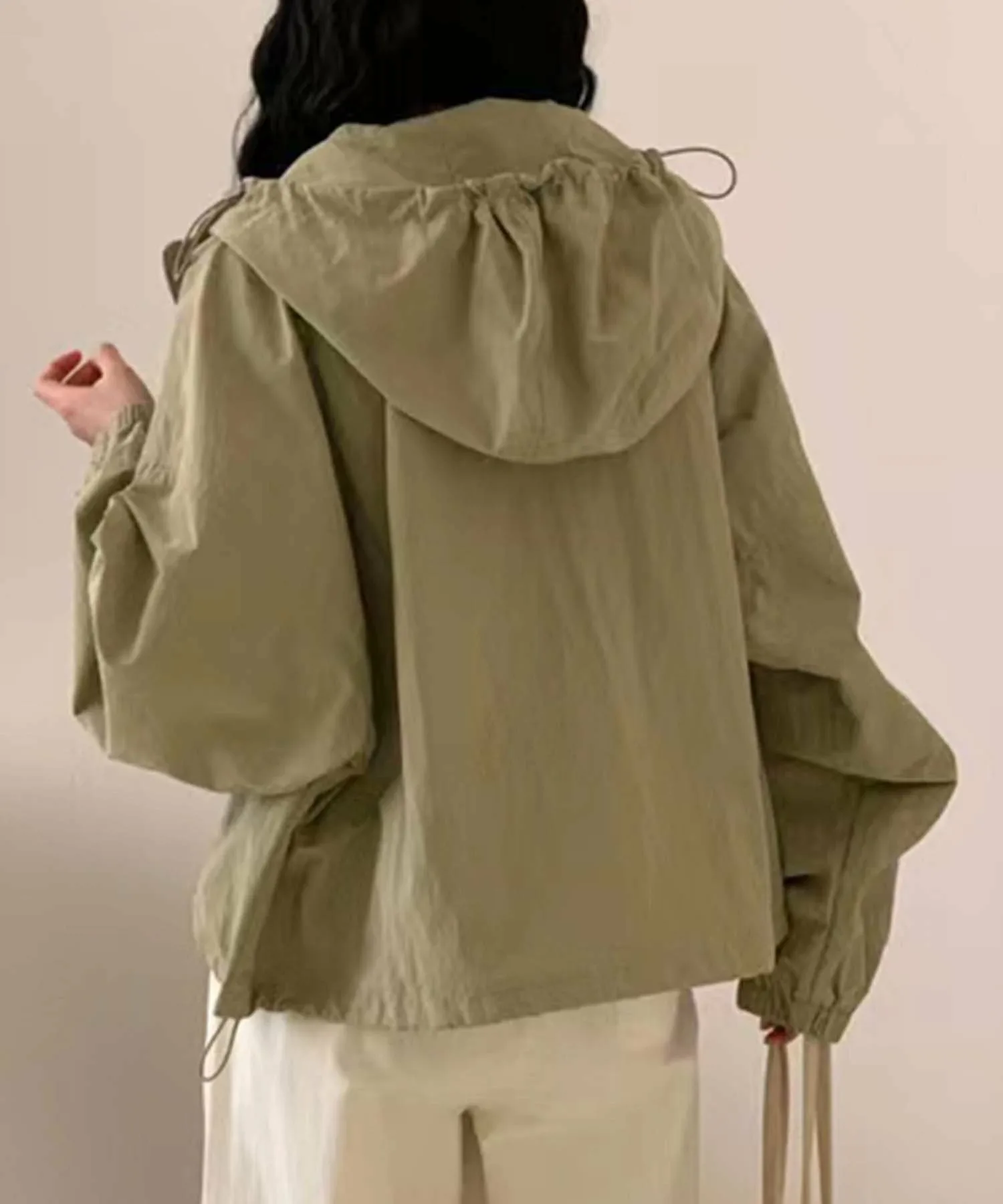 Короткая толстовка с капюшоном свободного силуэта. Несмотря на повседневный и спортивный дизайн, мягкий цвет добавляет нотку женственности. Сборки на манжетах — изюминка модели. Легкая и удобная в носке, она идеально подходит для повседневной носки.