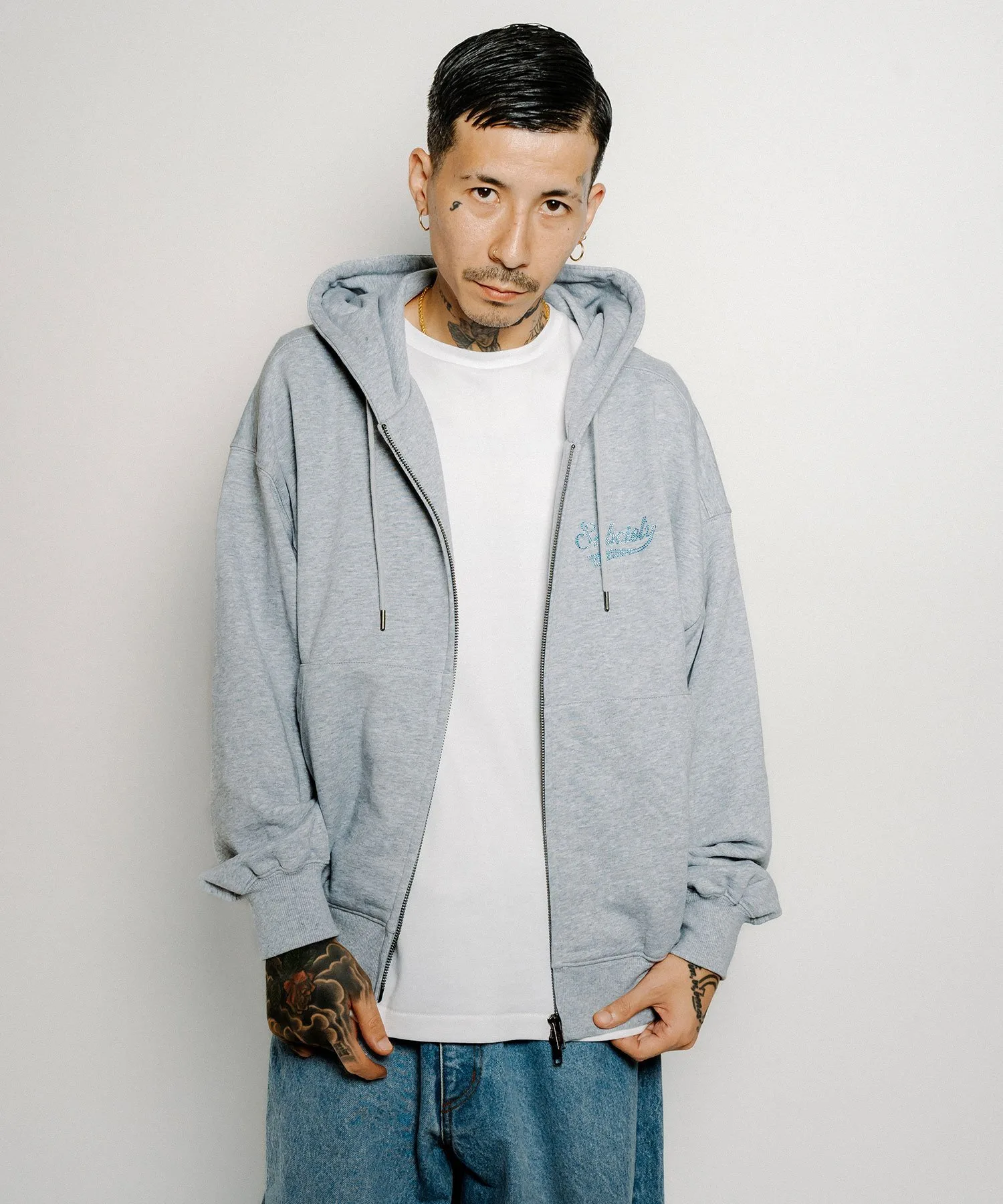 Худи на молнии со стразами Subciety, цвет Gray