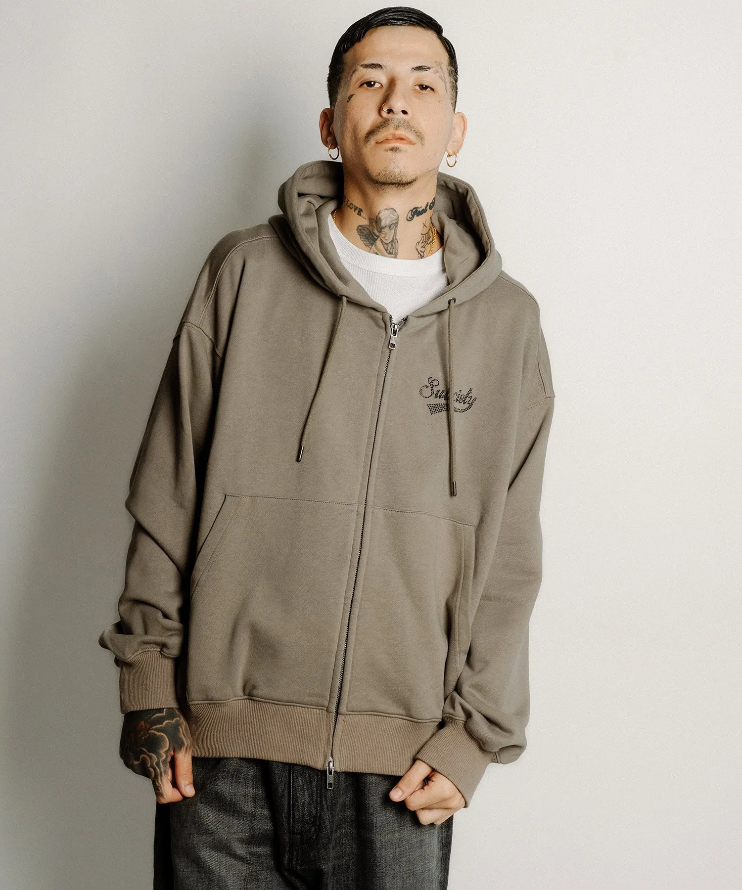 Укороченная толстовка на молнии со стразами