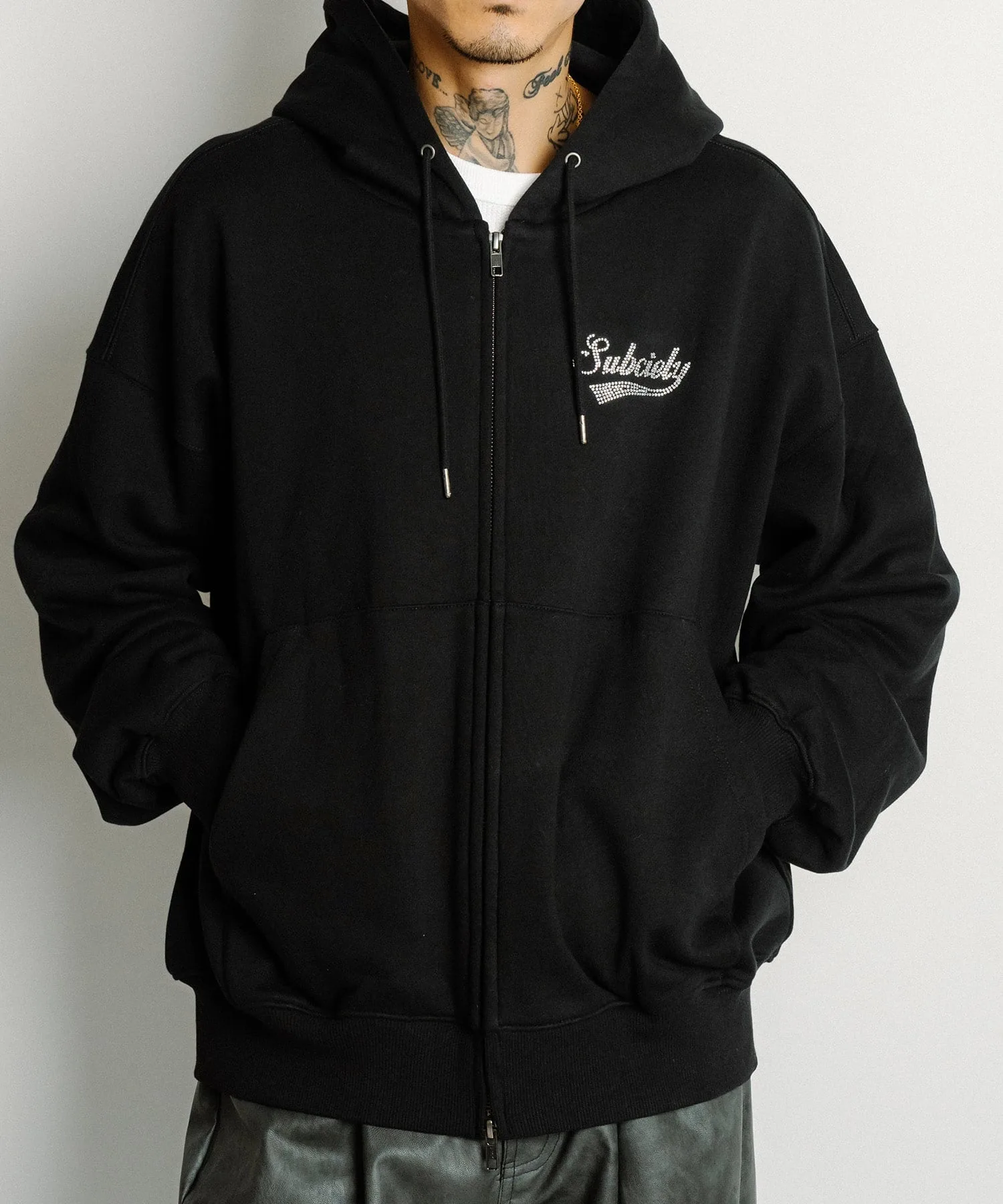 Укороченная толстовка на молнии со стразами