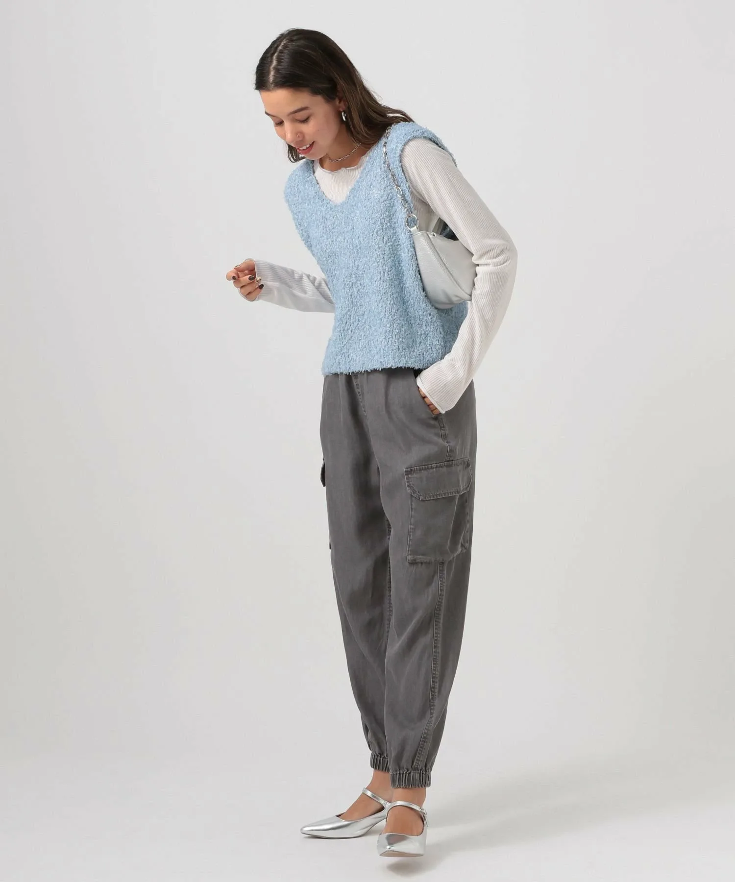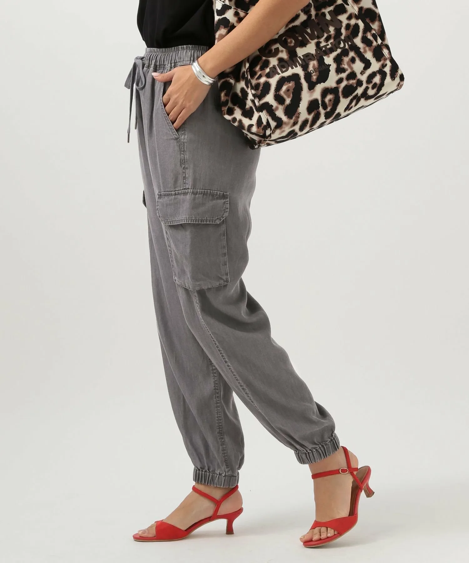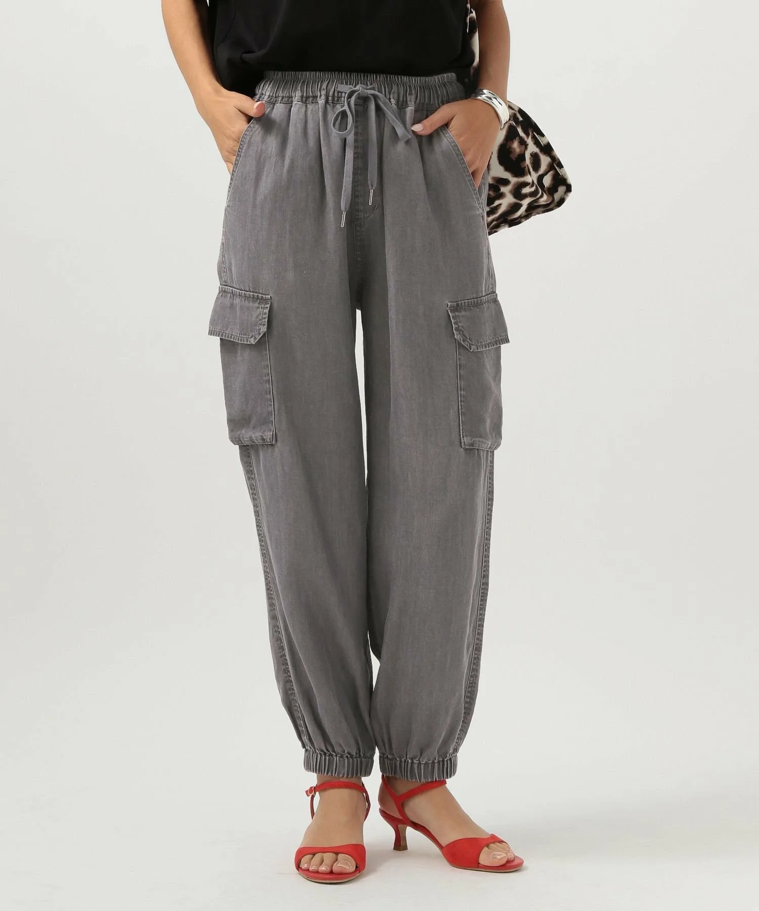 Полупрямой силуэт в стиле карго с нашивками и клапанами по бокам.