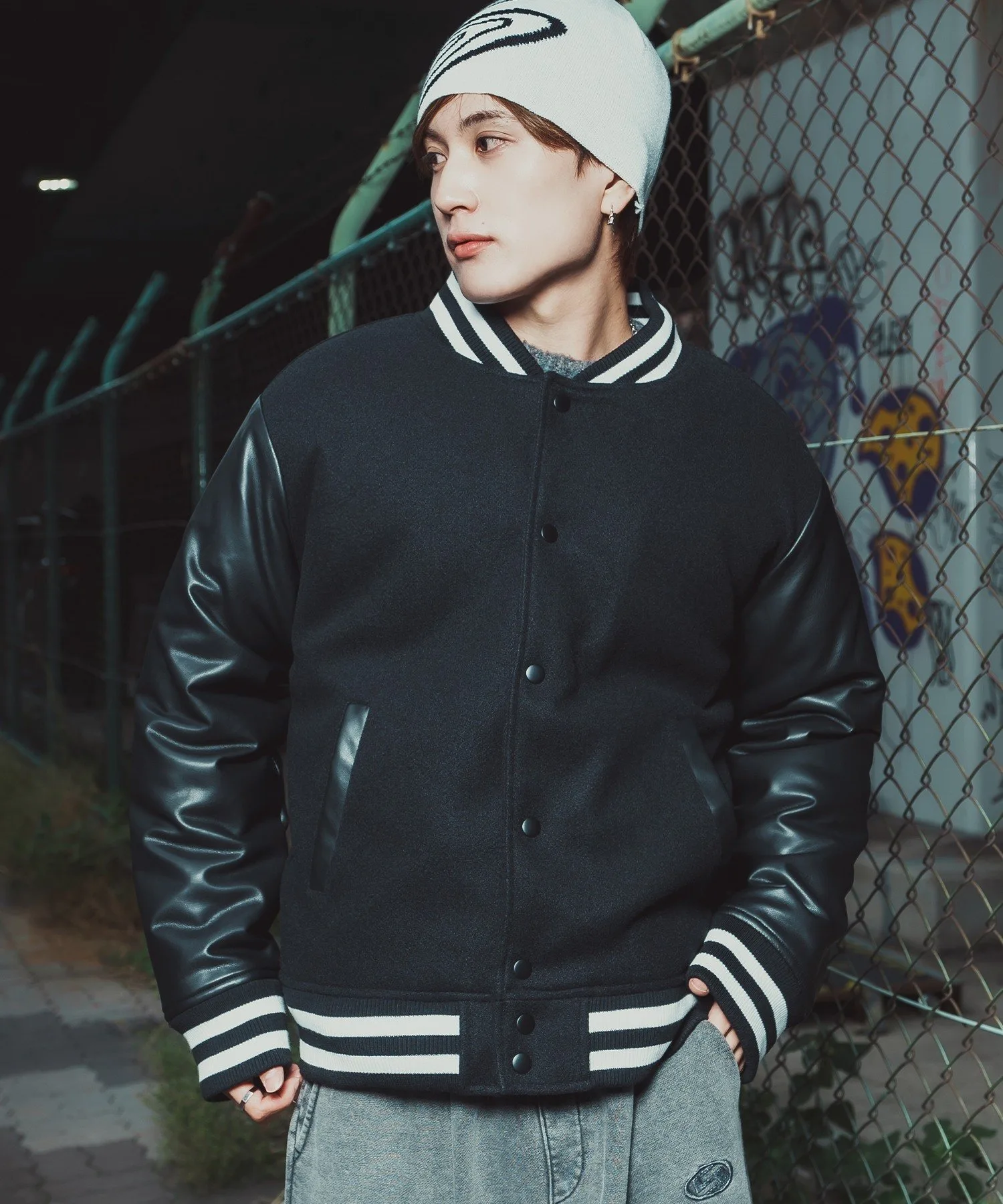 Эта вещь точно передает детали стадионной куртки, что делает ее идеальной для уличной моды 90-х, винтажного микса и стиля скейтеров.