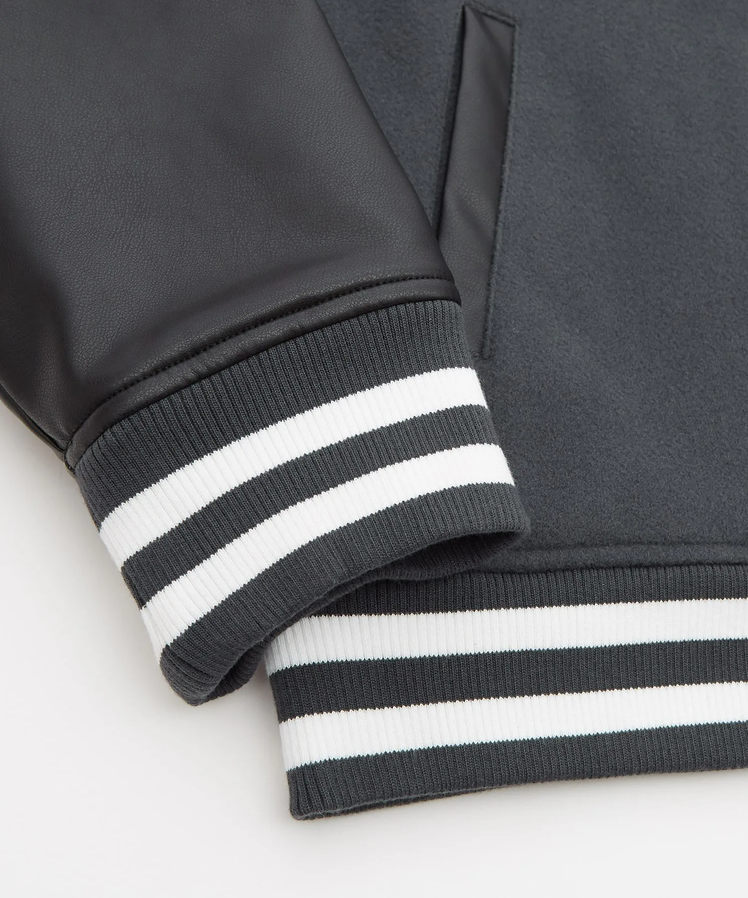 ●Рукава выполнены из синтетической кожи с матовой отделкой.