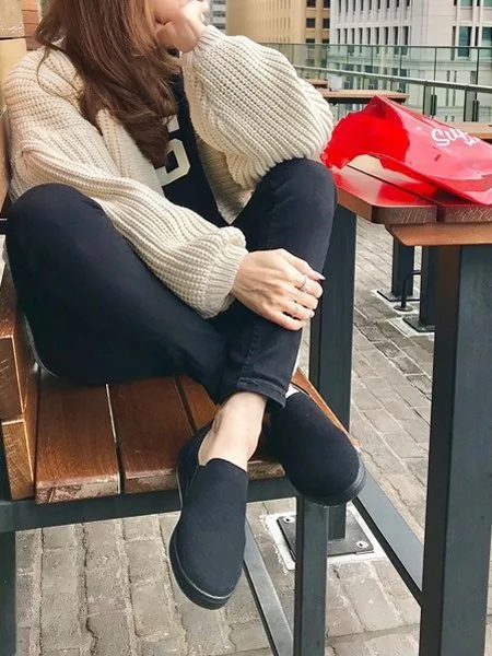 У меня немного широкие ступни, и обычно я ношу 23,5 см, но 23,5 см мне подходит даже без обуви. Они имеют изящный и стильный дизайн, как у слипонов, но материал мягкий, поэтому вы можете носить их, не беспокоясь о ширине.