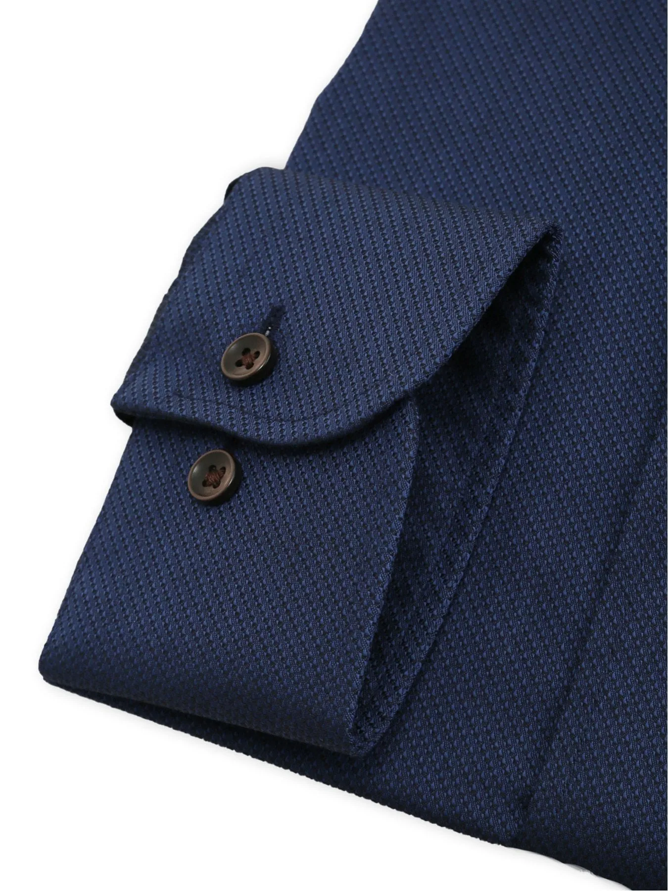 Дизайн Рубашка имеет текстурированное жаккардовое плетение. Широкий воротник имеет широкое отверстие, что облегчает его ношение с галстуком. Узел «Виндзор» с его красивой, объемной, перевернутой треугольной формой — отличный выбор для завязывания. Отдельная ткань внутри стойки воротника добавляет акцент.