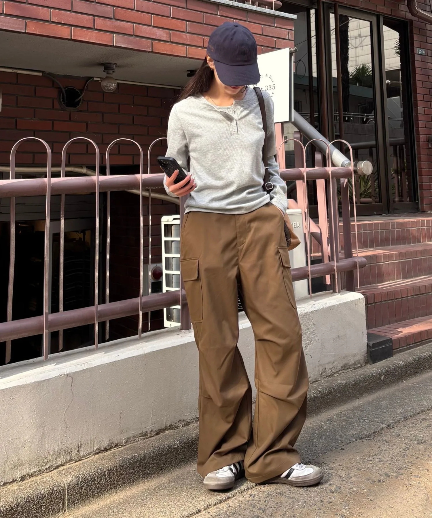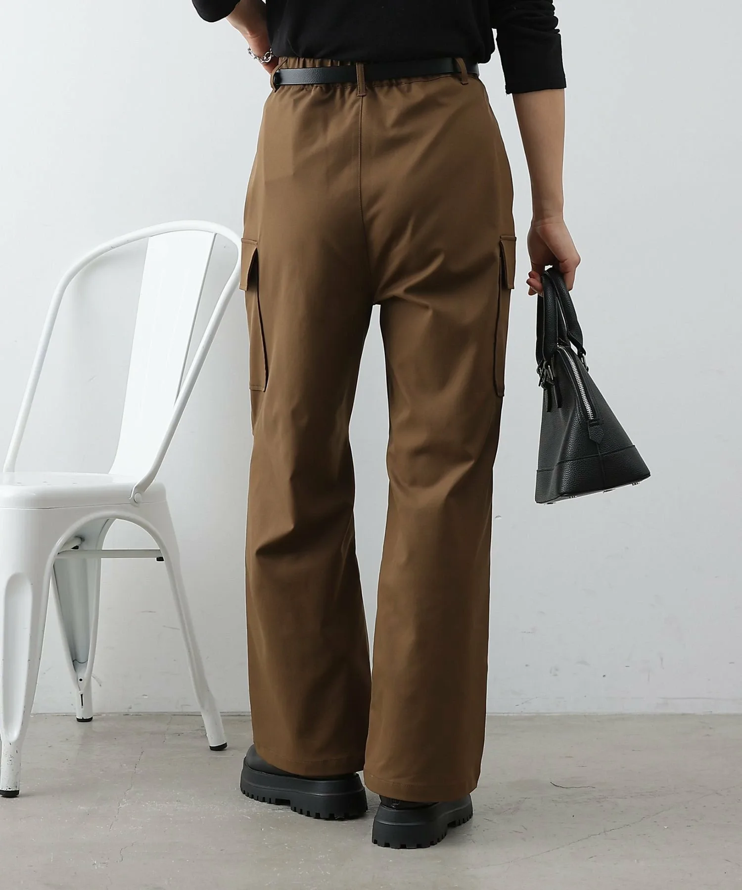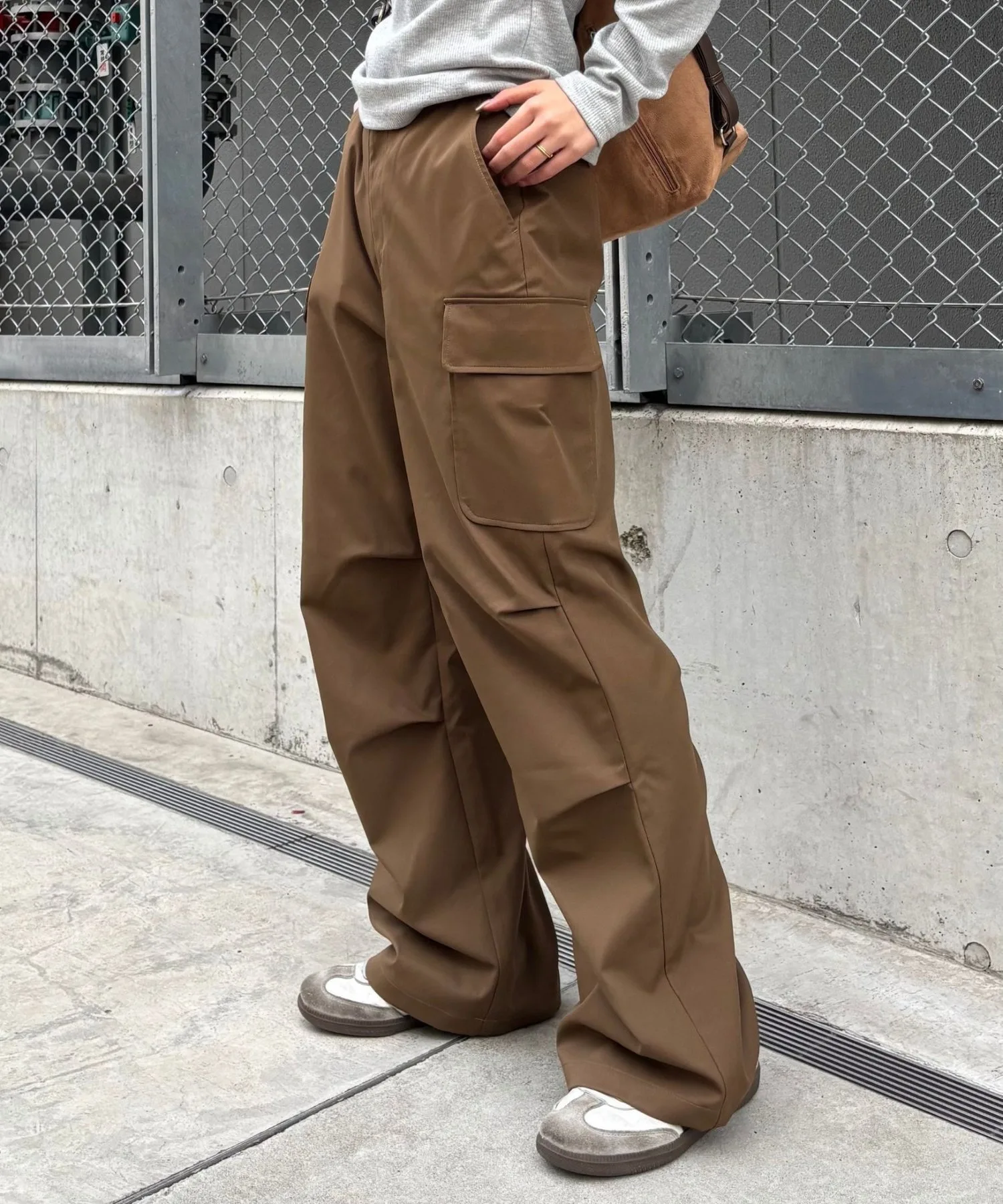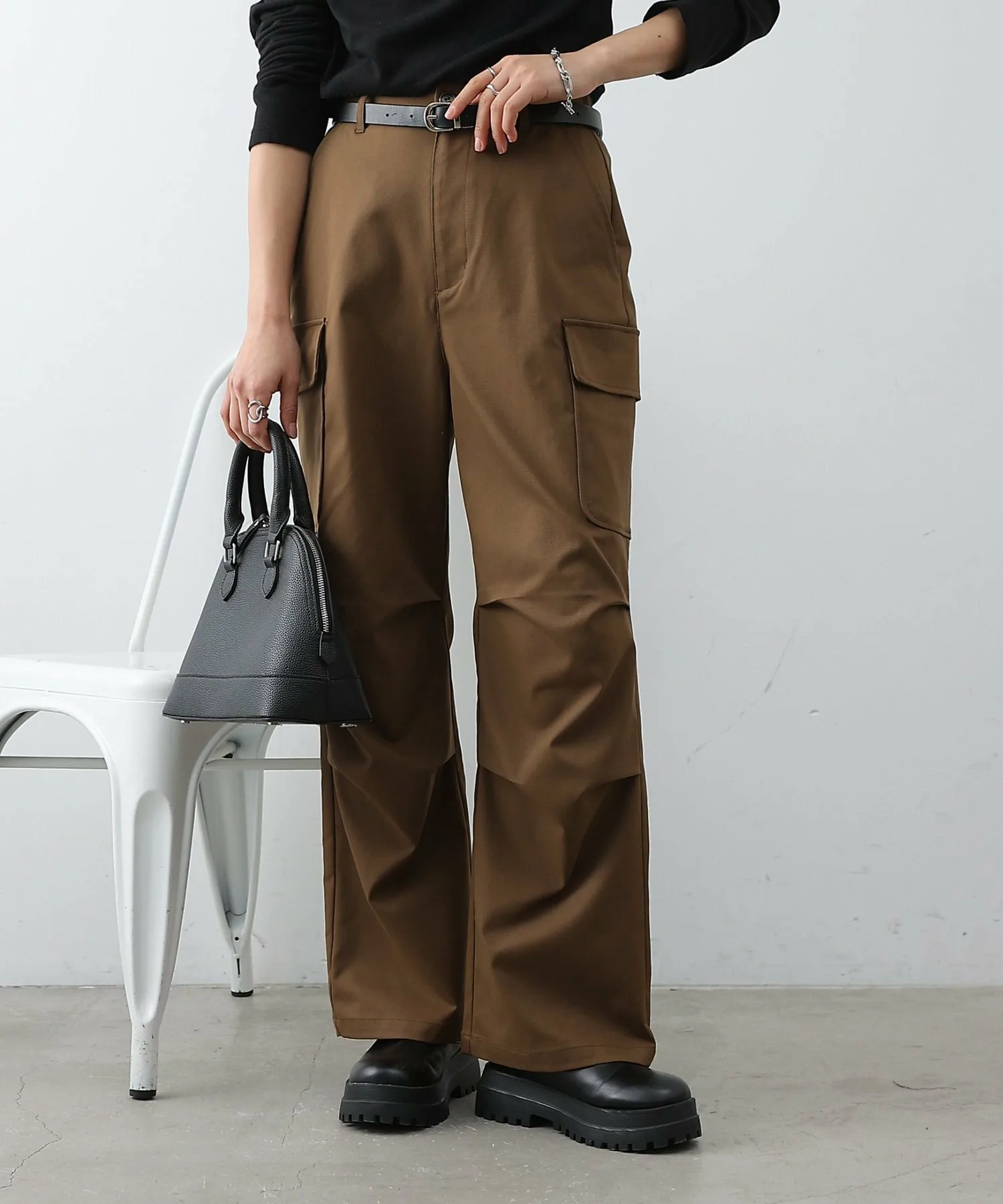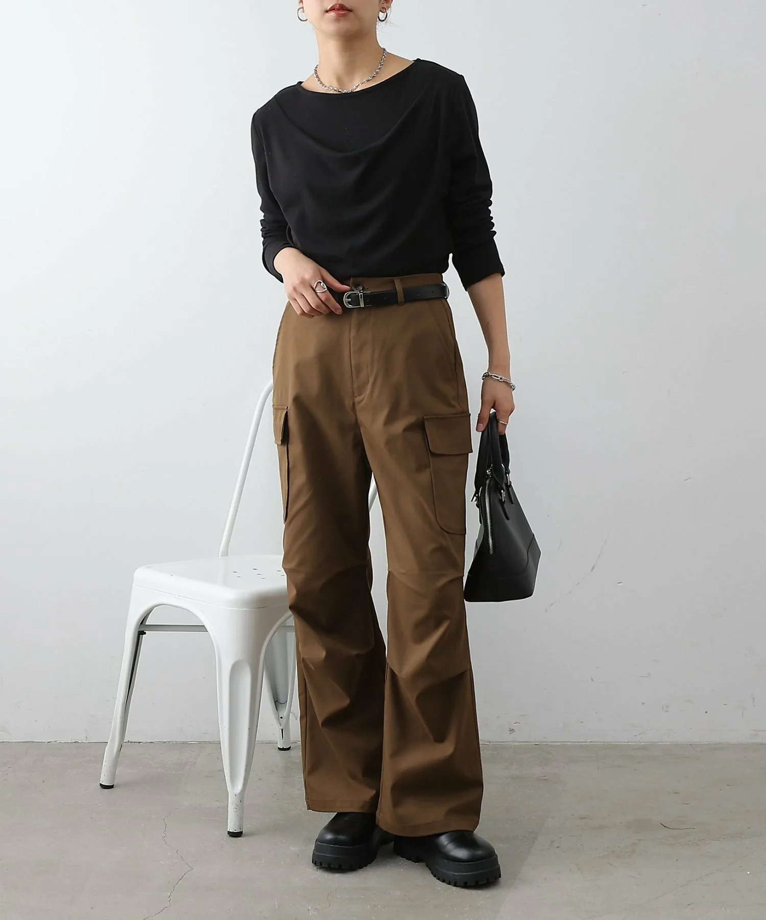 Хотя сами по себе брюки-карго имеют повседневный вид, матовая ткань хорошо сочетается с более нарядными вещами.