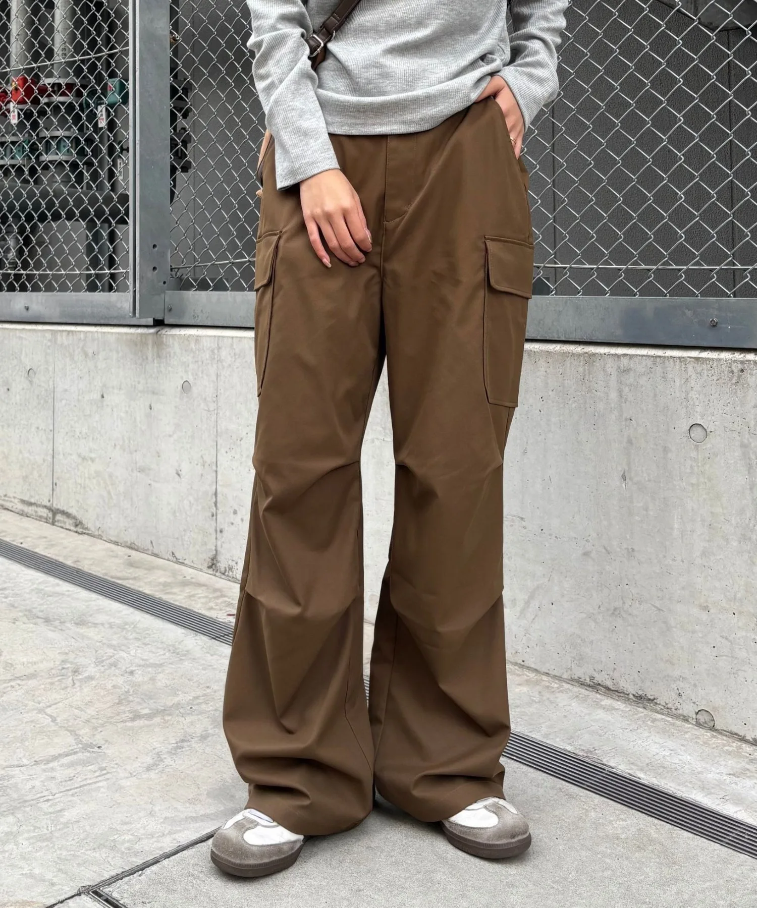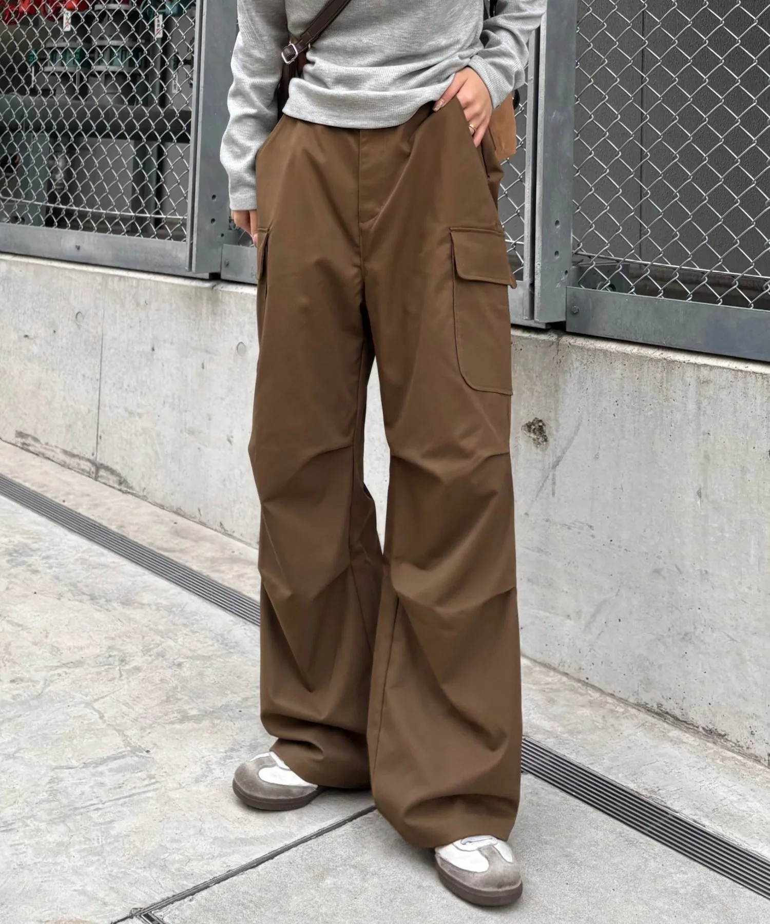 Эти брюки-карго со складками вокруг колен создают модный, женственный силуэт.