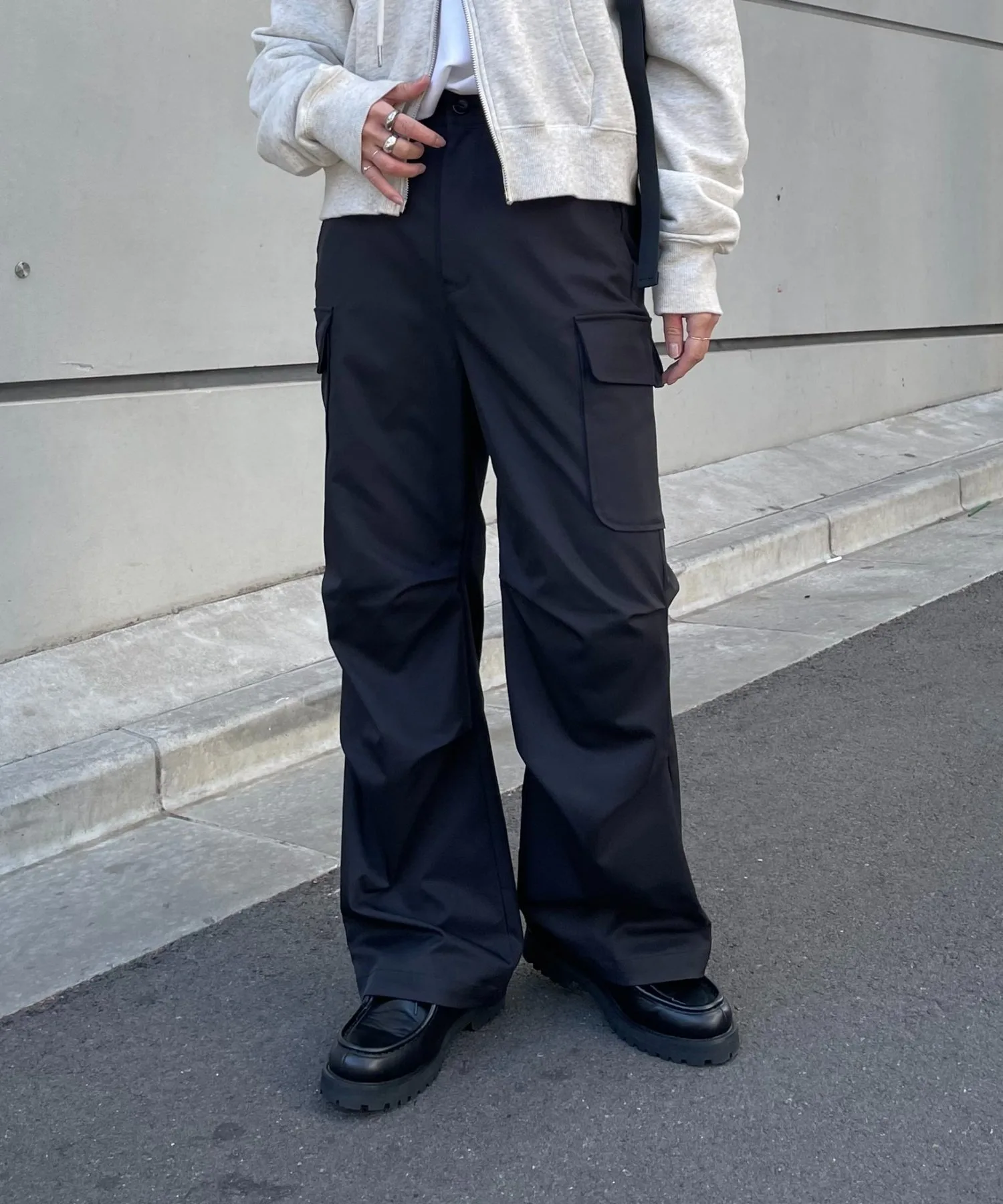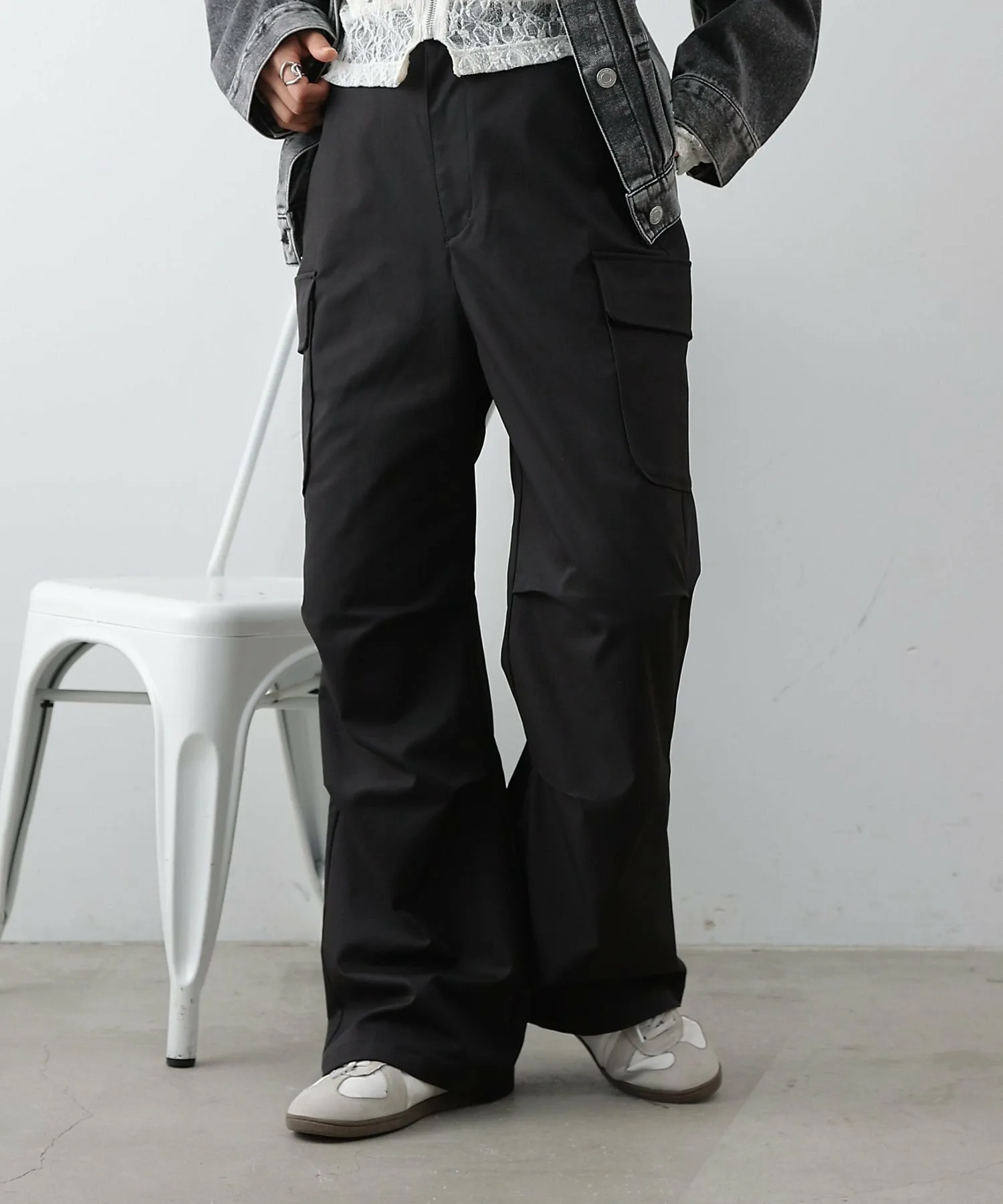 Хотя сами по себе брюки-карго имеют повседневный вид, матовая ткань хорошо сочетается с более нарядными вещами.
