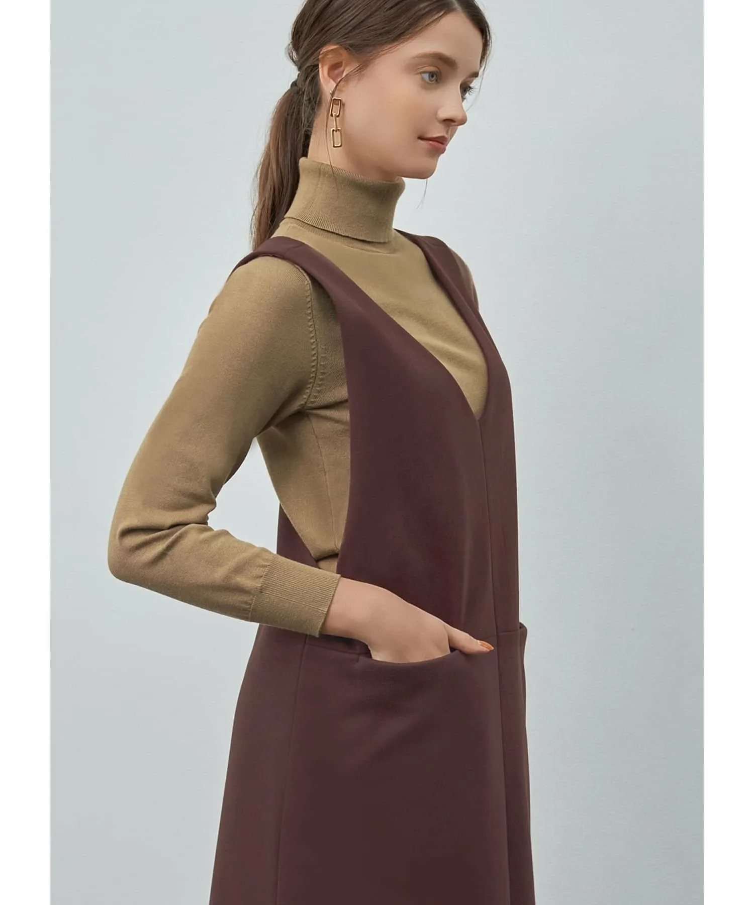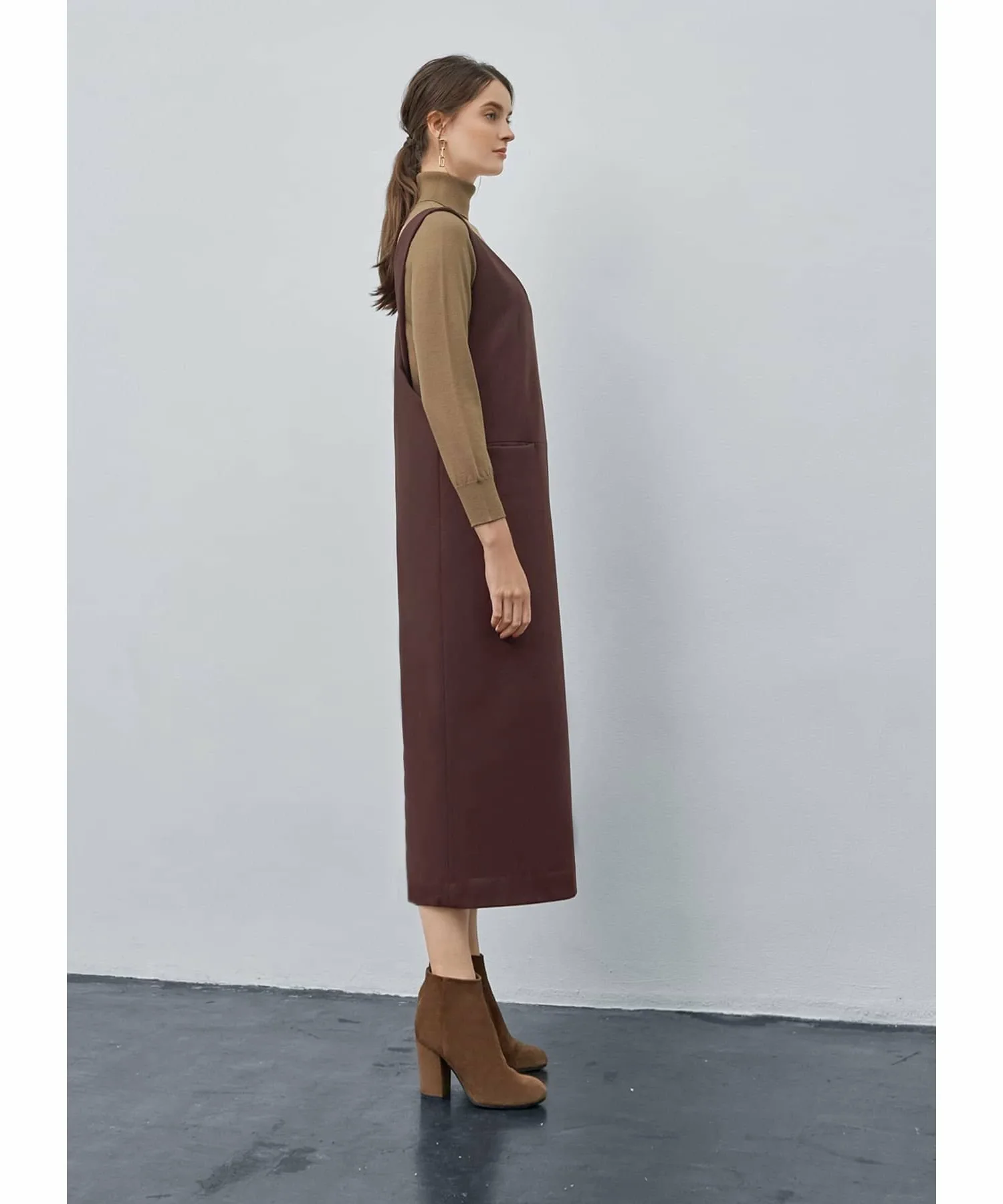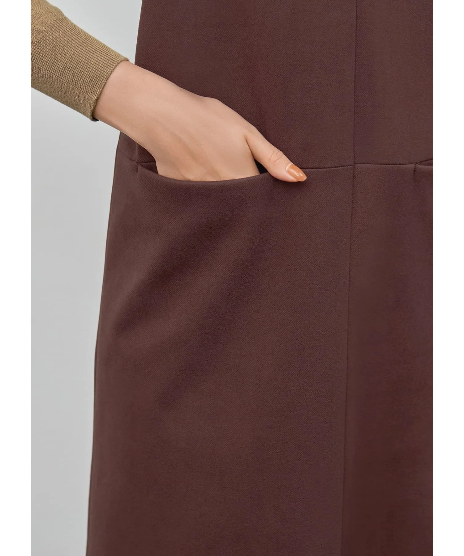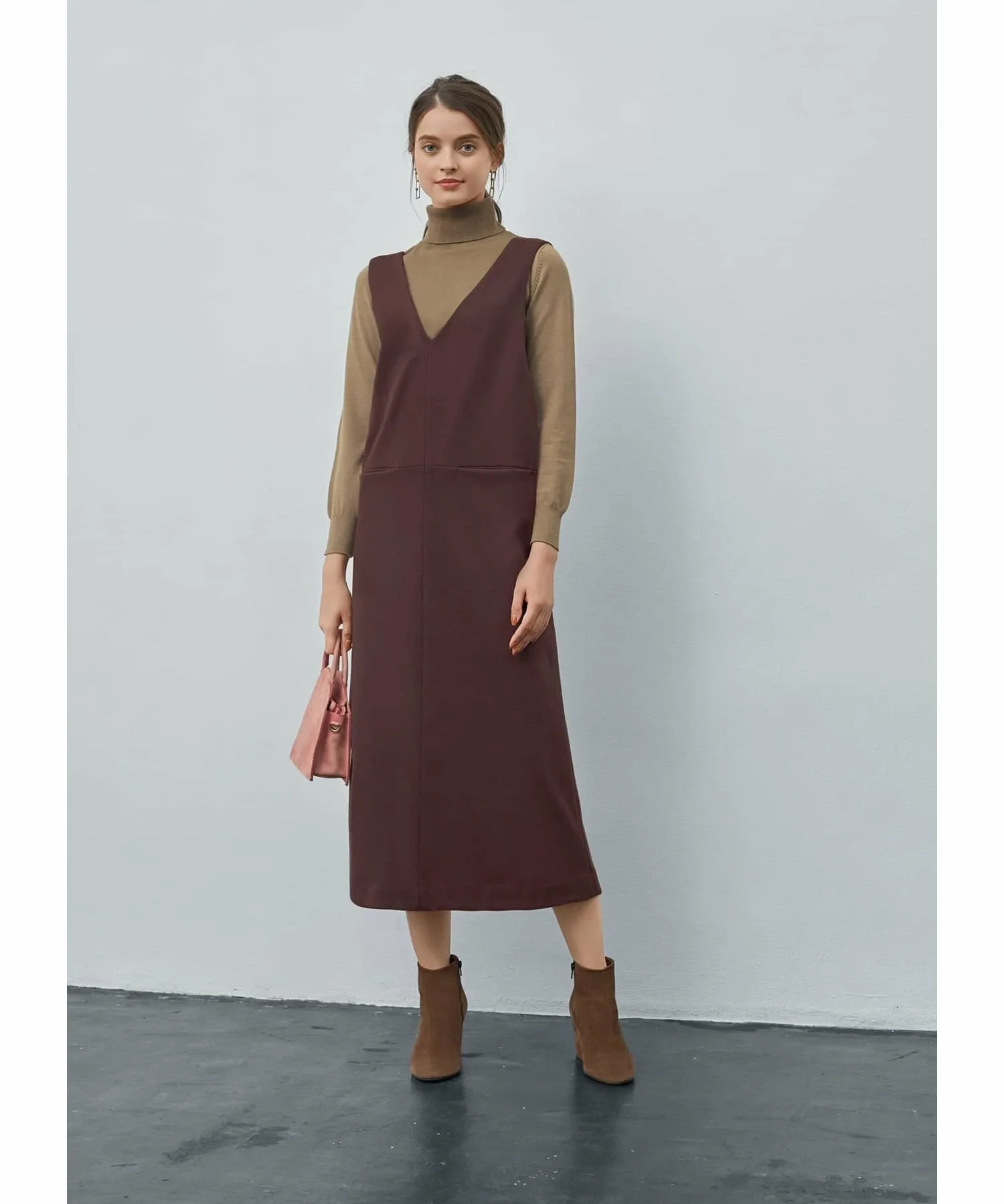 Эта юбка-свитер с V-образным вырезом изготовлена из зимней ткани и украшена красивым перекрестным узором сзади. Хотя длина может варьироваться в зависимости от вашего роста и типа фигуры, в сочетании с сапогами средней длины она кажется довольно длинной, обеспечивая удобную посадку без обнажения кожи.