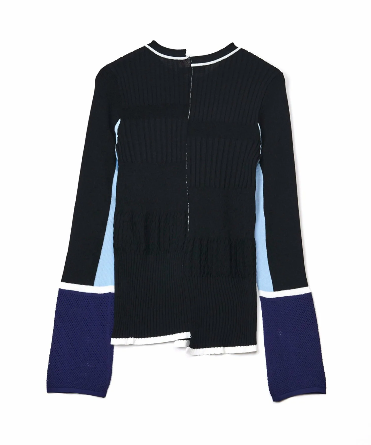 Основа изделия выполнена из различных ребристых и узорчатых трикотажных элементов, расположенных слоями,