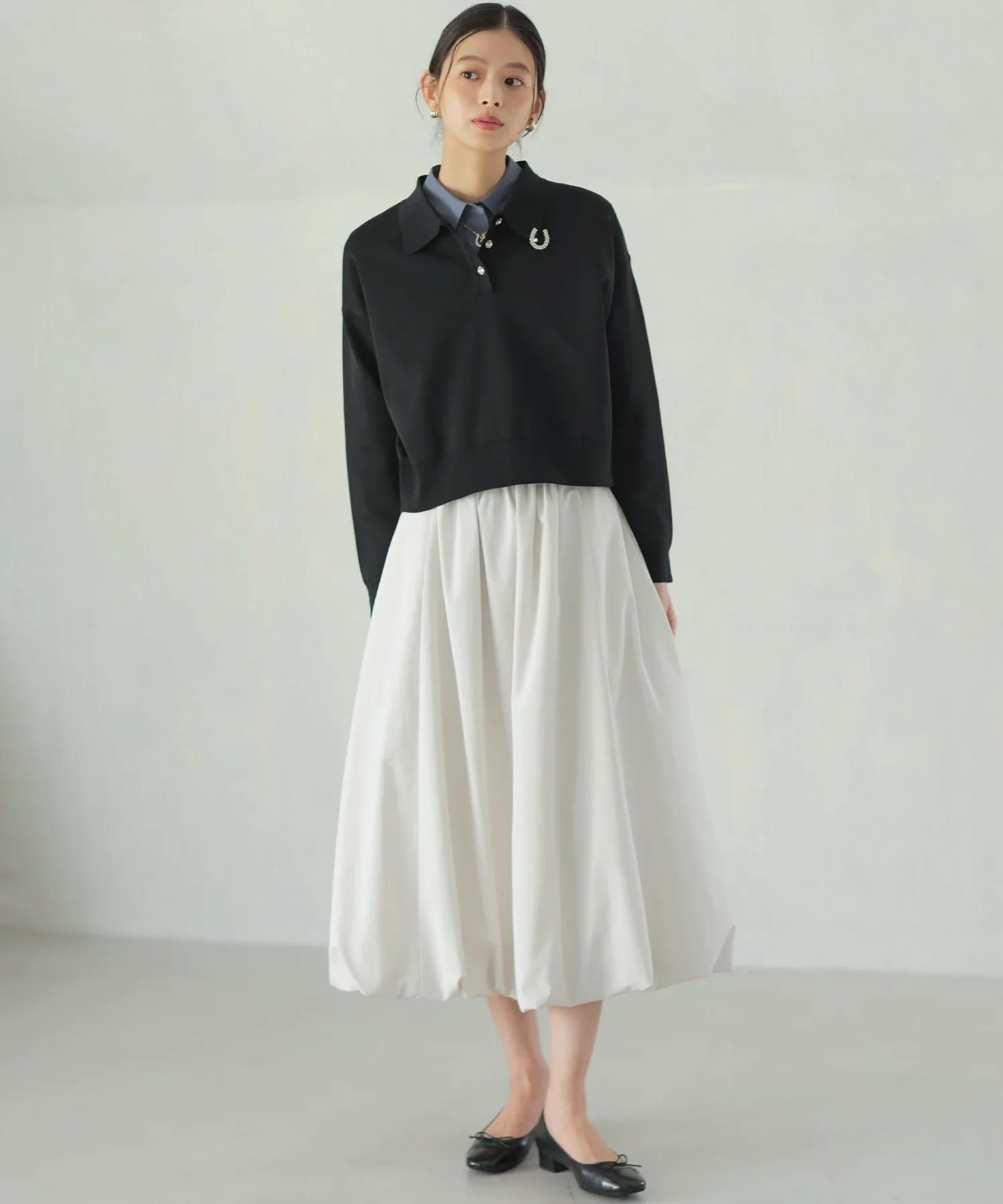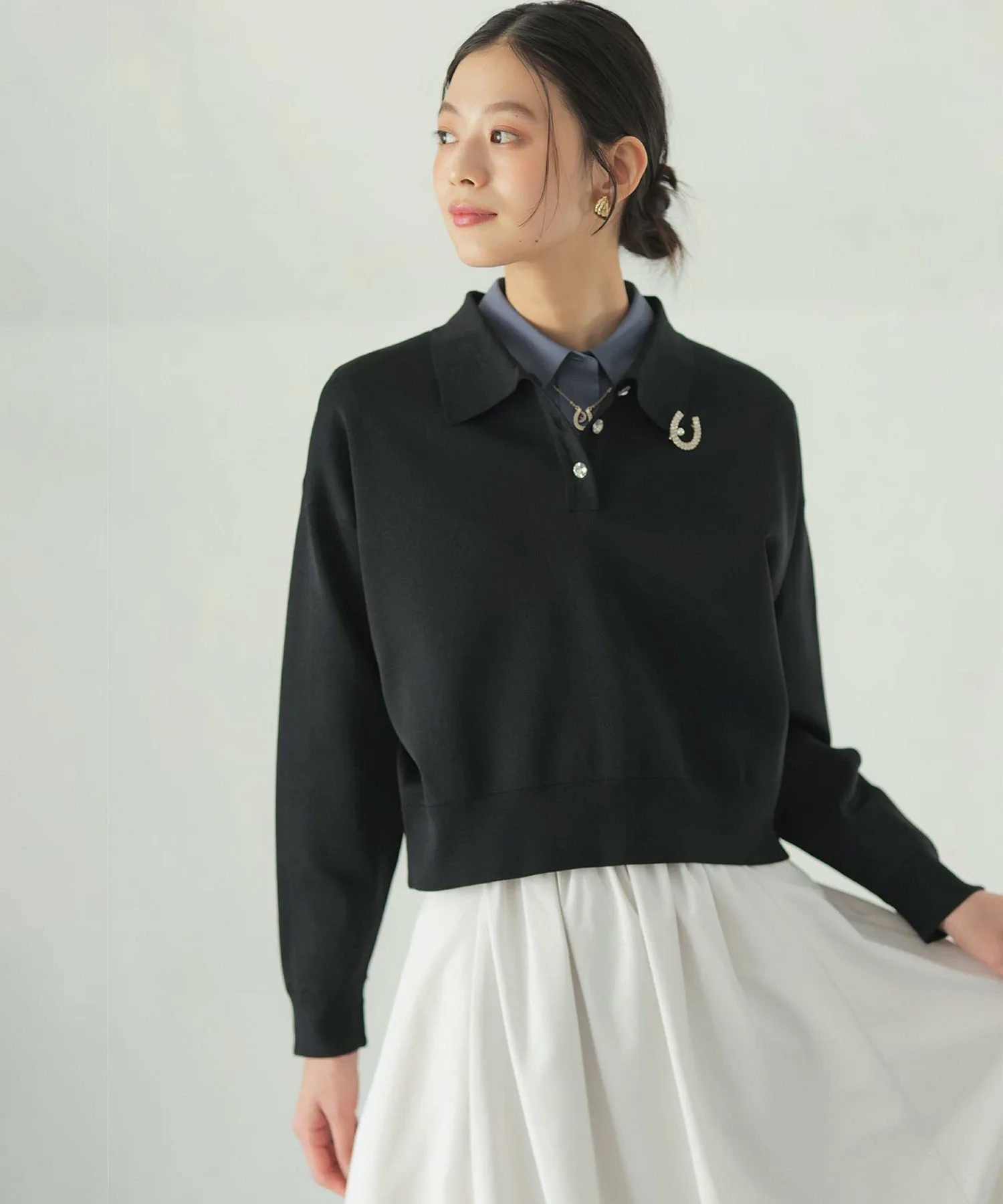 Этот вязаный свитер с отворотом наполнен фирменными женственными деталями Kumikyoku.