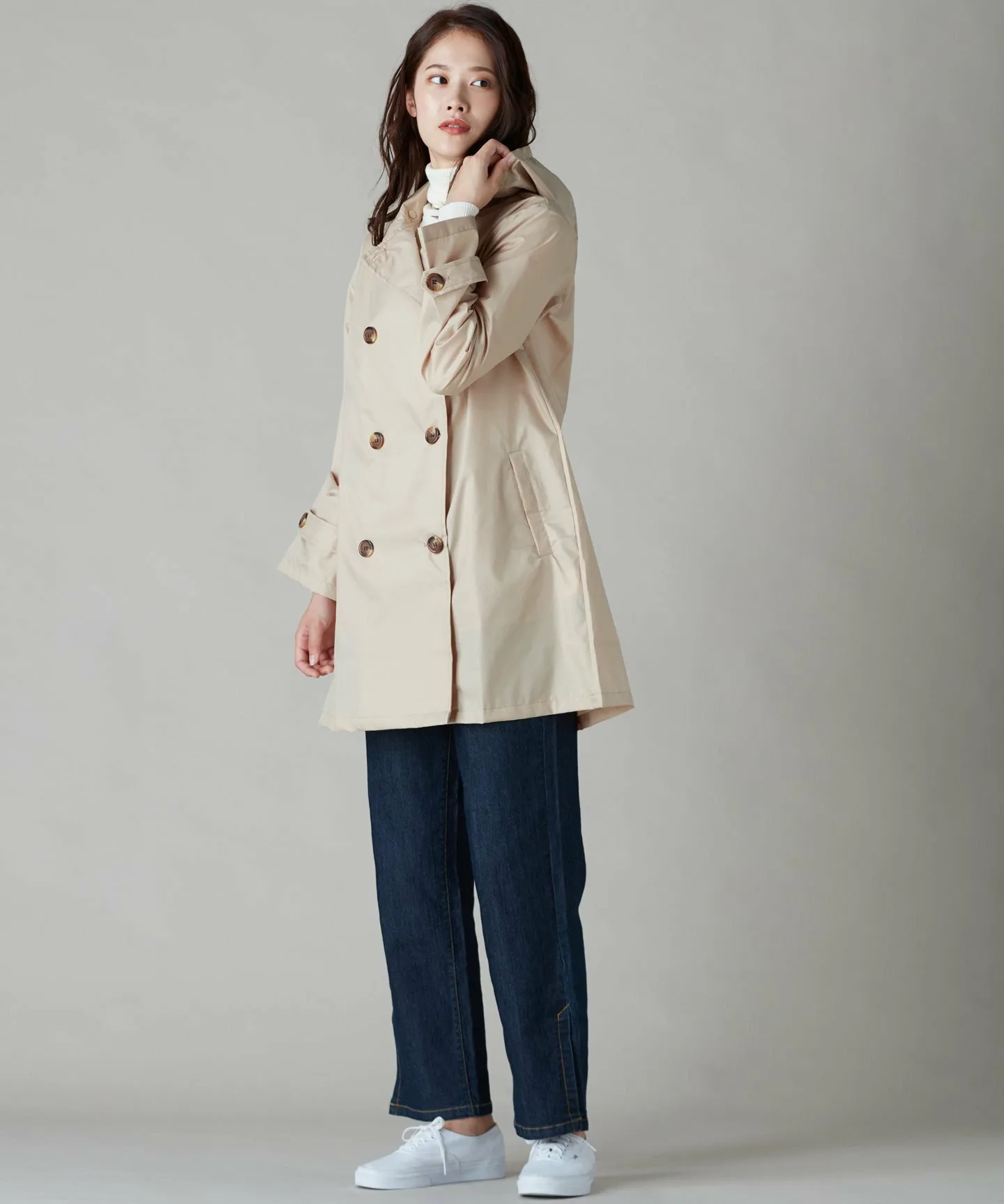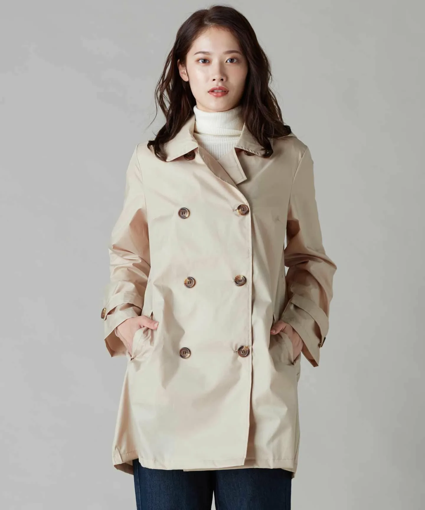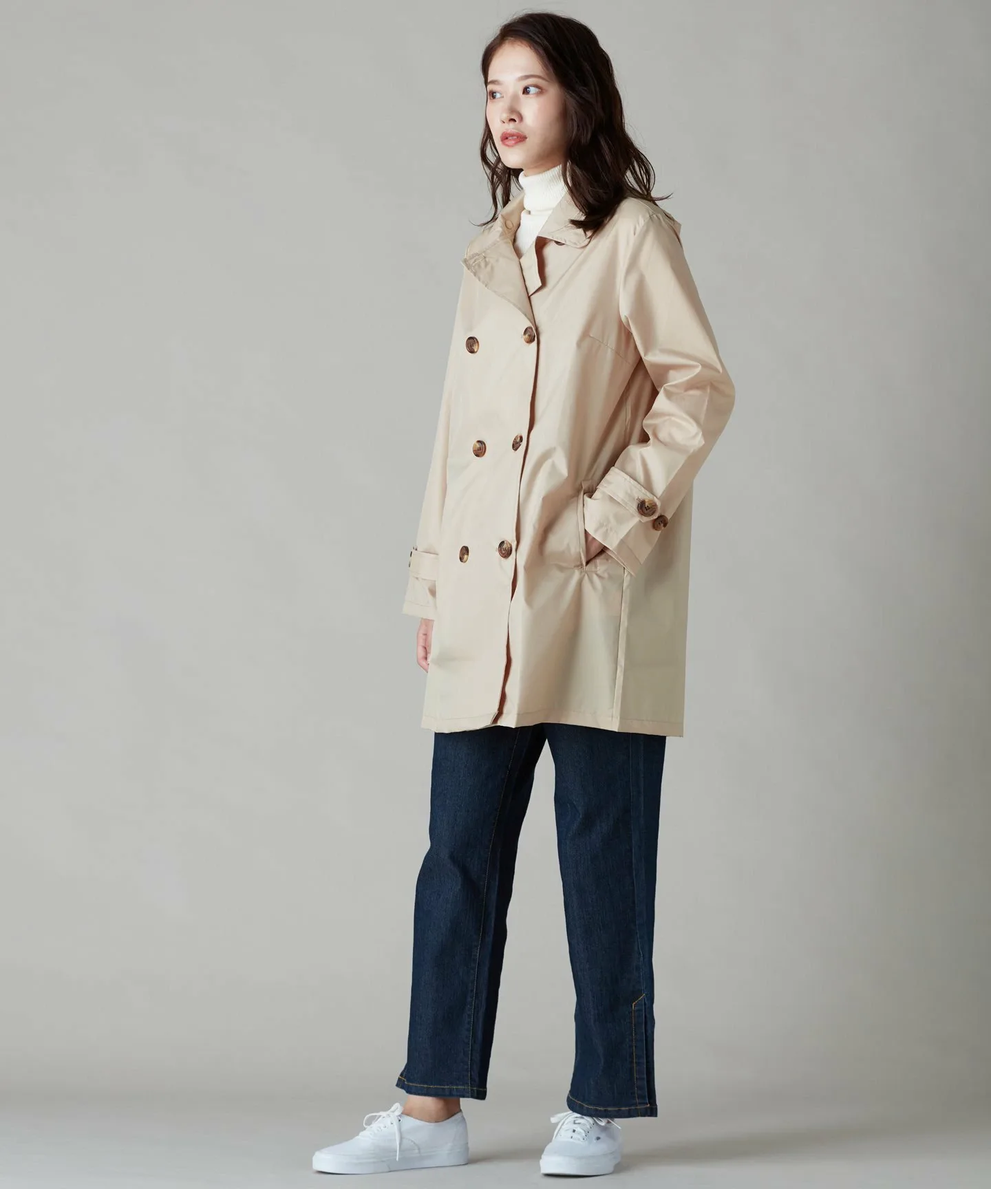 Этот дождевик выполнен в стиле тренча и идеально подходит для женщин зрелого возраста.