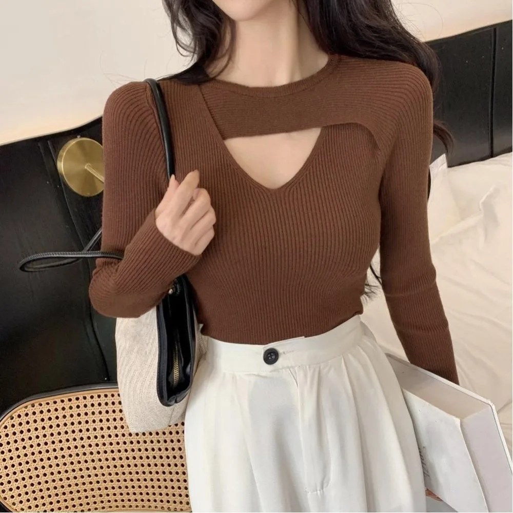 Женский вязаный свитер, нижняя рубашка, повседневный, стройнящий, сексуальный вязаный свитер, пуловер