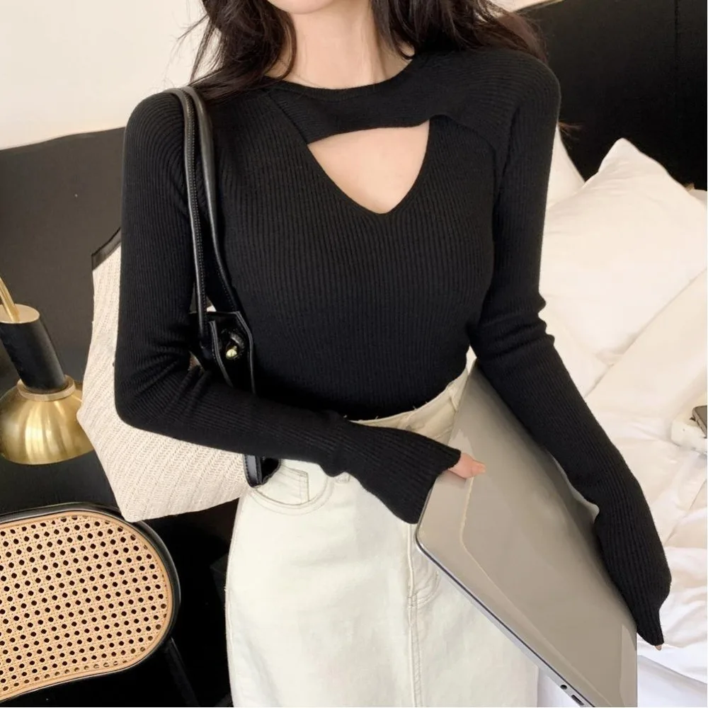 Женский вязаный свитер, нижняя рубашка, повседневный, стройнящий, сексуальный вязаный свитер, пуловер