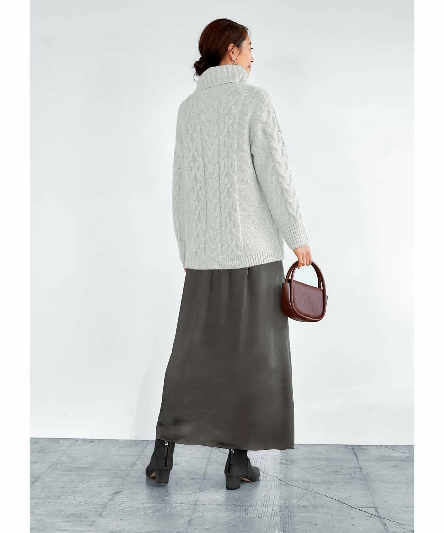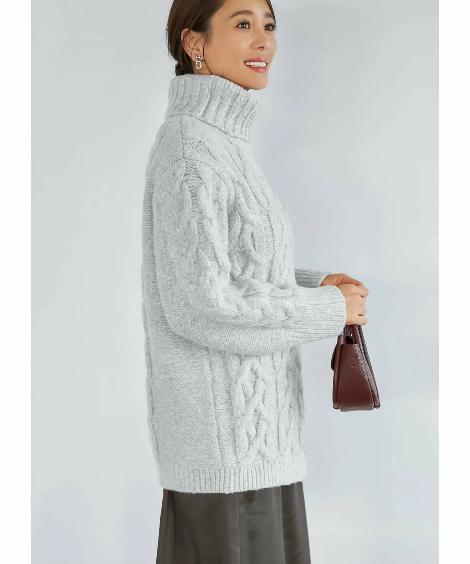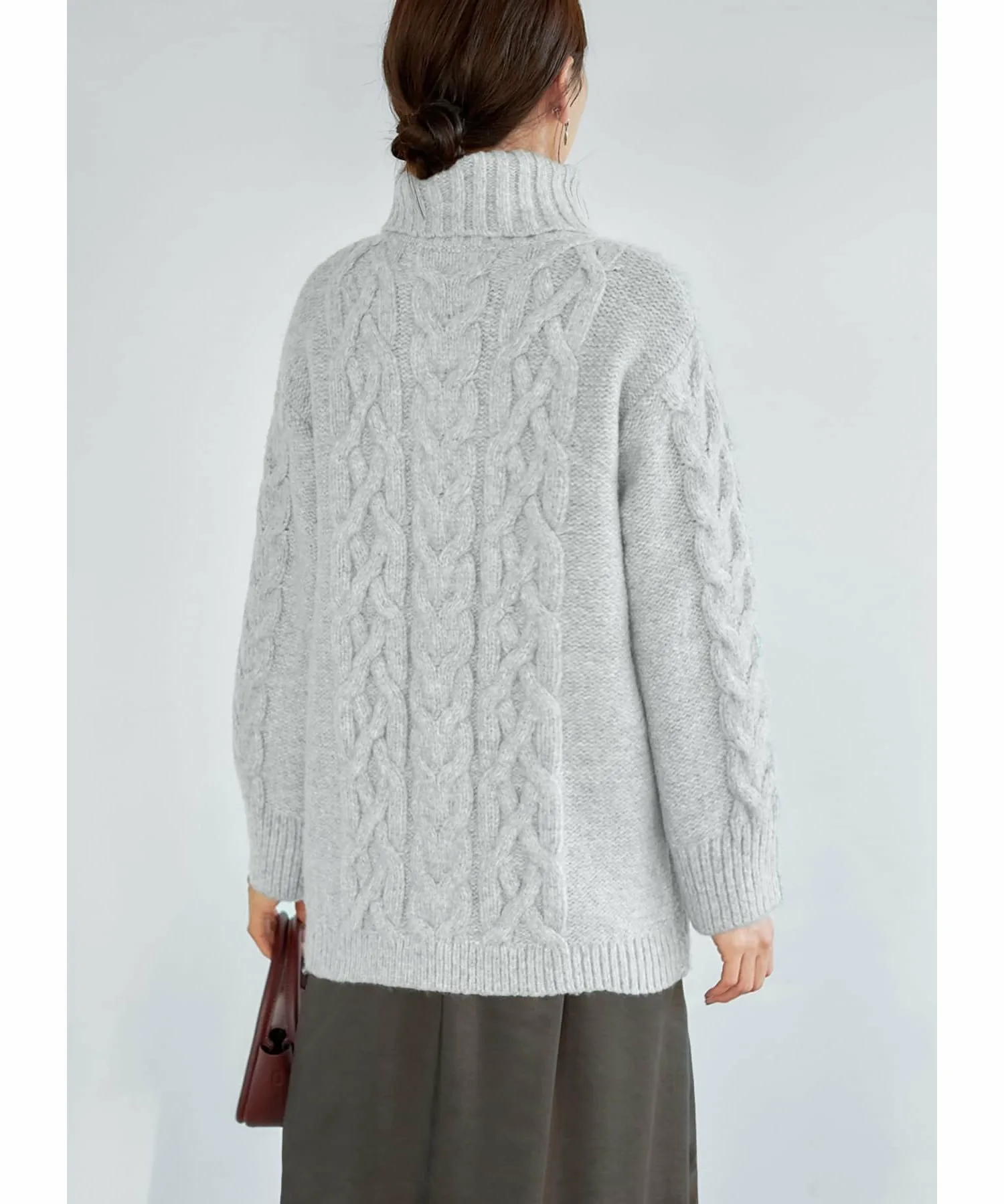 Этот милый, объемный вязаный свитер с высоким воротником и косами идеально подходит для этого сезона. Он такой же теплый, как и выглядит, что делает его идеальным спутником в морозные зимние дни. Узор расположен по-разному в зависимости от места: вся передняя часть изделия украшена косами, спинка расположена по центру, а рукава частично украшены косами. Такая конструкция минимизирует проблемы, связанные с громоздкими рукавами, которые часто встречаются у вязаных свитеров с косами. Воротник-стойка слегка свободный, что обеспечивает комфортную посадку. Он разработан таким образом, чтобы удобно облегать шею, визуально уменьшать размер лица и избавлять от необходимости беспокоиться о растекании макияжа. Общий дизайн изысканный, что делает этот вязаный топ очень элегантным. Просто наденьте его, и вы будете выглядеть потрясающе и непринужденно стильно. [О дизайне и характеристиках] Этот объемный вязаный свитер с высоким воротником и косами.