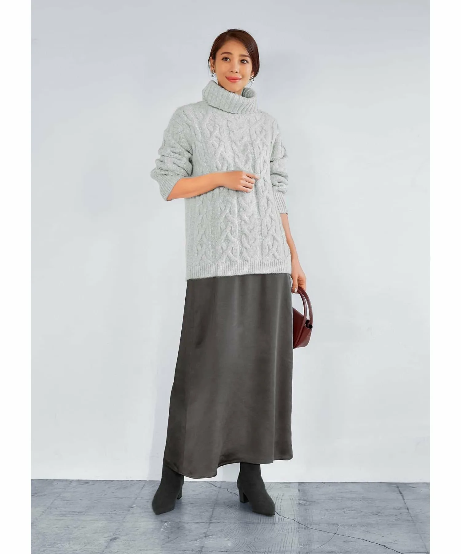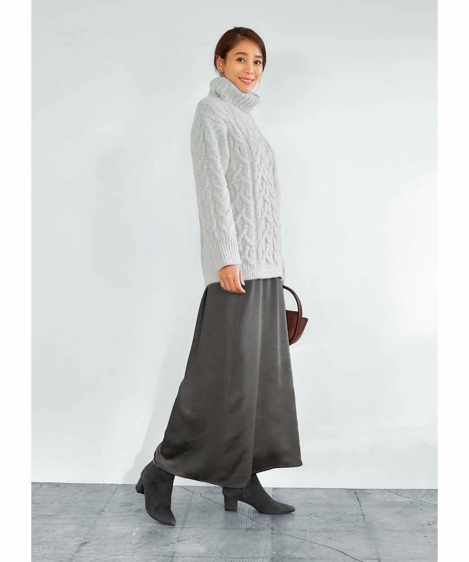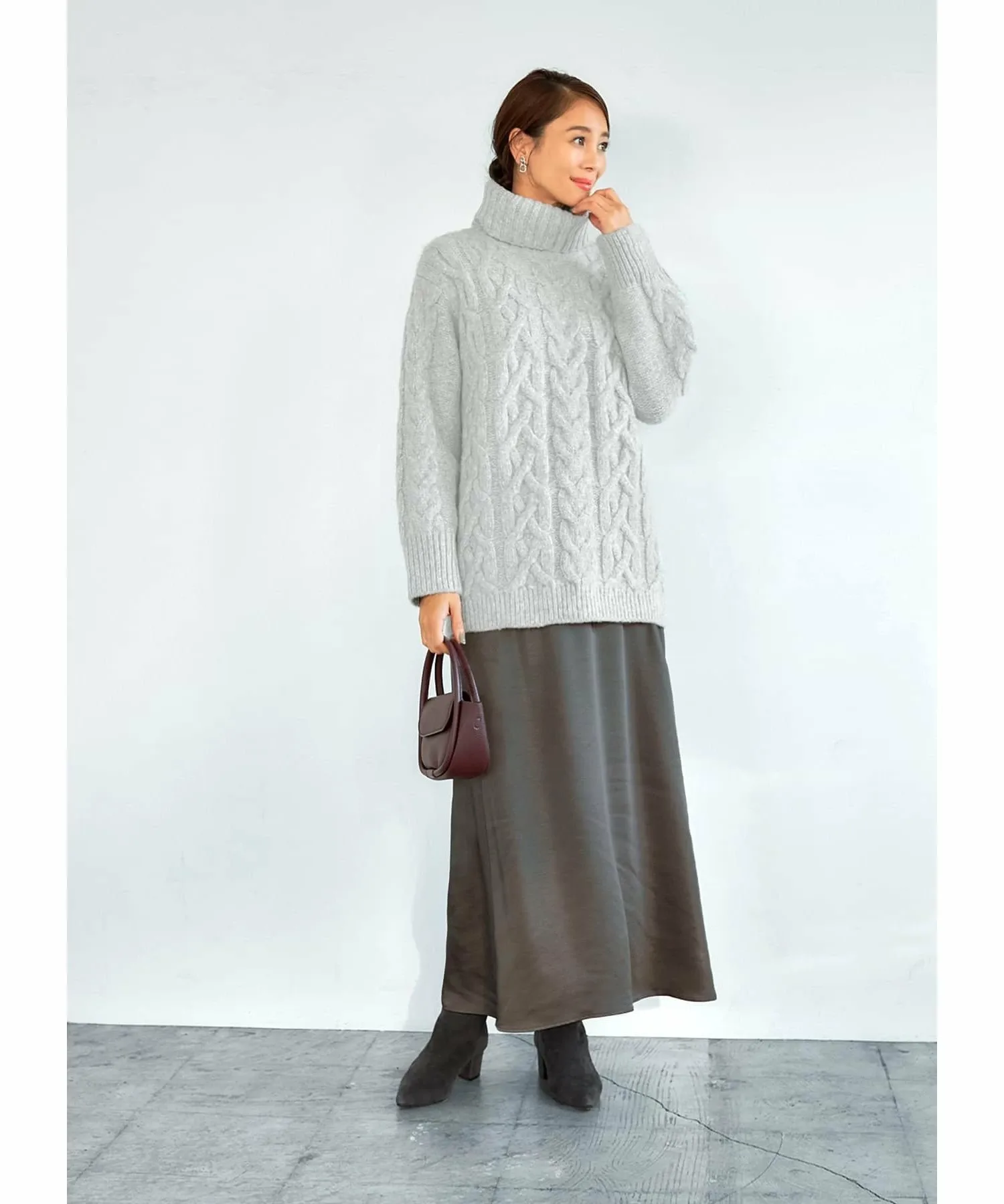 Этот милый, объемный вязаный свитер с высоким воротником и косами идеально подходит для этого сезона. Он такой же теплый, как и выглядит, что делает его идеальным спутником в морозные зимние дни. Узор расположен по-разному в зависимости от места: вся передняя часть изделия украшена косами, спинка расположена по центру, а рукава частично украшены косами. Такая конструкция минимизирует проблемы, связанные с громоздкими рукавами, которые часто встречаются у вязаных свитеров с косами. Воротник-стойка слегка свободный, что обеспечивает комфортную посадку. Он разработан таким образом, чтобы удобно облегать шею, визуально уменьшать размер лица и избавлять от необходимости беспокоиться о растекании макияжа. Общий дизайн изысканный, что делает этот вязаный топ очень элегантным. Просто наденьте его, и вы будете выглядеть потрясающе и непринужденно стильно. [О дизайне и характеристиках] Этот объемный вязаный свитер с высоким воротником и косами.
