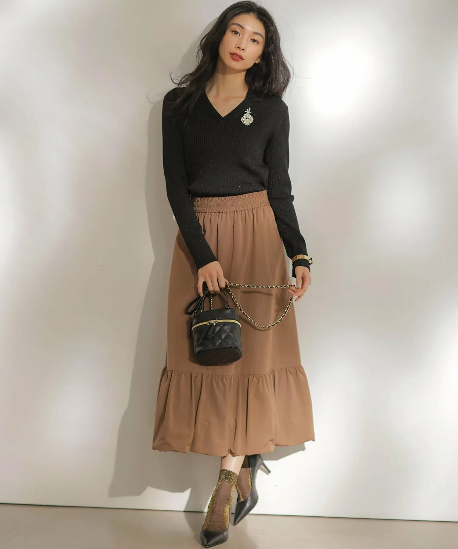[Комментарии сотрудников] ▼Рост: 158 см | Размер 2 (обычно носит размер M) Эта юбка имеет модные элементы «баллона», но при этом легко вписывается в ваш гардероб. Ее умеренный объем позволяет легко сочетать ее как со свободными, так и с облегающими топами.