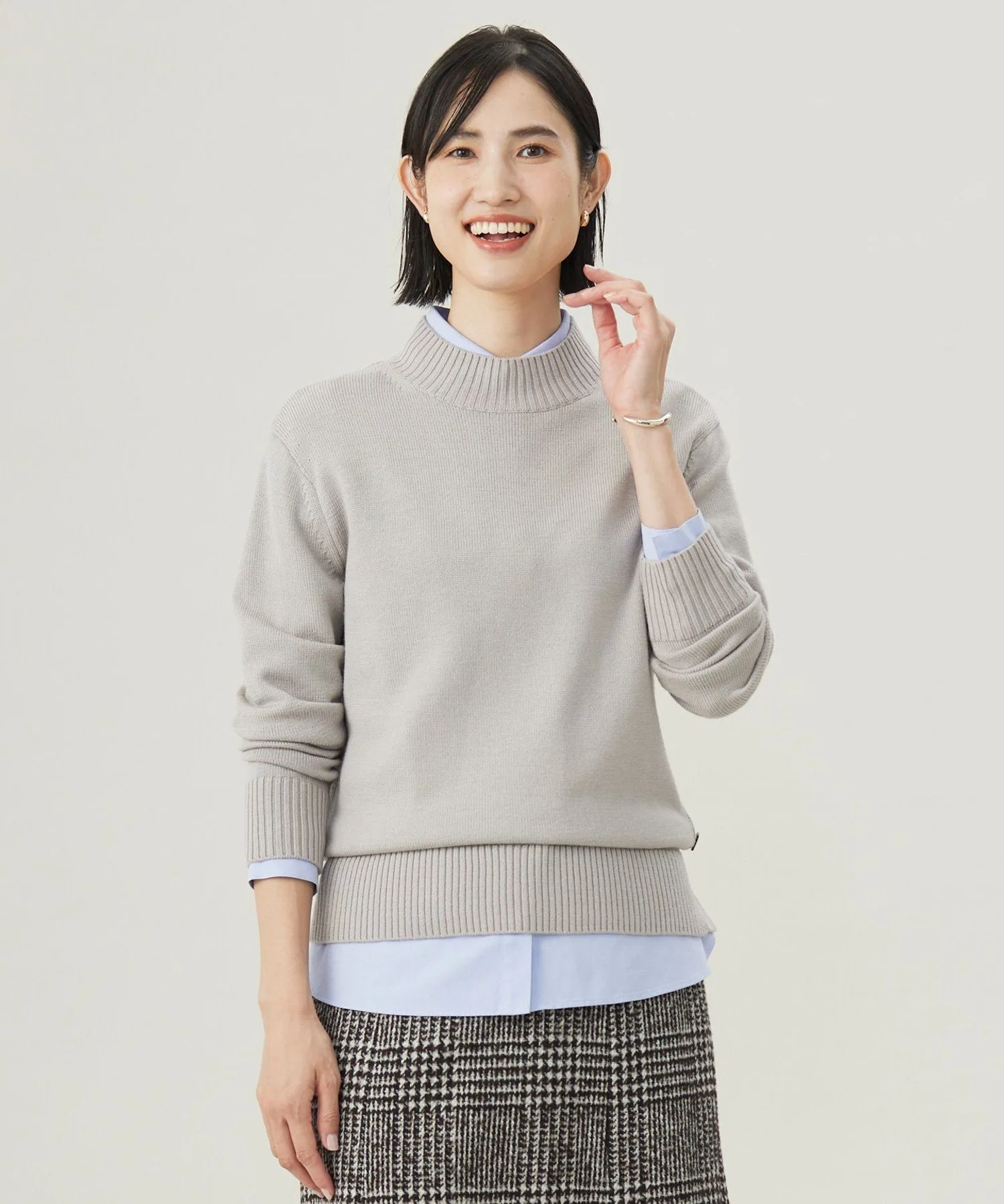 Трикотаж с высоким воротником, мягкий на ощупь, изготовлен с тщательным вниманием к деталям.