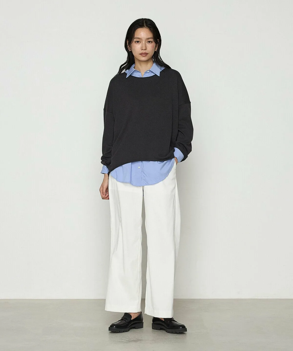 Силуэт брюк придает им солидный вид.