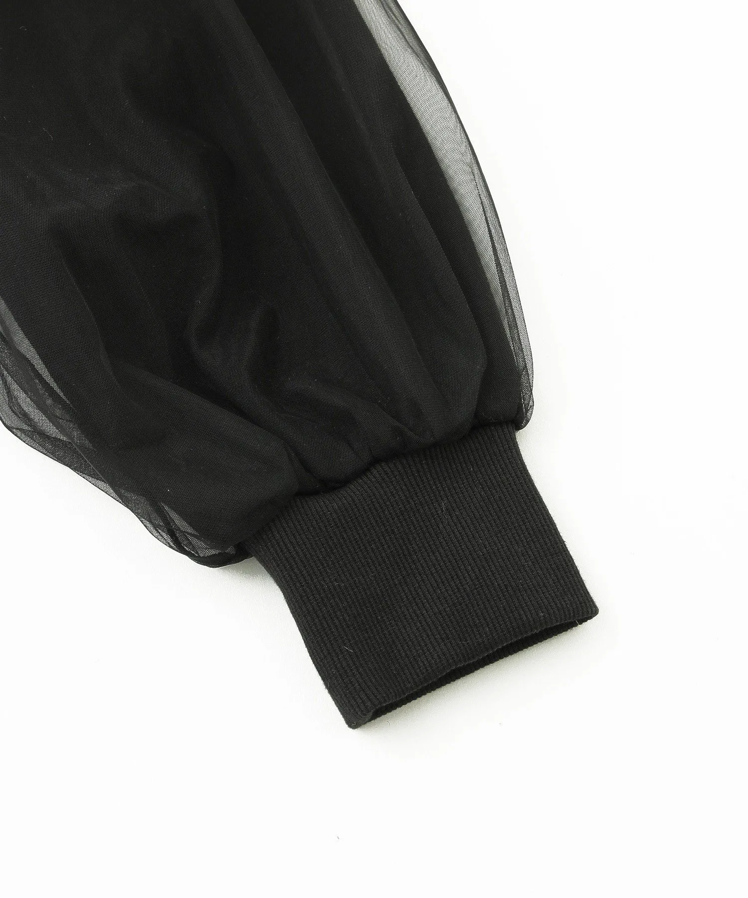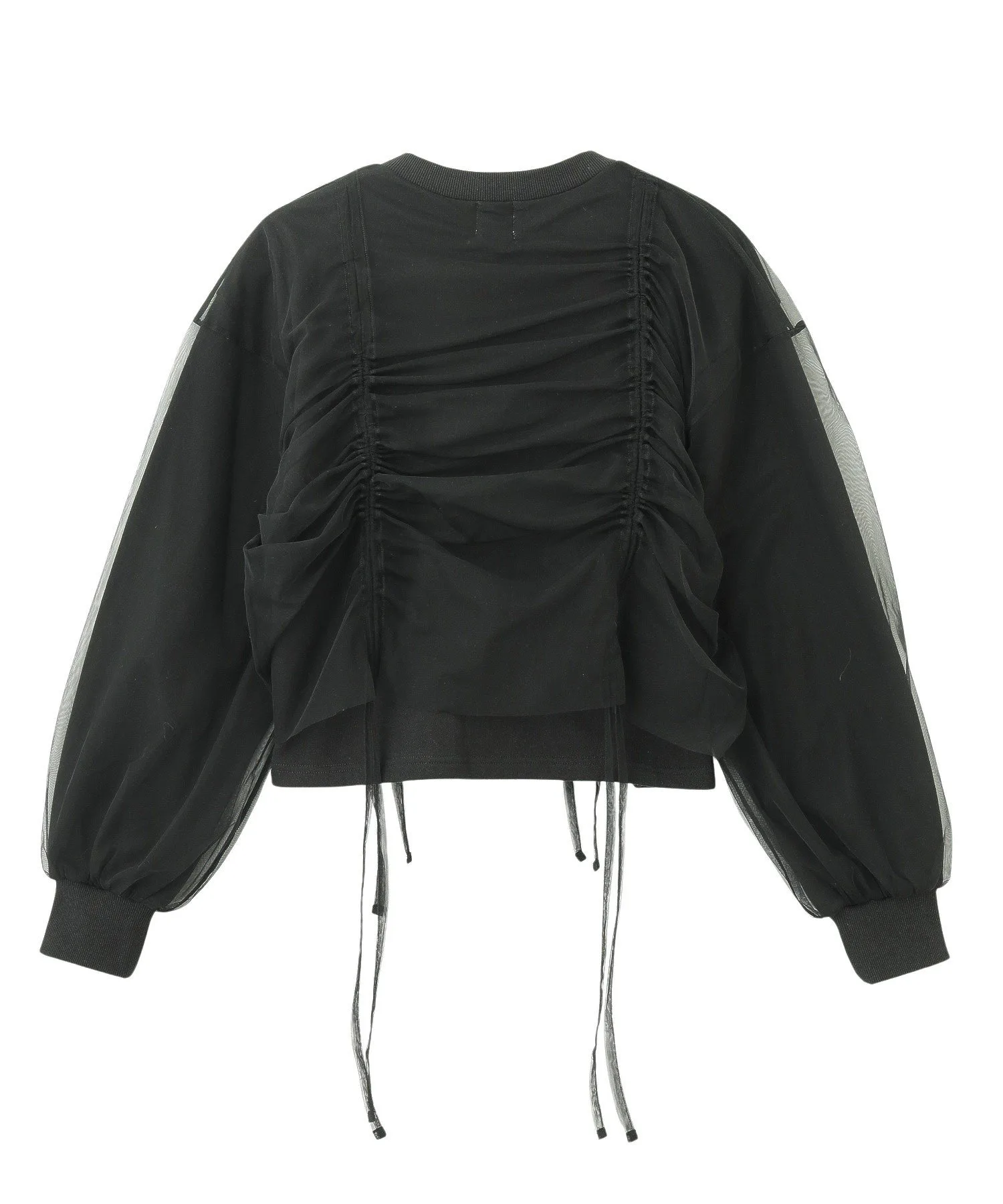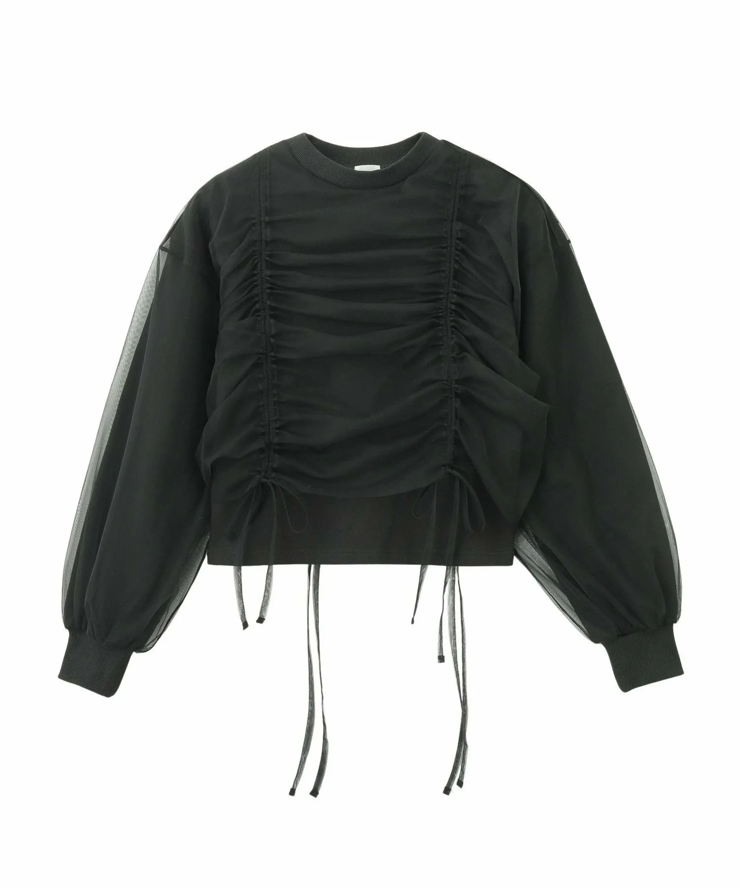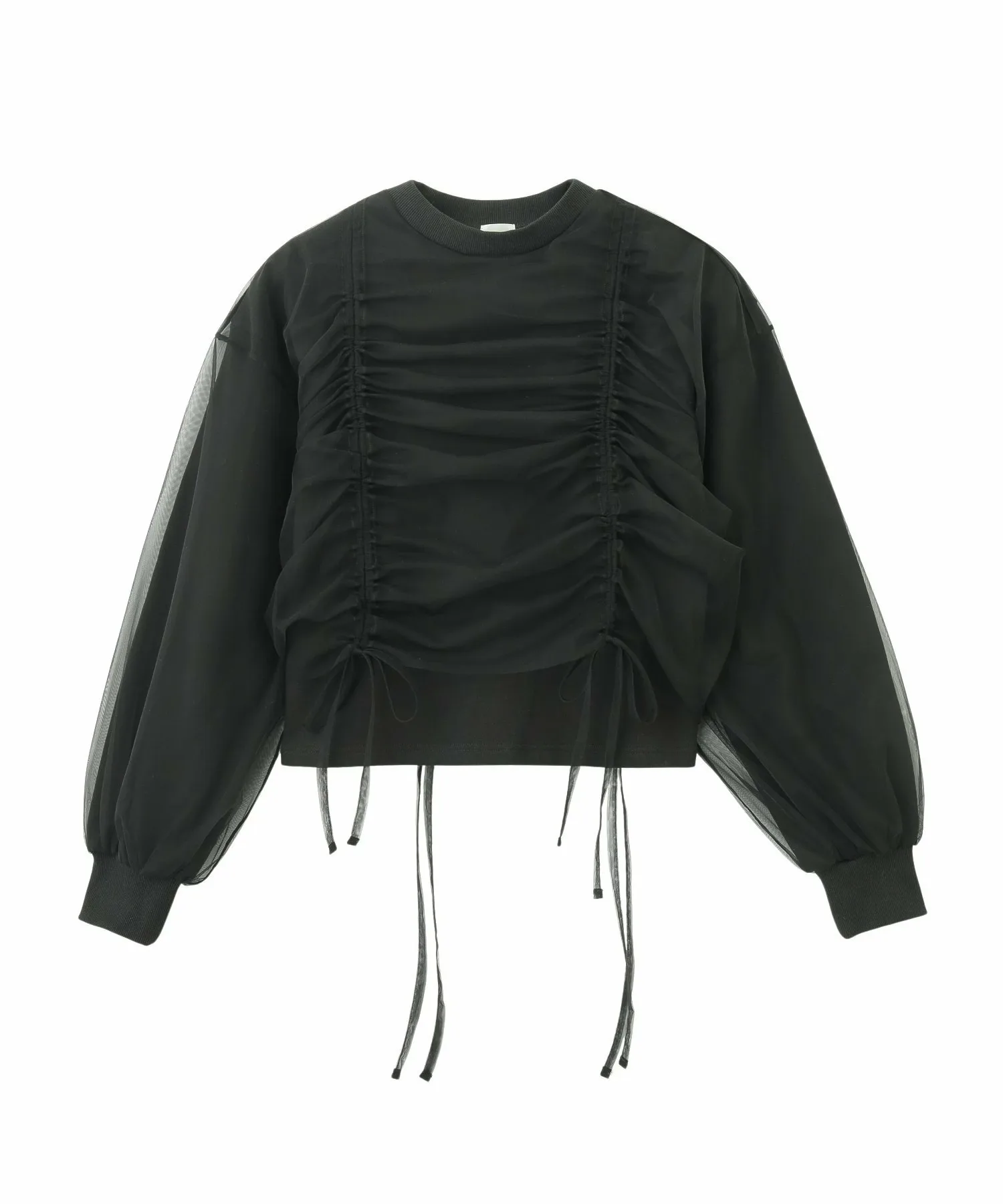 Пуловер из тюля с присборенной отделкой, который дополнит многослойный образ всего одним элементом.
