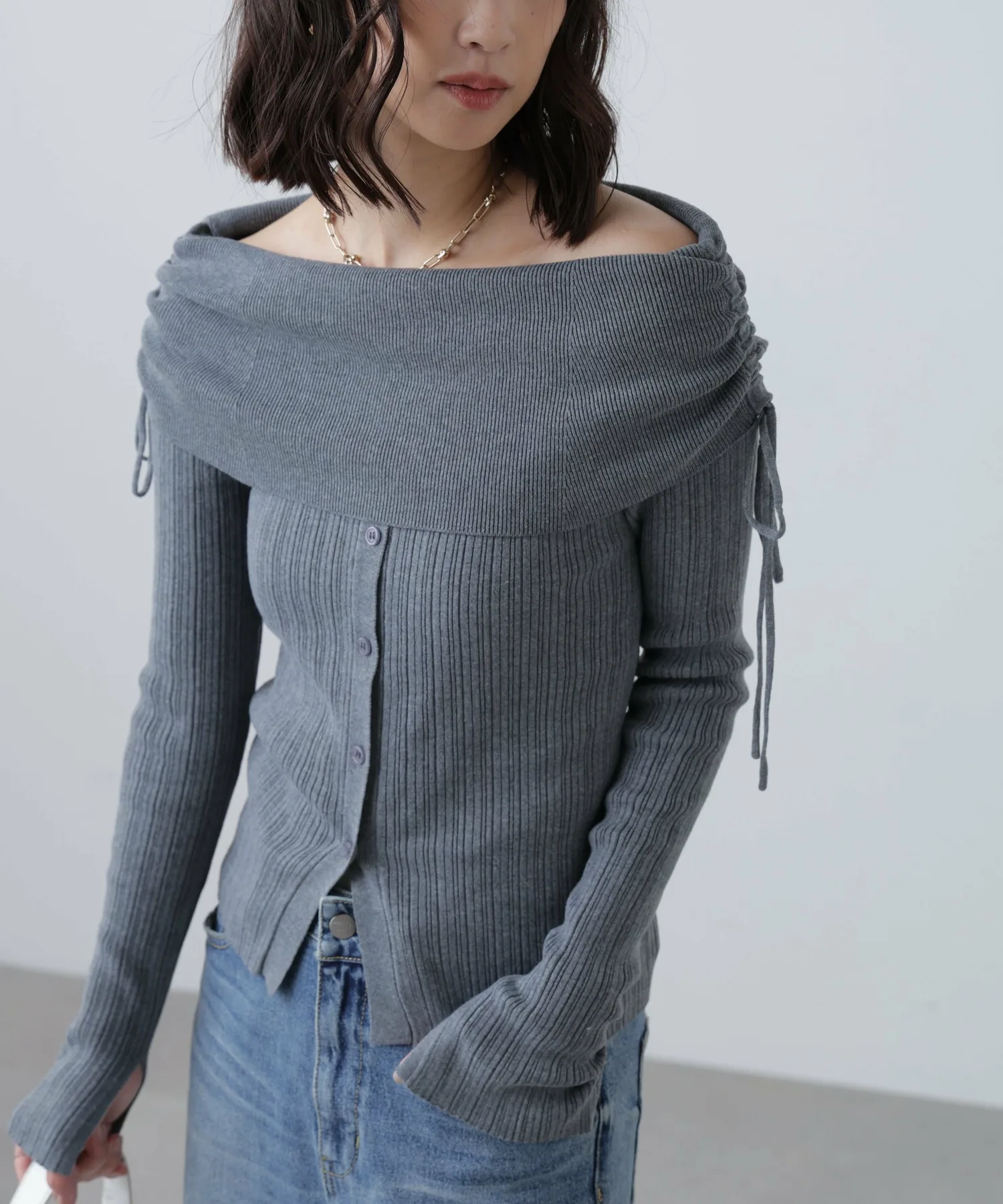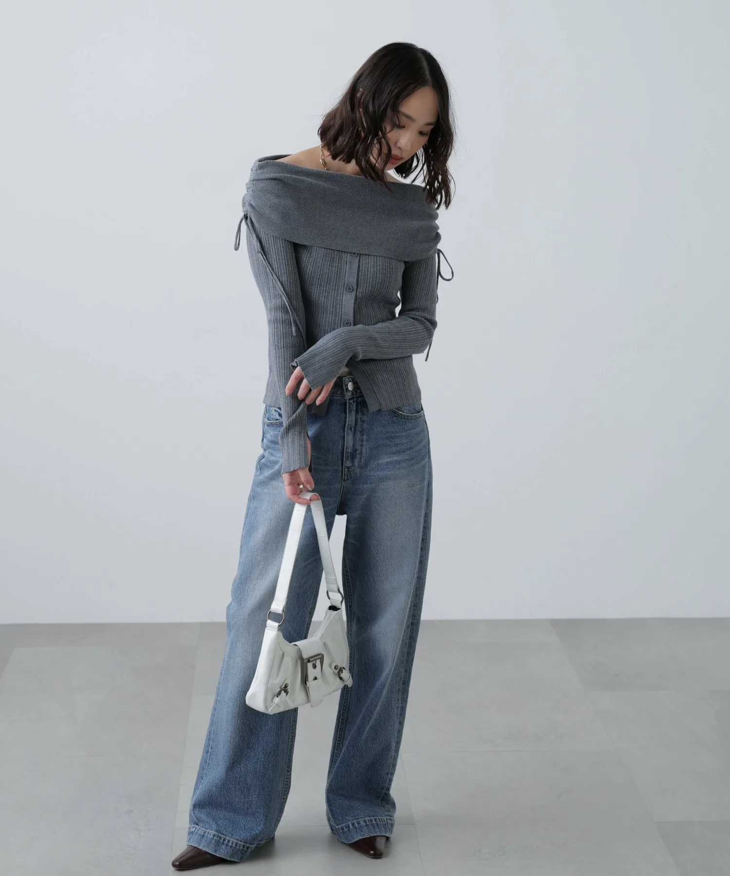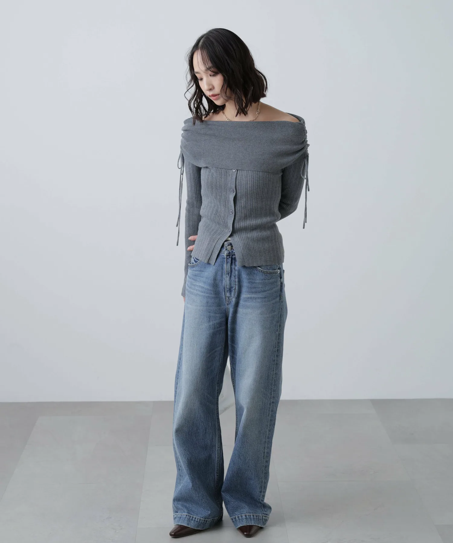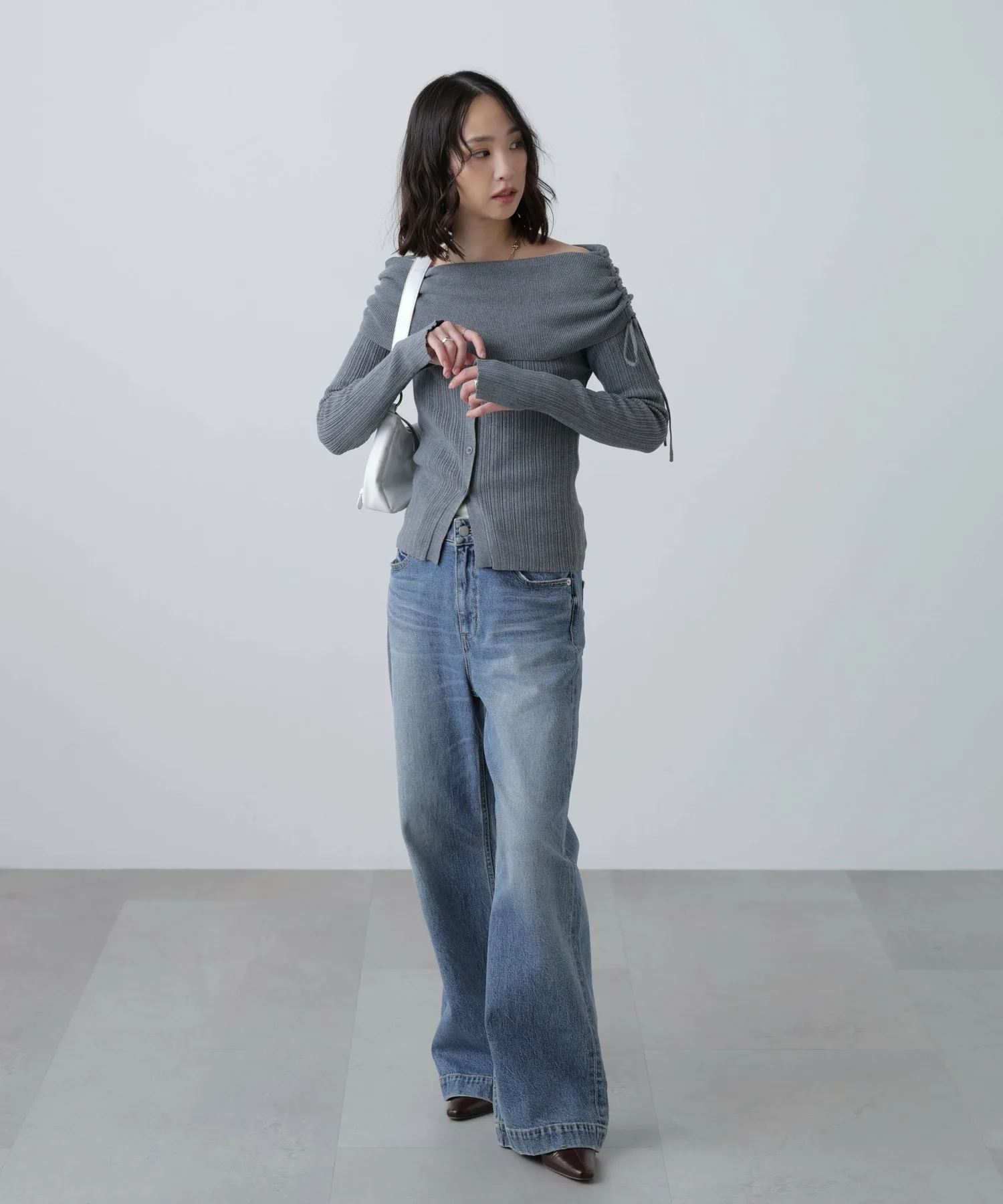 Модный трикотаж в рубчик произвольной формы, сочетающий открытые плечи с популярными ленточными деталями. Основная часть имеет облегающий силуэт, а передний разрез внизу создает расслабленный образ. Нежные ленточные детали по обеим сторонам открытых плеч придают женственность. Изготовленный из пушистой, объемной пряжи, обеспечивающей гладкость на ощупь, этот трикотаж легкий и приятный для кожи. Рекомендуется сочетать с юбками, брюками и джинсами, его можно носить с любыми брюками или юбками. Также можно надеть его поверх рубашки подходящего размера или прозрачной нижней одежды.