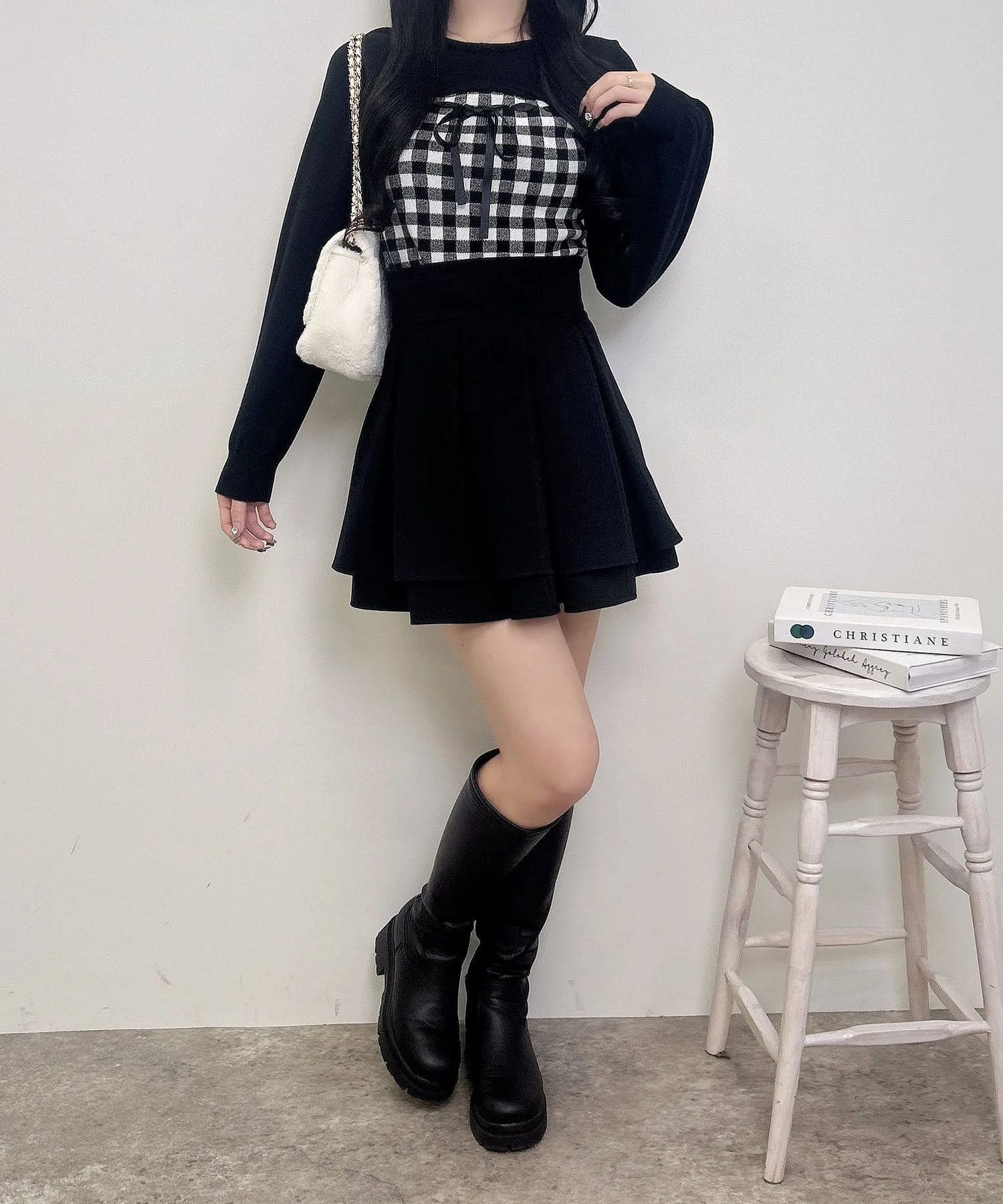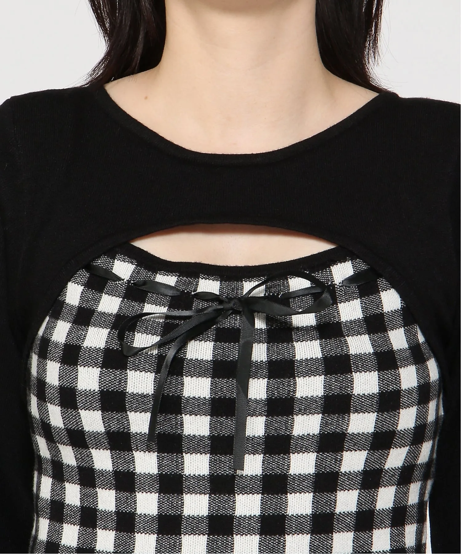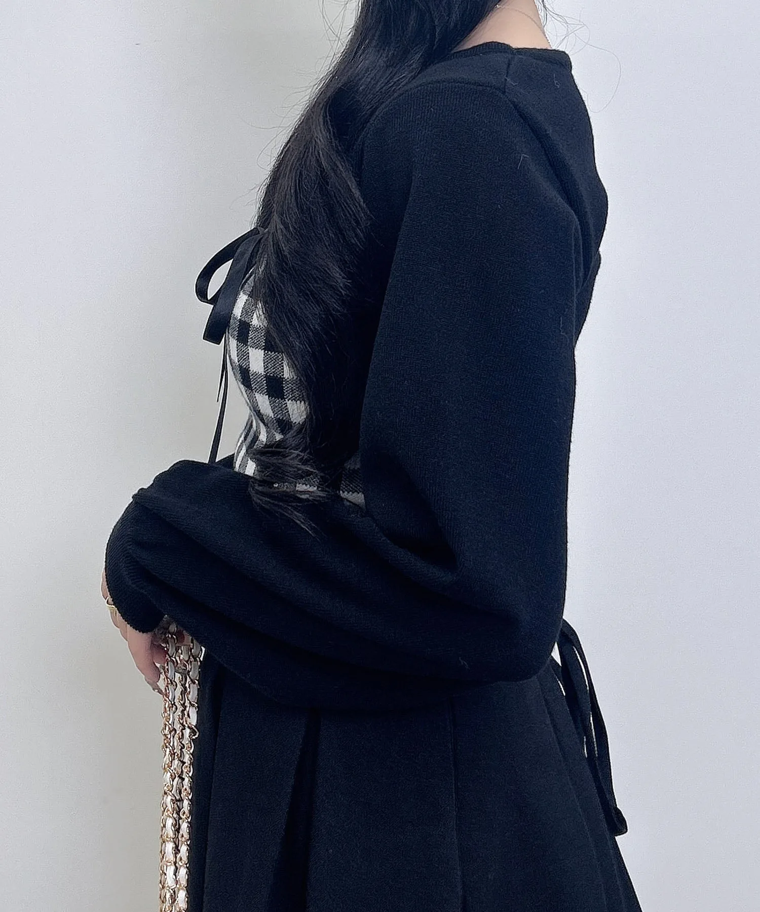 Ленточка на груди и клетчатый узор добавляют стильный акцент.