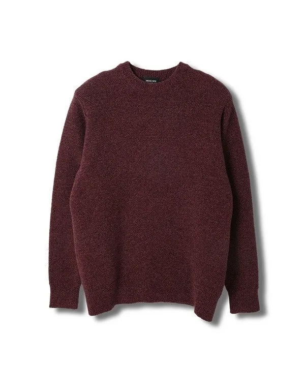 Этот меланжевый свитер, связанный платочной вязкой, создан путем скручивания двух цветов мохеровой пряжи (тонкой, пушистой пряжи из шелка, шерсти или синтетических волокон) с пряжей из перьев.