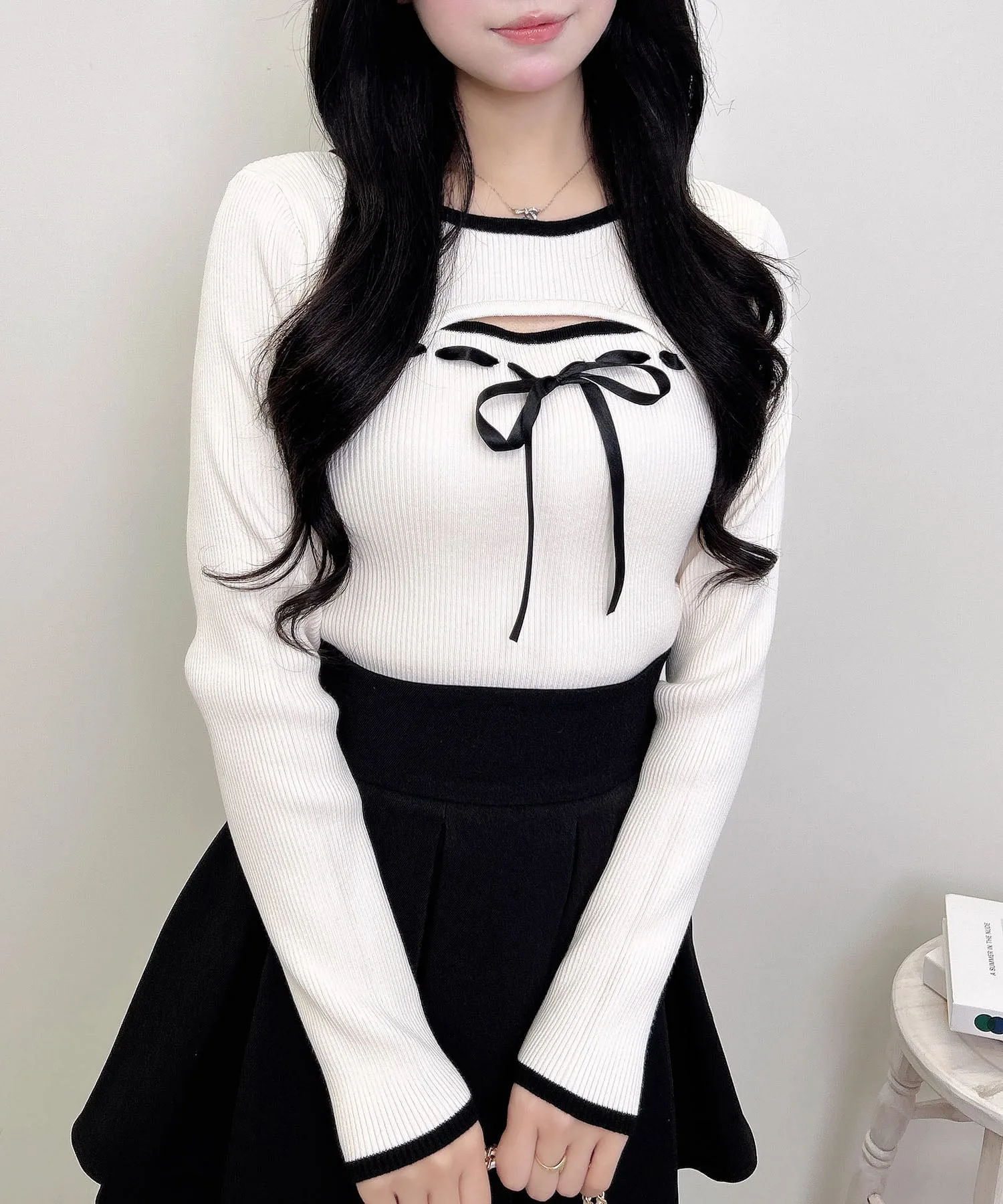 Лента на груди и легкое обнажение кожи создают женственный образ.