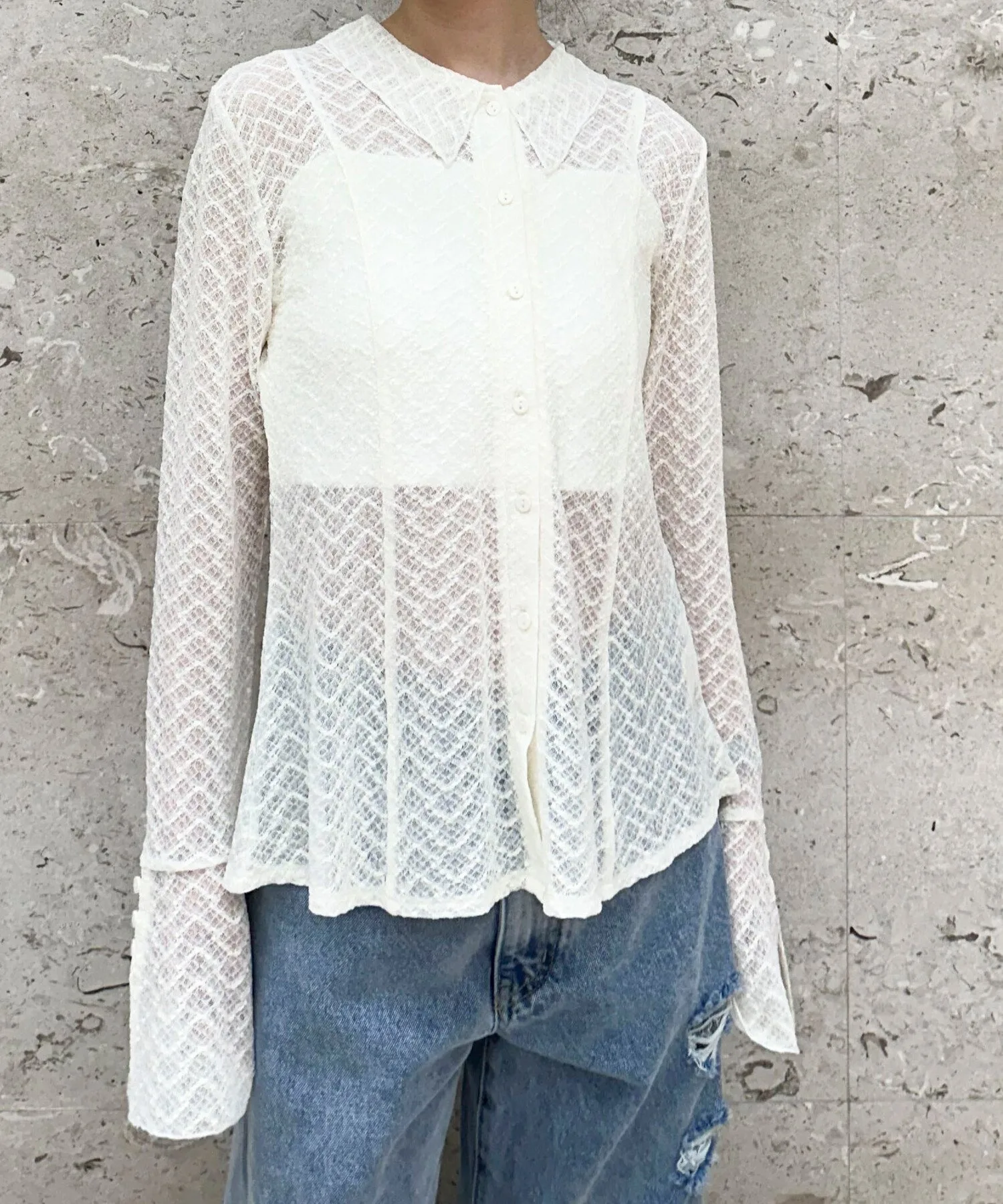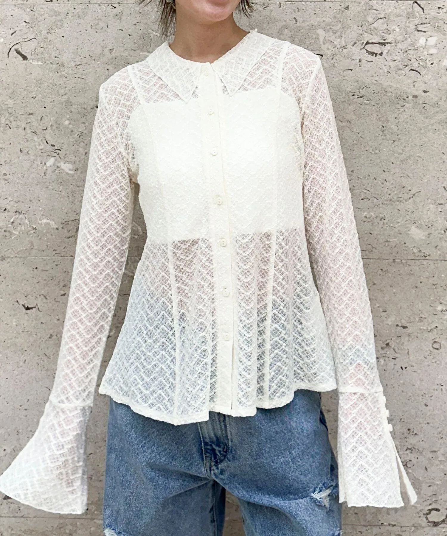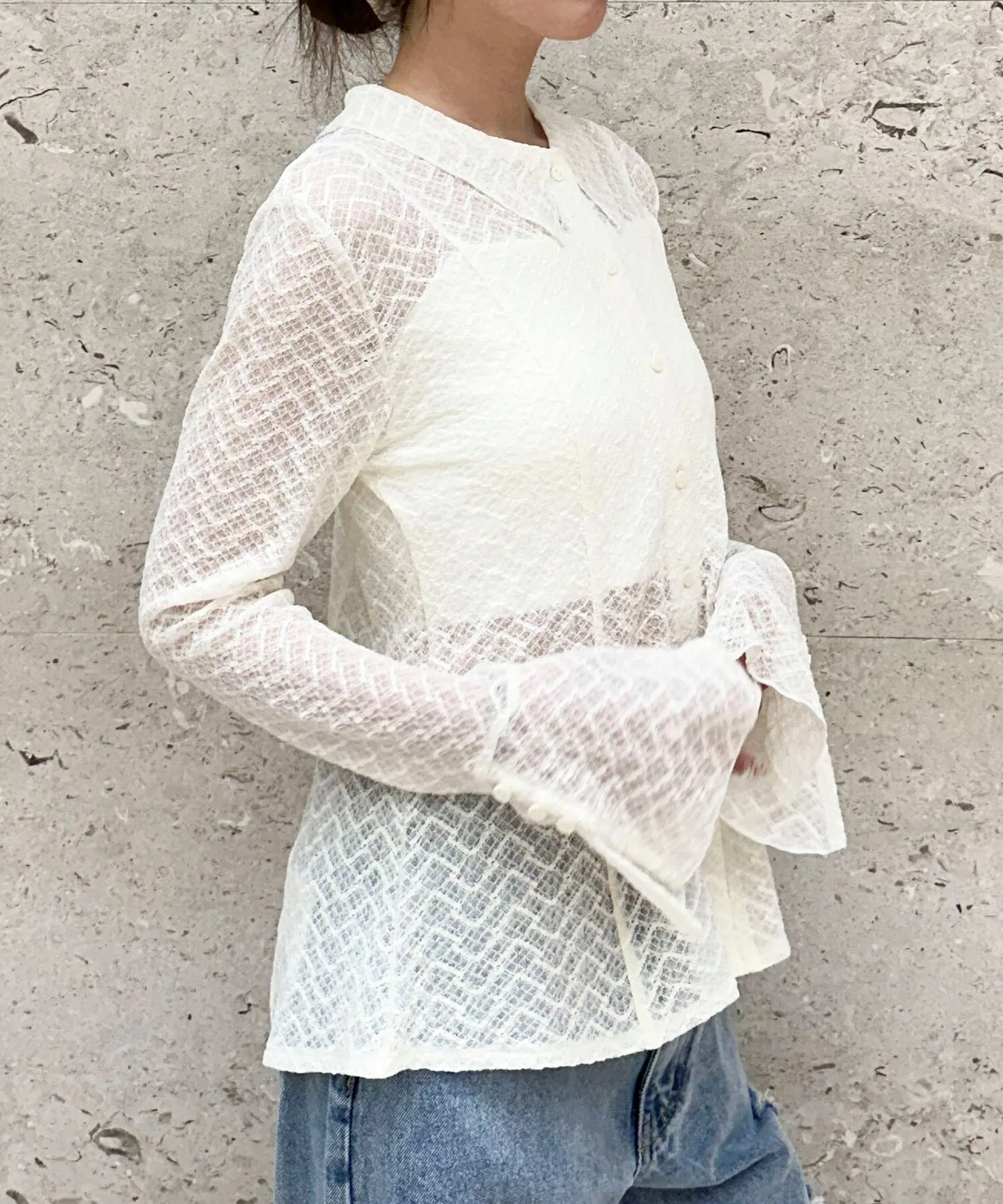 - Блузка-поло с привлекательной прозрачностью нежного кружева