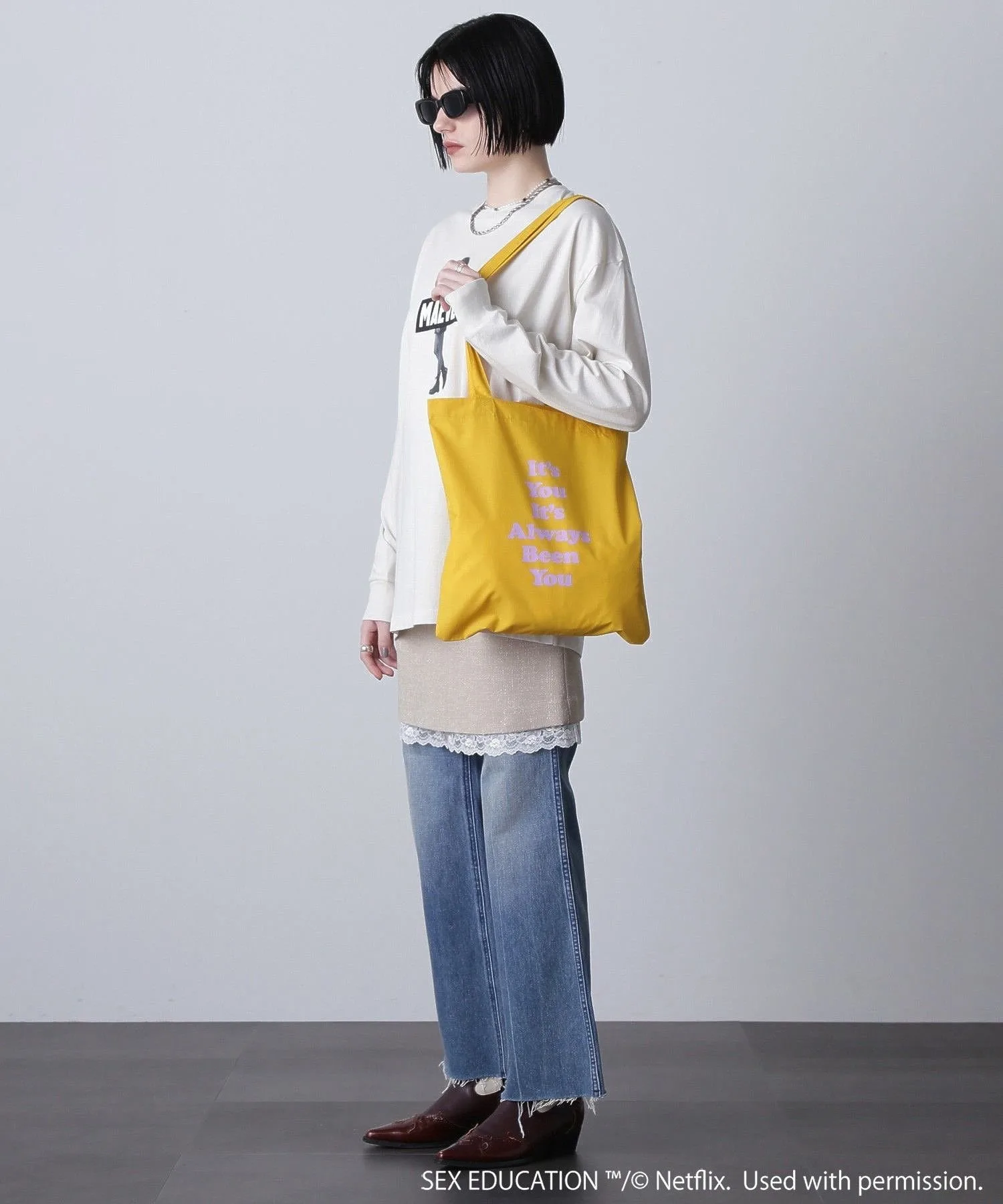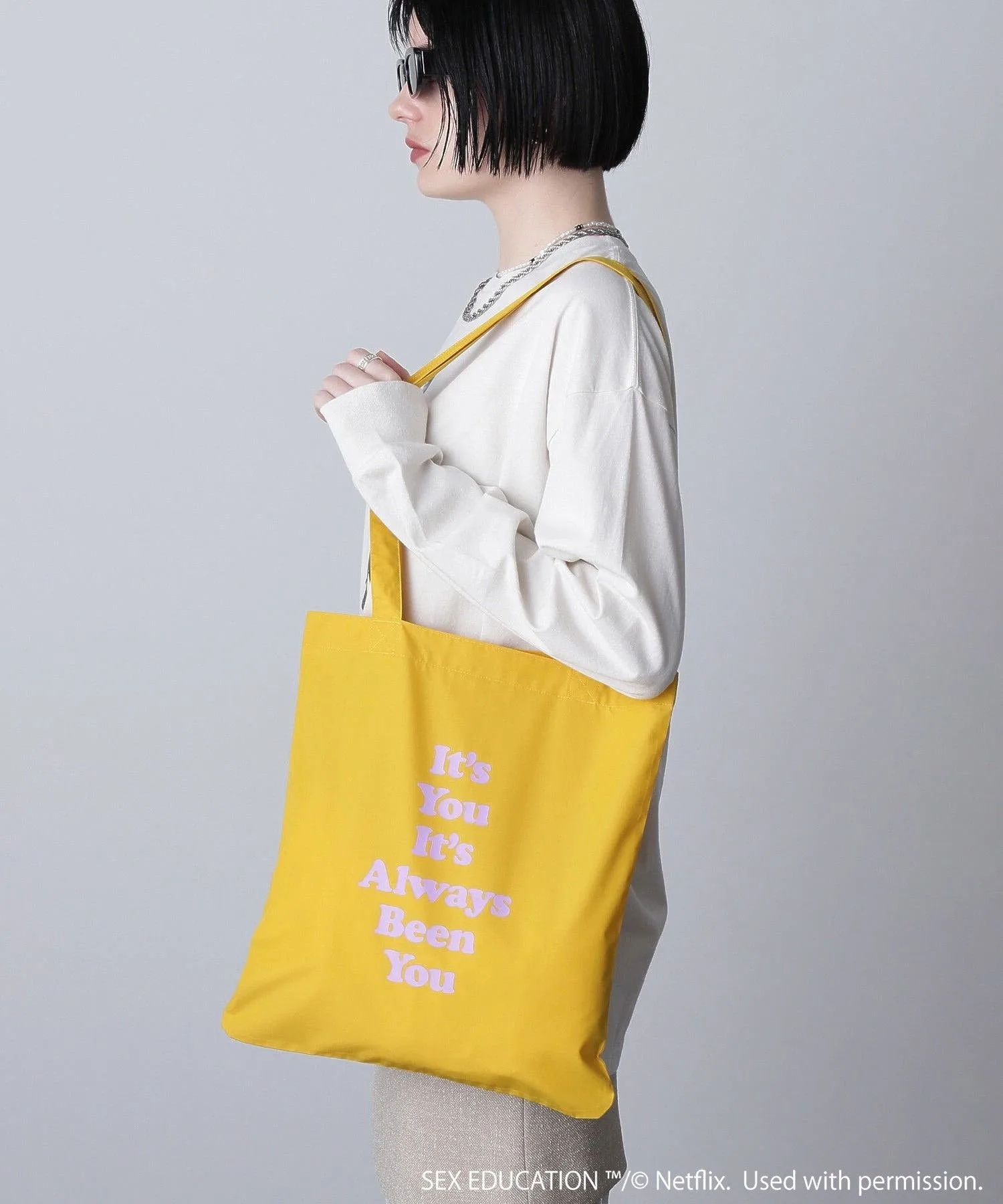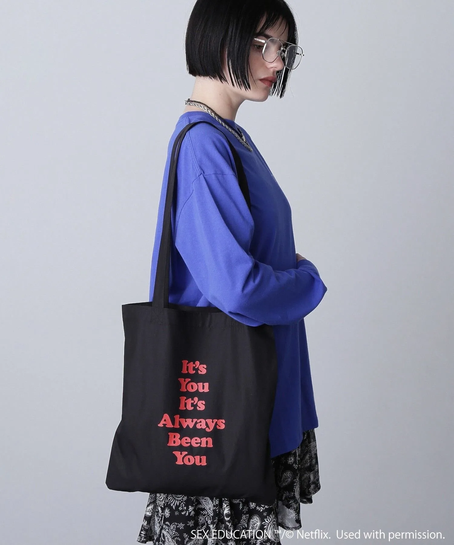Сумка-шоппер с принтом, на котором напечатаны слова из запоминающихся сцен сериала «Половое воспитание».