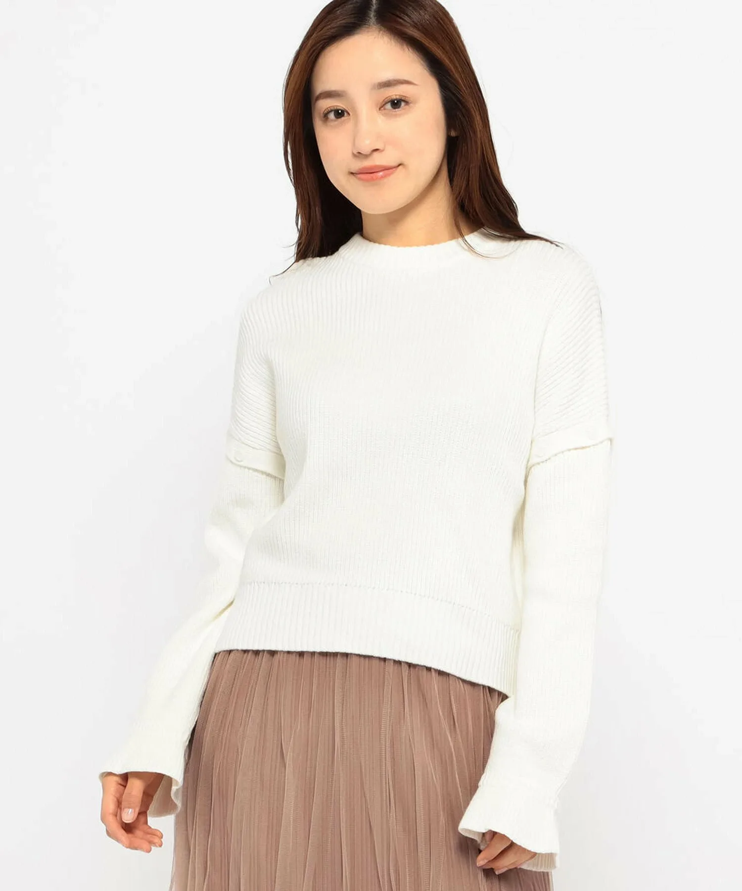 Этот трикотажный свитер имеет пуговицы на рукавах и может носиться как с длинными, так и с короткими рукавами. Светлый цвет создает весеннее настроение. Короткая длина позволяет создать элегантный образ. Это вещь, которую вы можете носить в зависимости от настроения и температуры.
