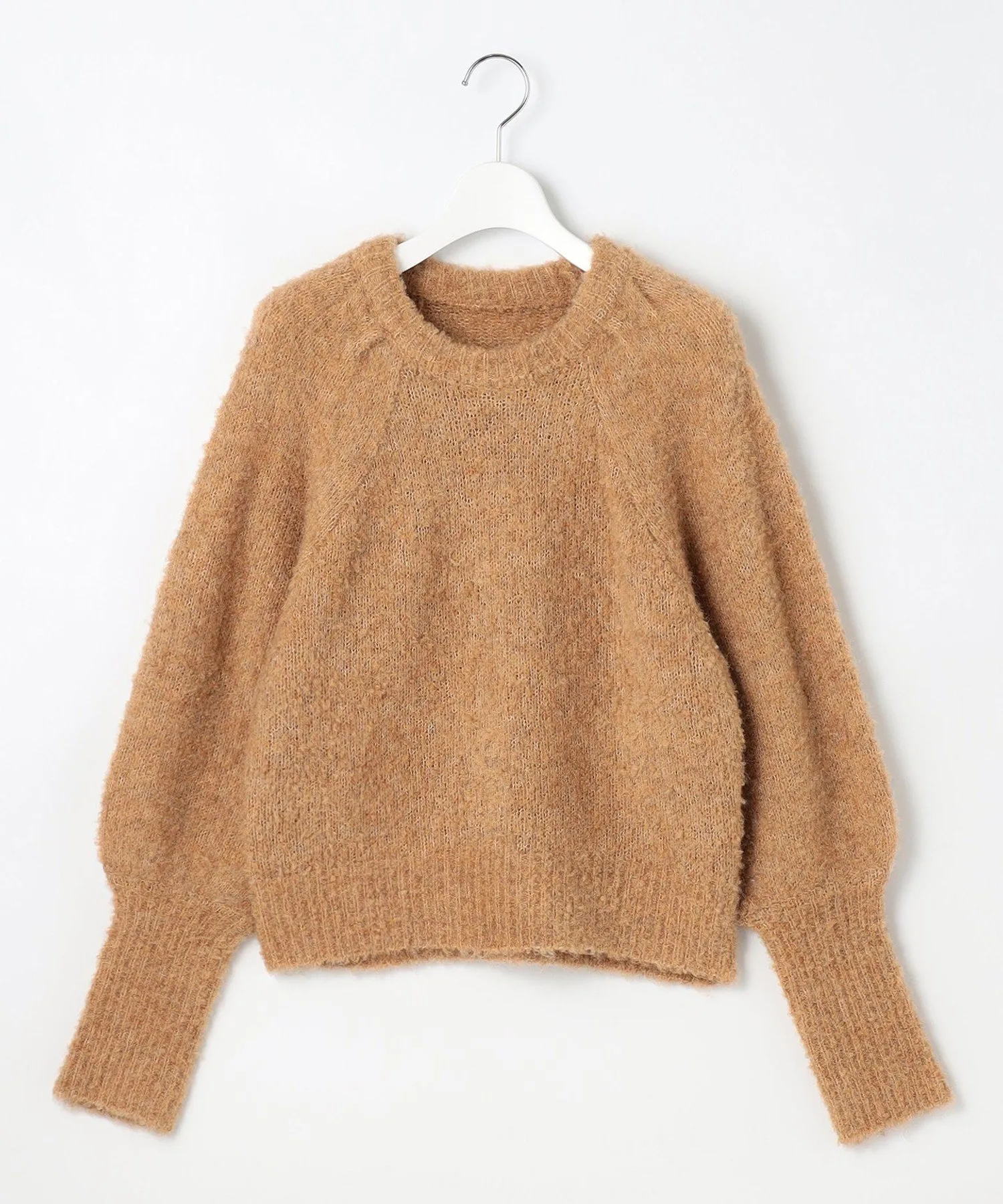 Вязаные свитера из букле обычно носят в повседневном стиле, но этот свитер имеет милый, взрослый вид благодаря пышным рукавам и длинной ребристой отделке манжет. Ребристый низ позволяет легко носить его, не заправляя в брюки.