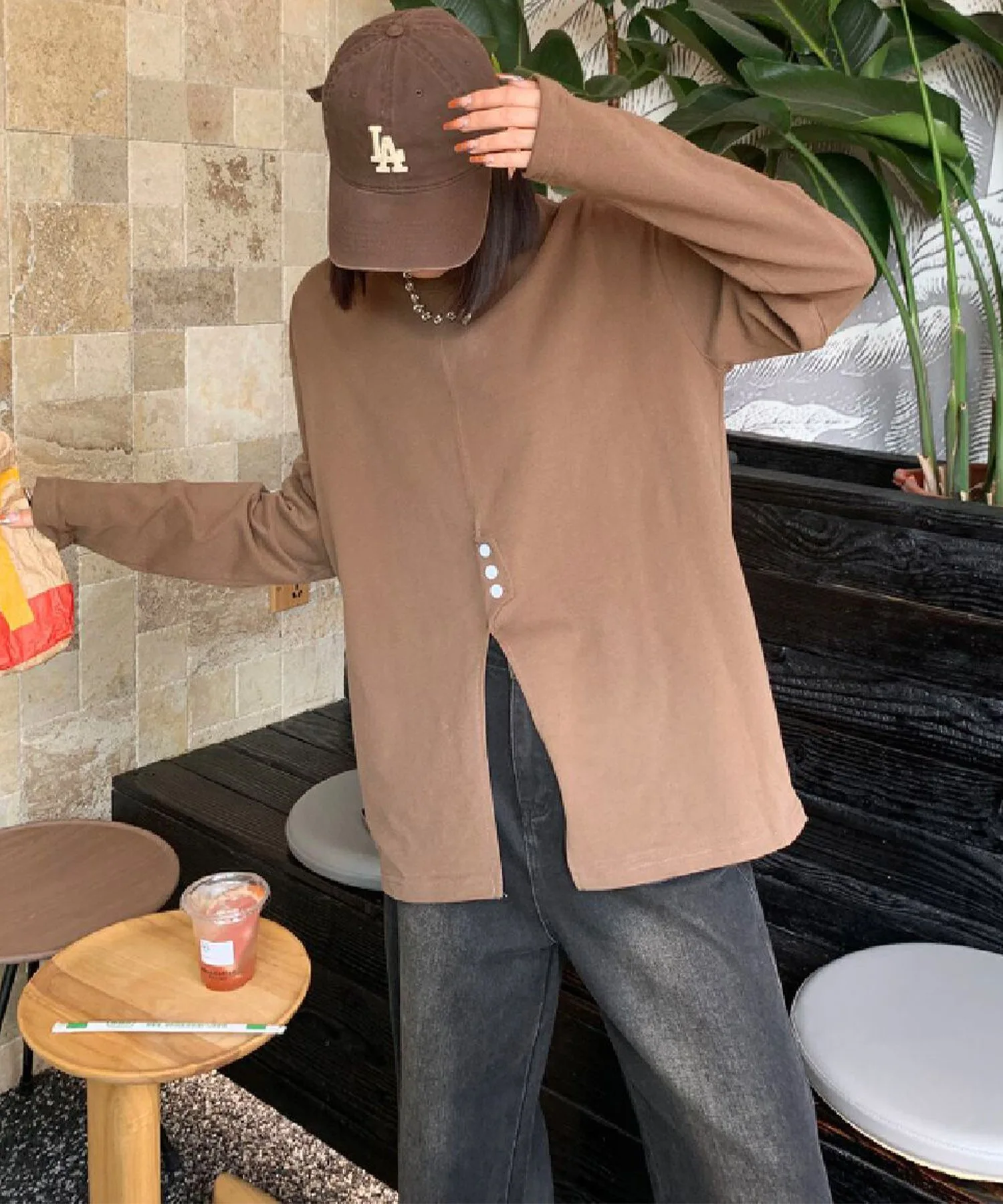 Разрез украшен пуговицами, что позволяет наслаждаться простым, но неповторимым стилем. Свободный силуэт делает ее удобной в ношении.