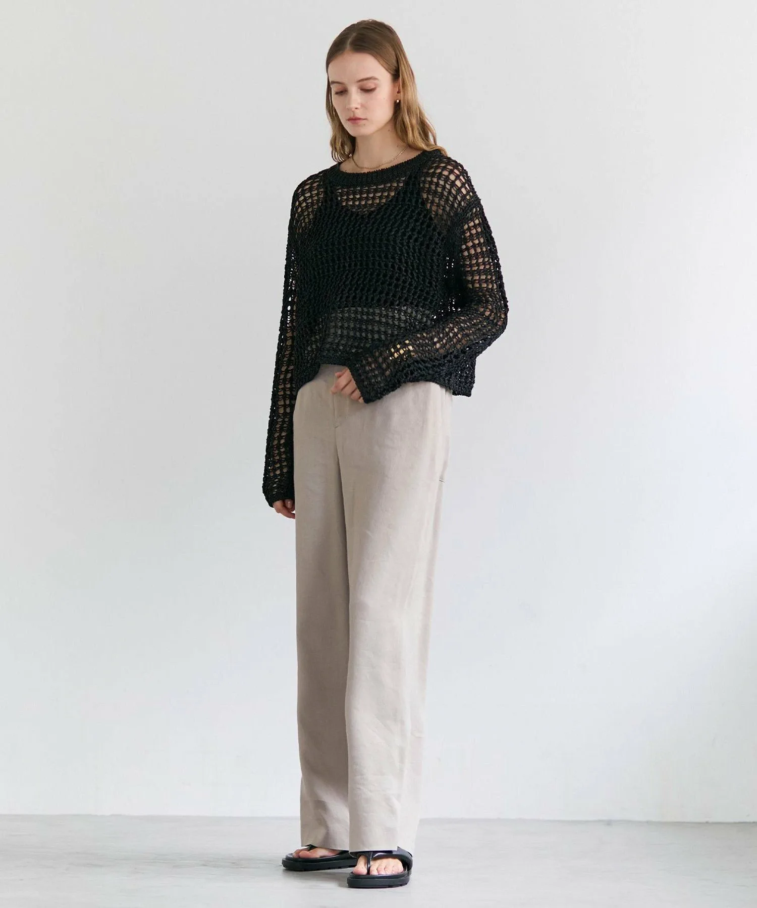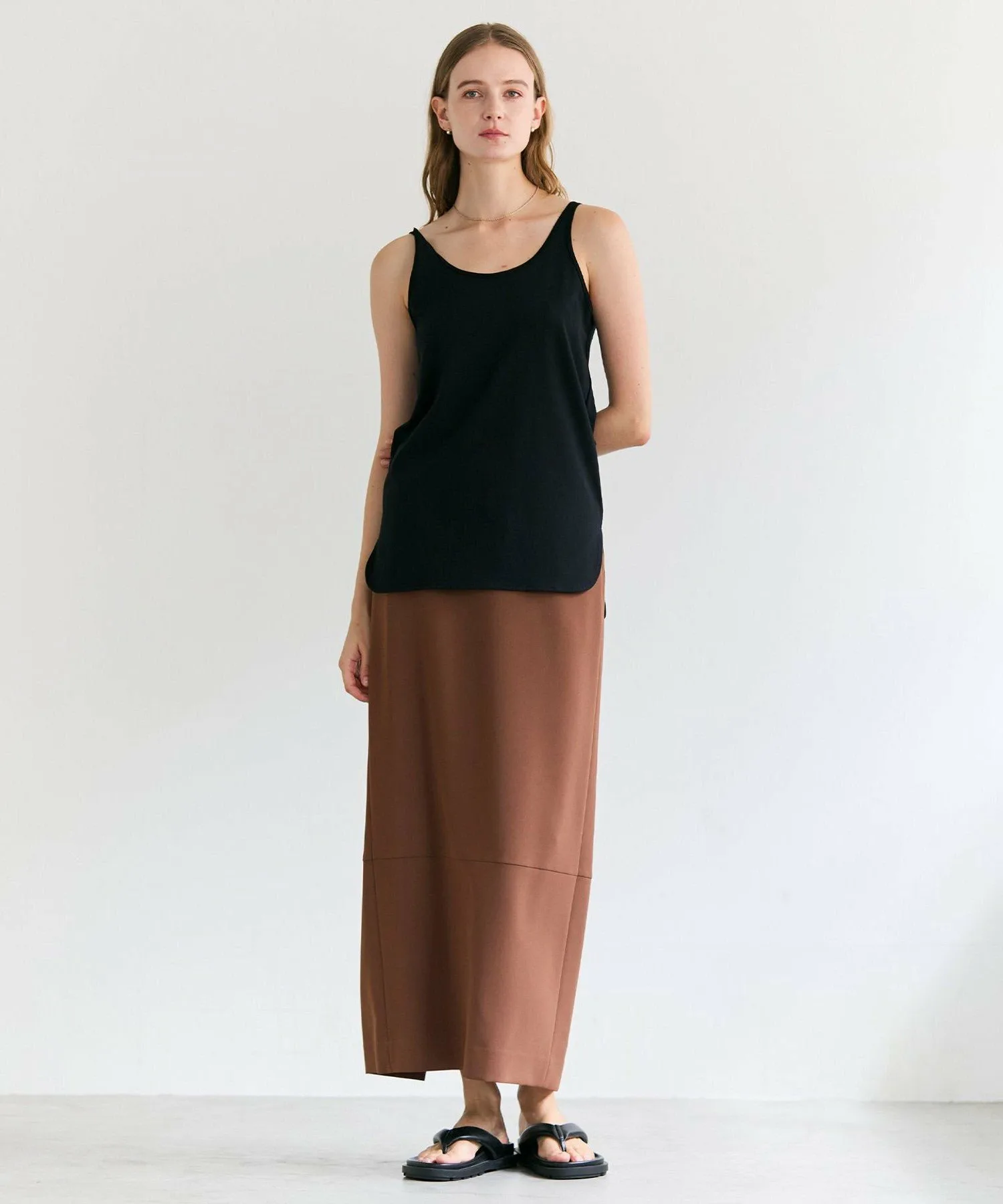 Эта популярная бежевая хлопковая майка имеет тонкие бретельки и глубокий вырез на спине, создавая утонченный женственный образ как при самостоятельном ношении, так и при надевании поверх прозрачной одежды. Закругленный нижний край создает расслабленный образ при многослойном ношении. Доступная в легко сочетающихся белом и черном цветах, эта универсальная майка может носиться с трикотажными изделиями и блузками или сочетаться с прозрачной внутренней одеждой летом.