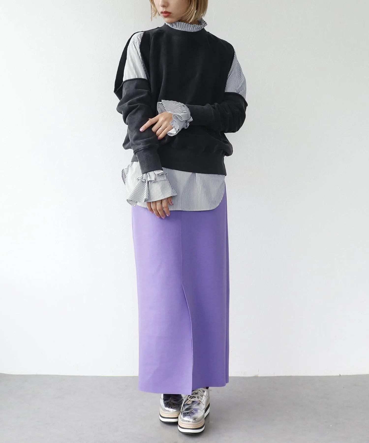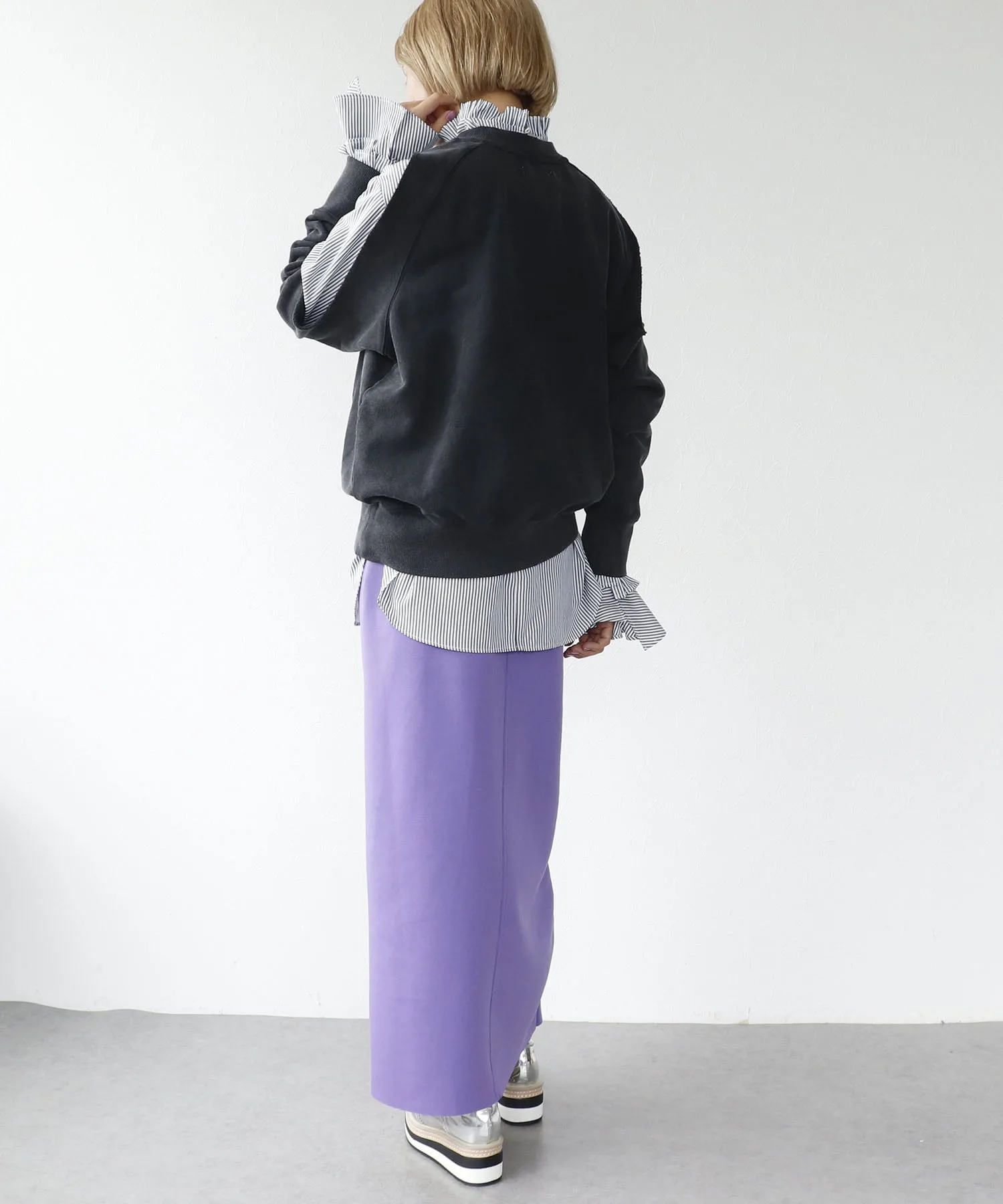 ※В зависимости от изделия, складки могут образовываться легче, а заломы от складывания или сгибания могут быть более заметными. Пожалуйста, проверьте информацию о качестве на этикетке изделия перед стиркой или глажкой. Рост модели: 163 см, размер 38