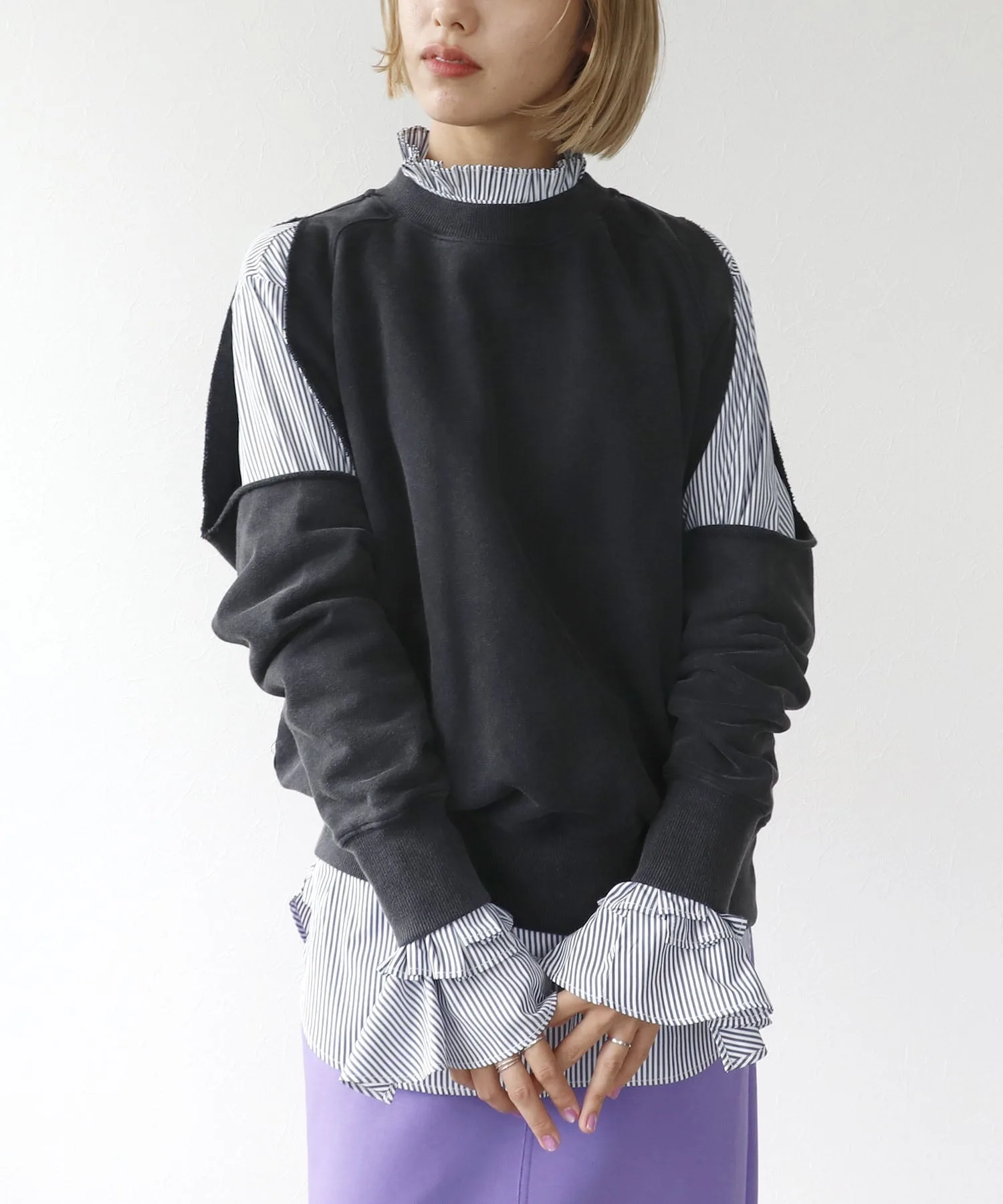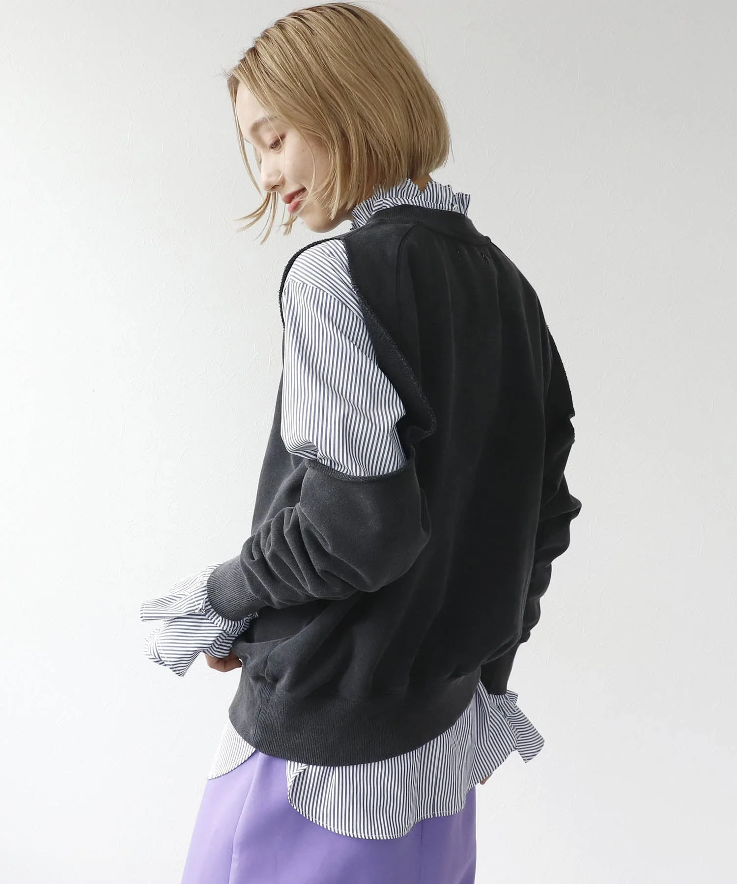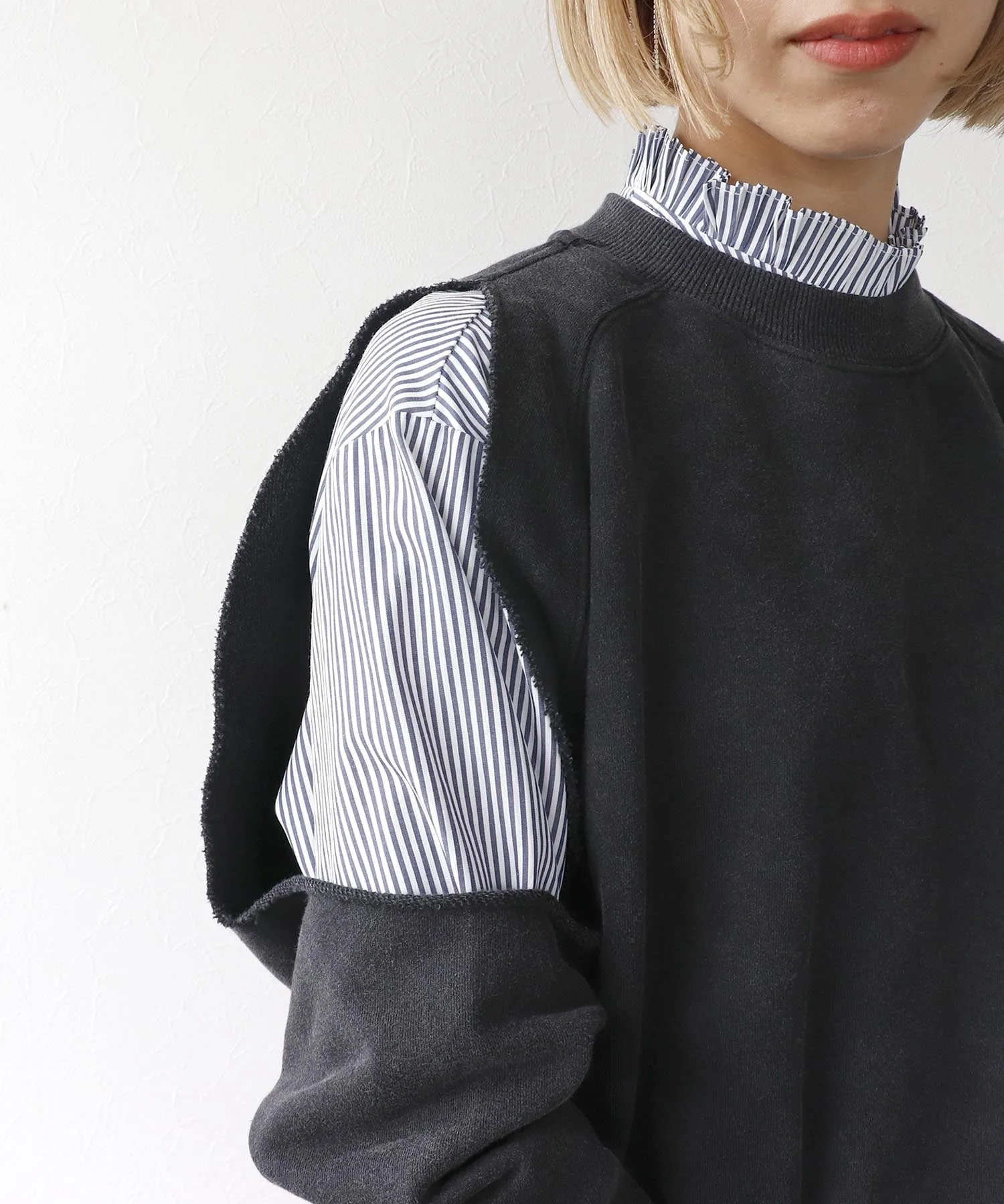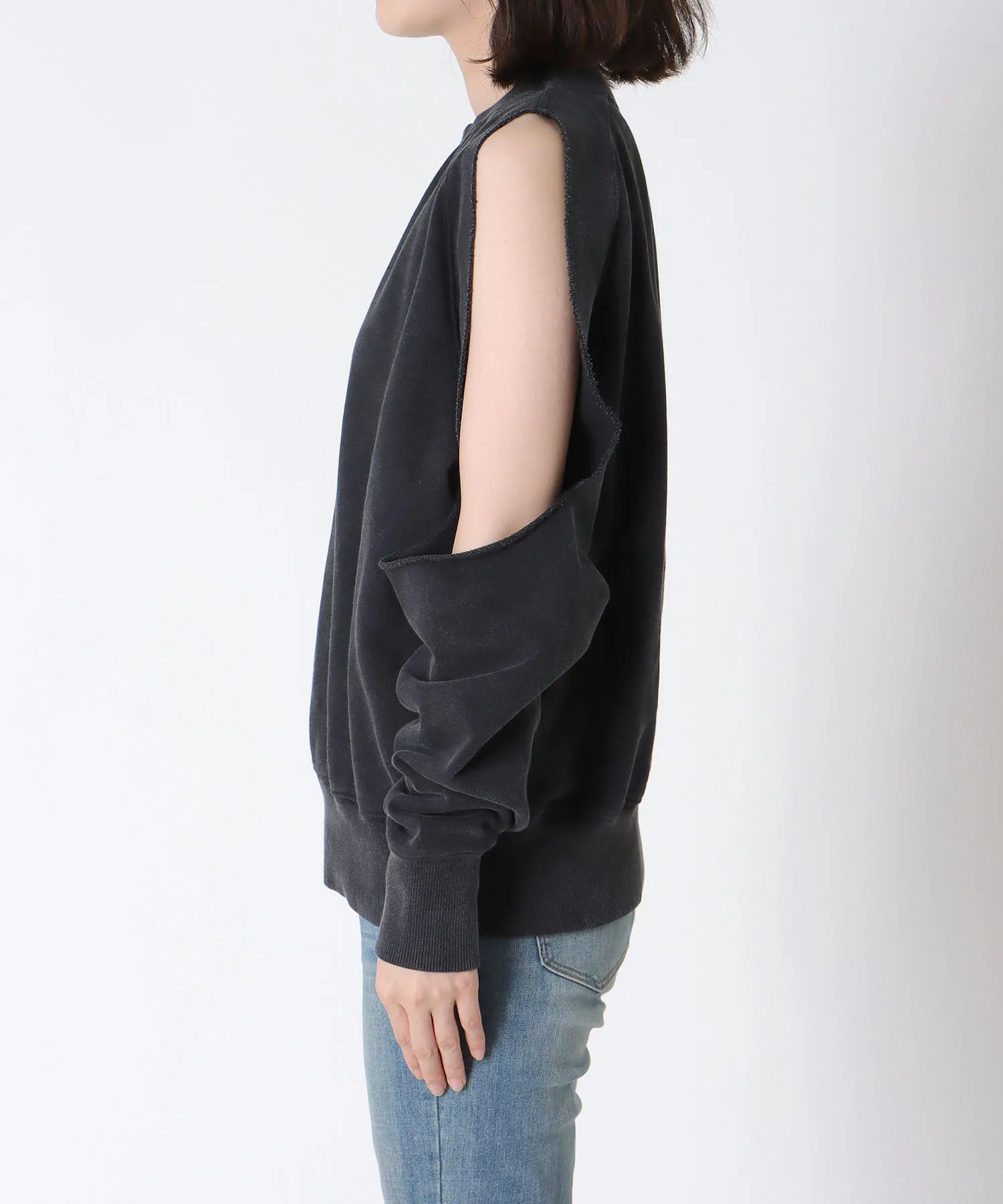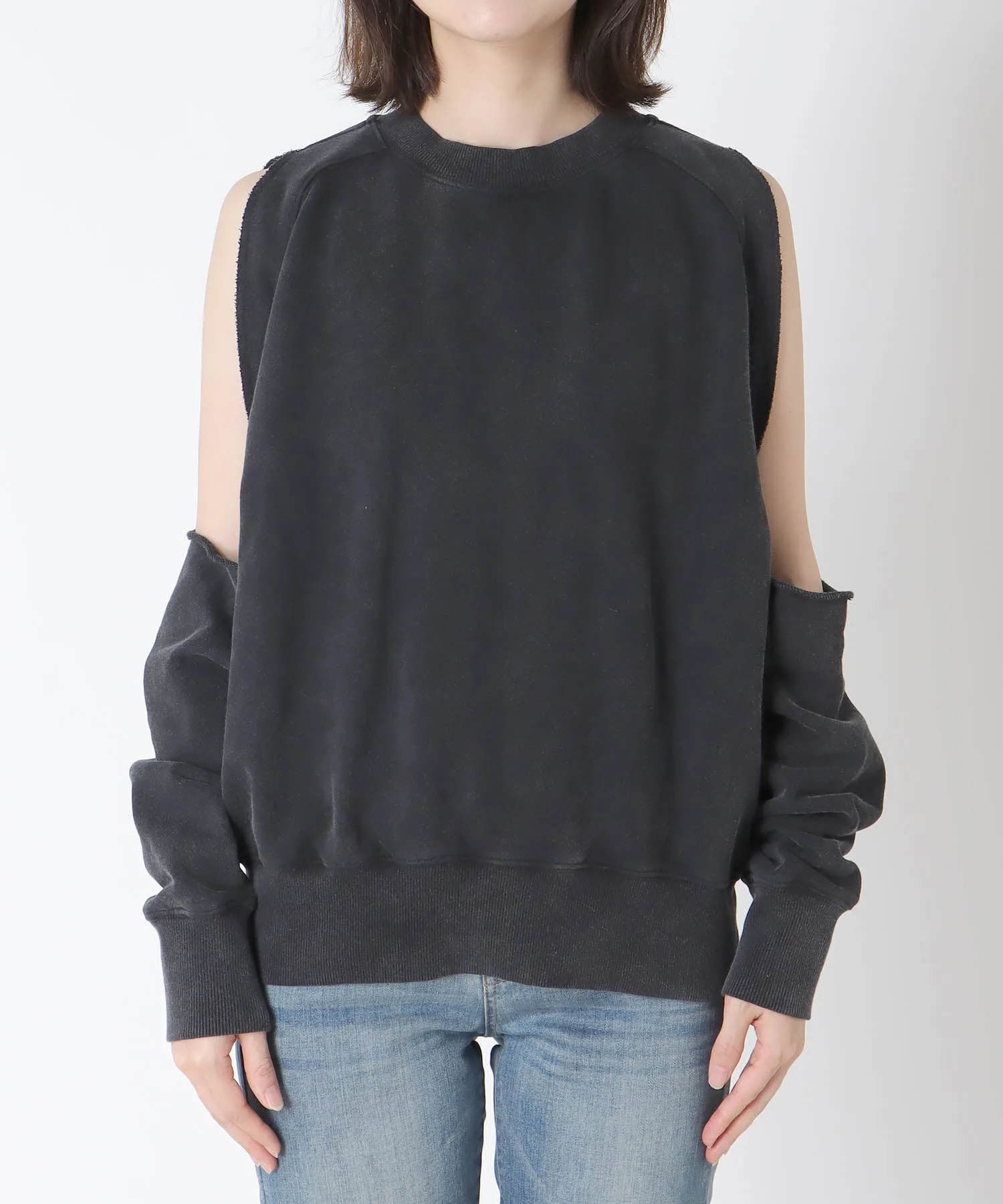 Уникальная толстовка с широкими укороченными плечами.