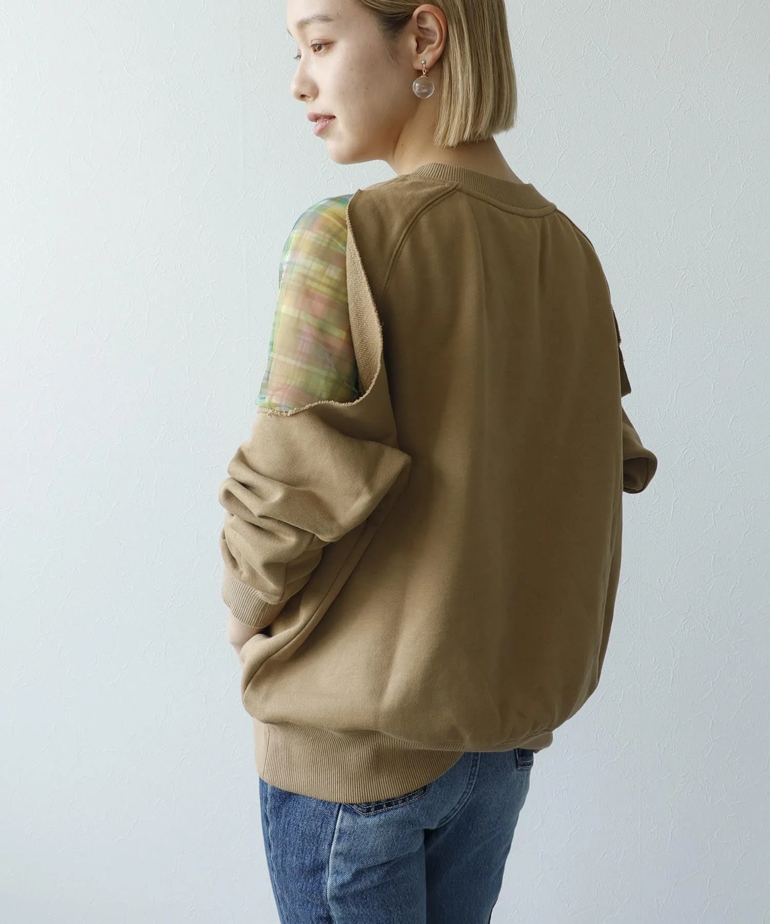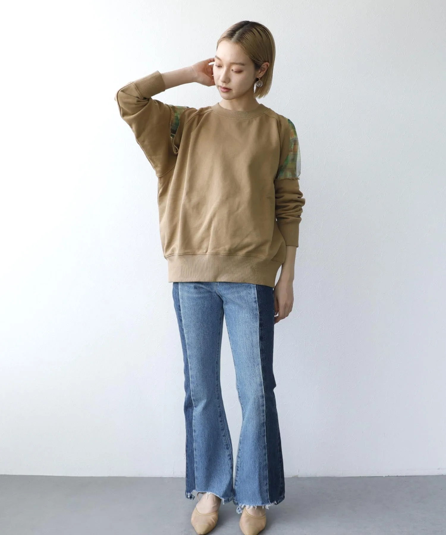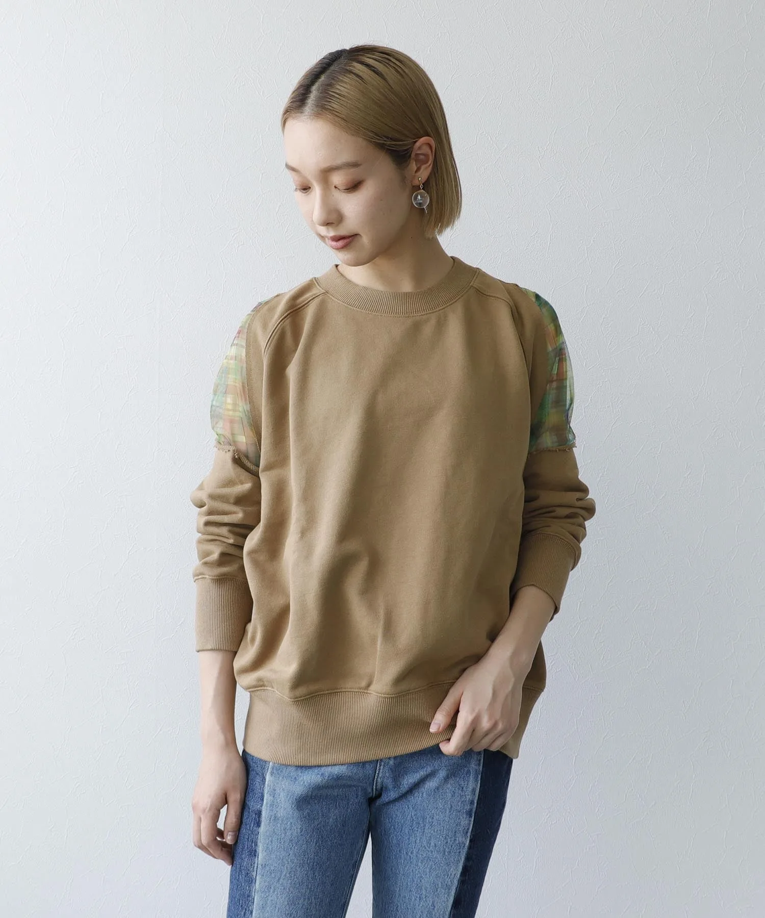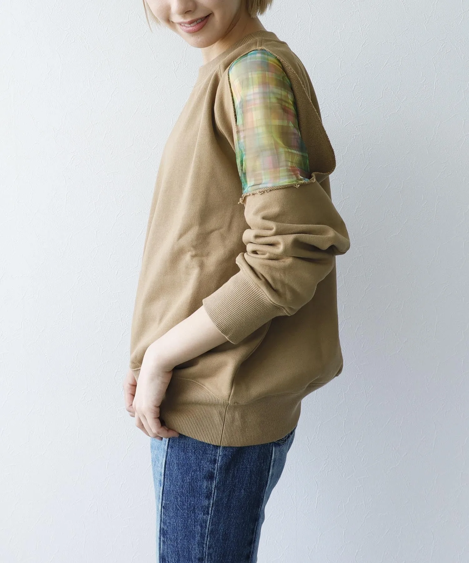 ※В зависимости от изделия, складки могут образовываться легче, а заломы от складывания или сгибания могут быть более заметными. Пожалуйста, проверьте информацию о качестве на этикетке изделия перед стиркой или глажкой. Рост модели: 163 см, размер 38