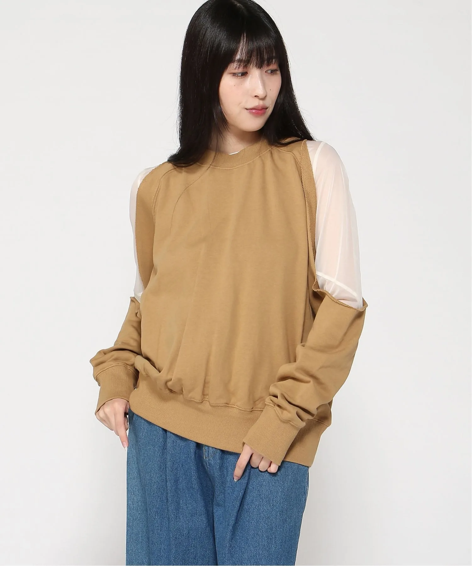 Уникальная толстовка с широкими укороченными плечами.