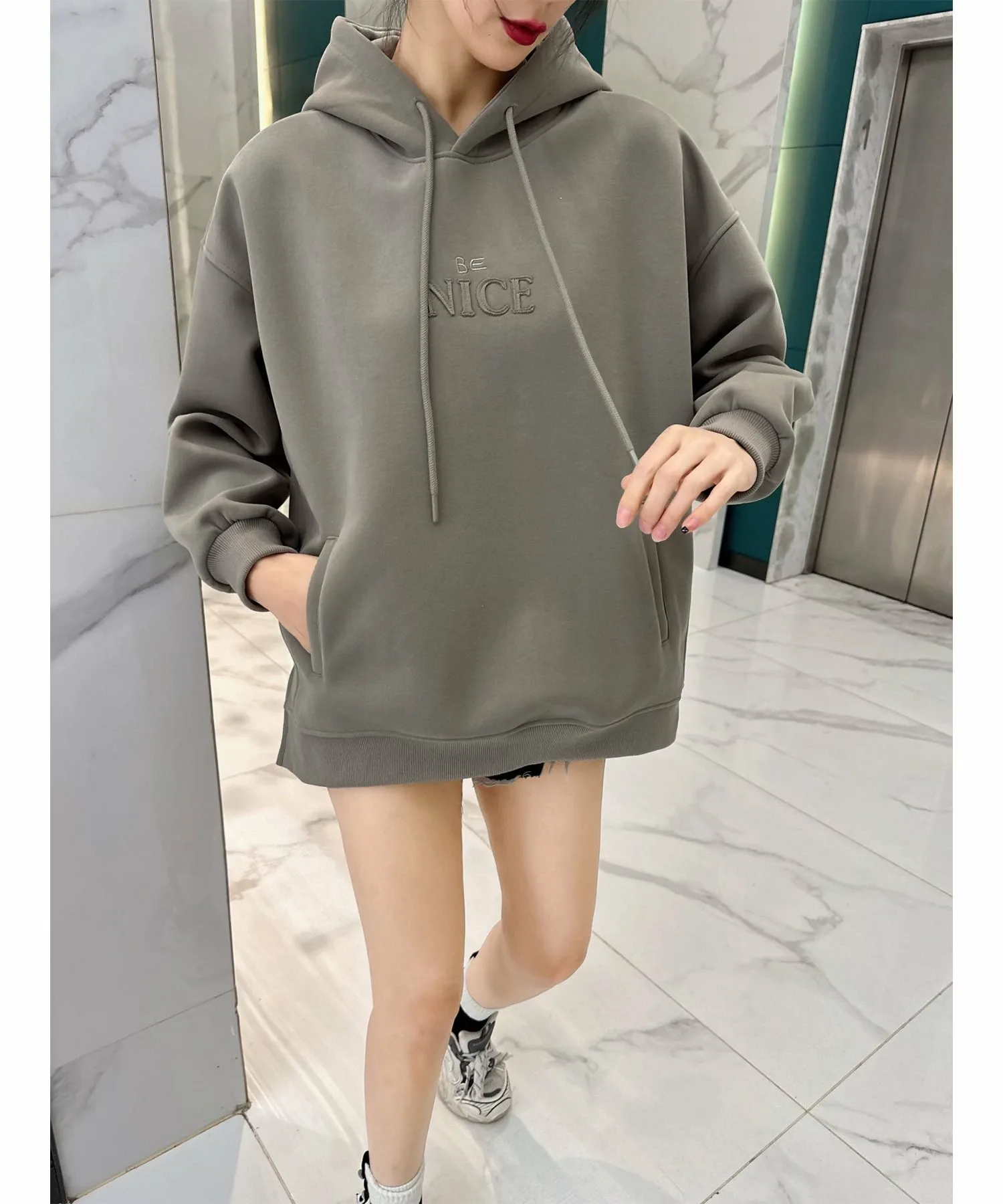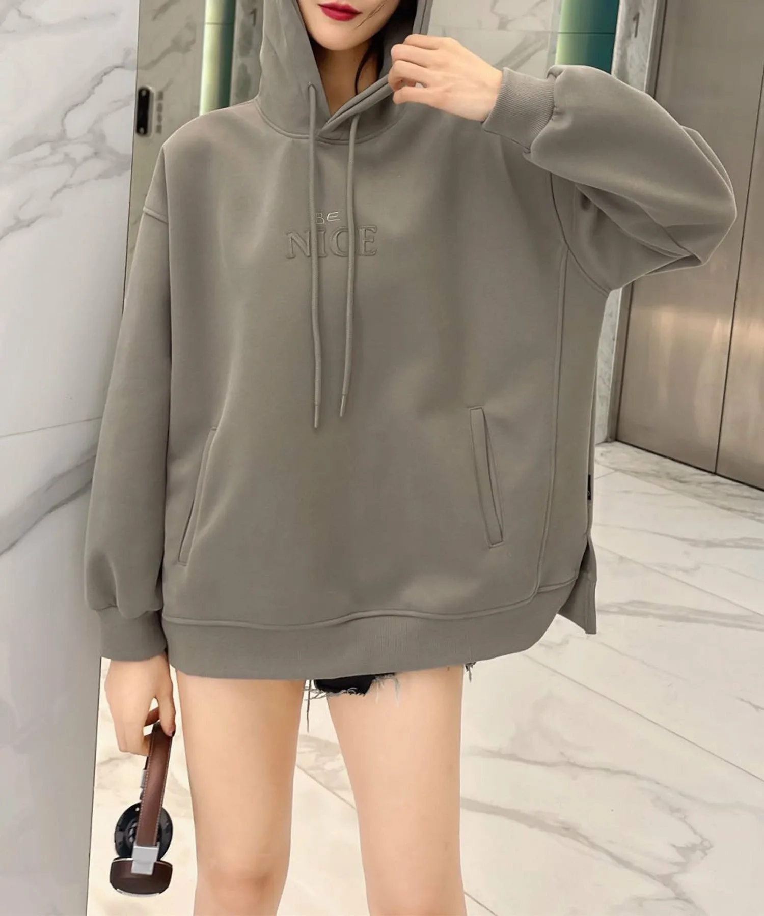 Благодаря мягкой ткани и свободному крою она идеально подходит для повседневной носки. Вышитый логотип "NICE" на передней части — её изюминка!
