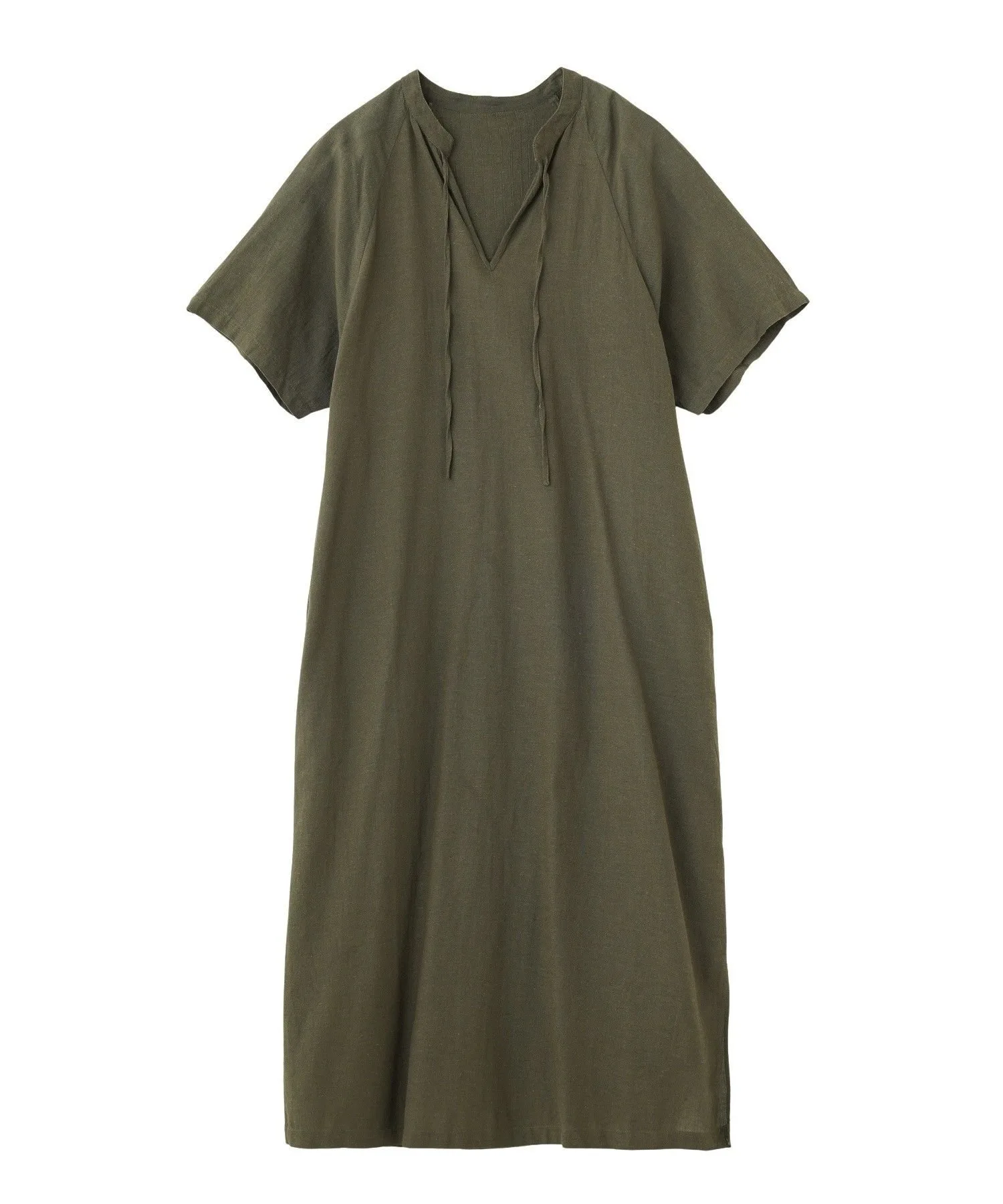 Платье с разрезом на шее, создающее элегантный и непринужденный образ.