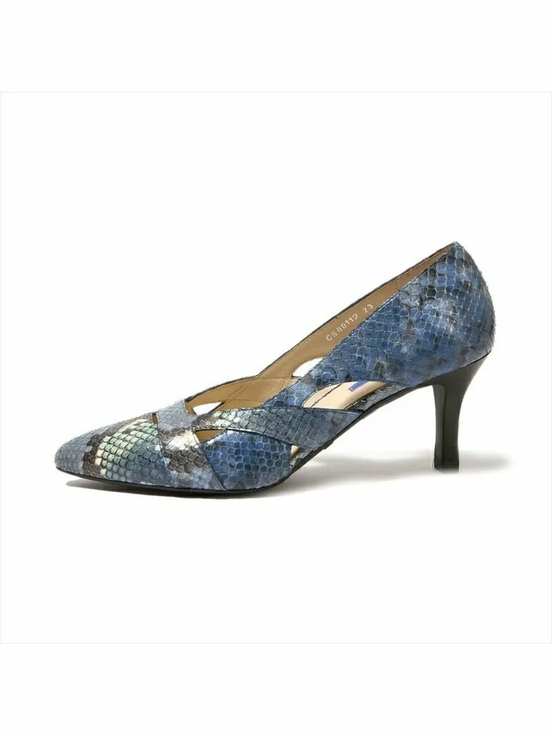 Представляем эти стильные туфли-лодочки с прямой ажурной отделкой, изготовленные на популярной 7-сантиметровой деревянной колодке. Общий дизайн отличается непринужденностью, создавая приятное ощущение легкости. Однотонная металлическая отделка выглядит круто благодаря использованию итальянской кожи, напоминающей фольгу, а многоцветная тисненая змеиная кожа добавляет вашим ногам нотку непринужденности. Эти туфли имеют открытую конструкцию, но изготовлены по болонскому методу, поэтому обеспечивают исключительно комфортную, облегающую посадку.