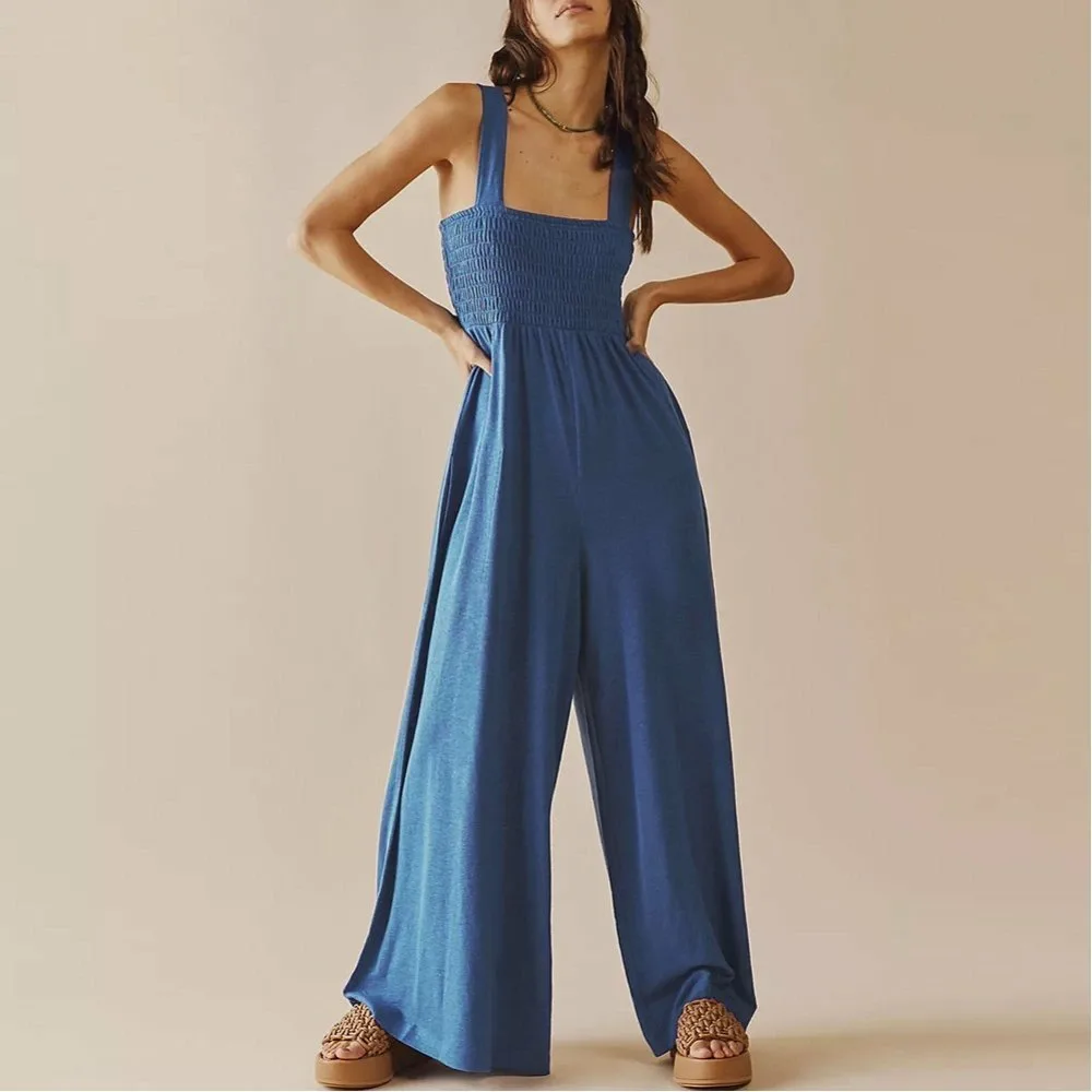 Комбинезон, стройнящий фигуру, однотонные расклешенные брюки, платье для отдыха