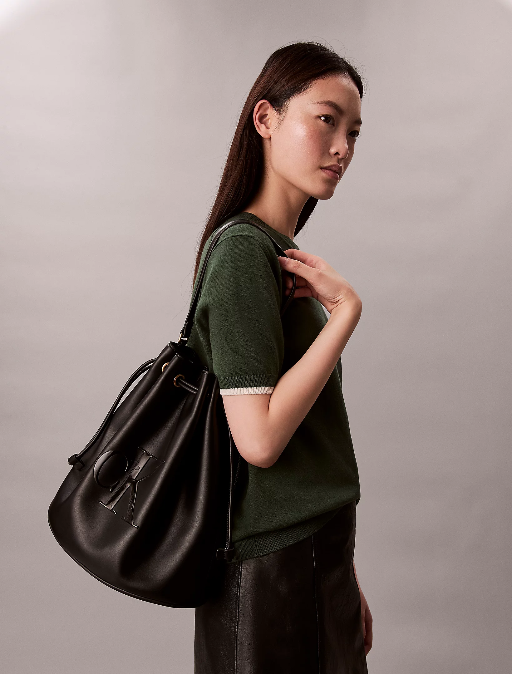 Продуманная функциональность сумки отвечает потребностям активной женщины. Классическая форма ведра (bucket bag) создает объемный, но при этом женственный силуэт. Эта форма позволяет удобно разместить все необходимые вещи, сохраняя при этом элегантный внешний вид. Верхняя ручка обеспечивает удобную переноску в руке, позволяя носить сумку как классический аксессуар. Застежка-шнурок (drawstring closure) не только добавляет дизайну непринужденный и современный акцент, но и позволяет легко регулировать доступ к содержимому, обеспечивая безопасность ваших вещей.