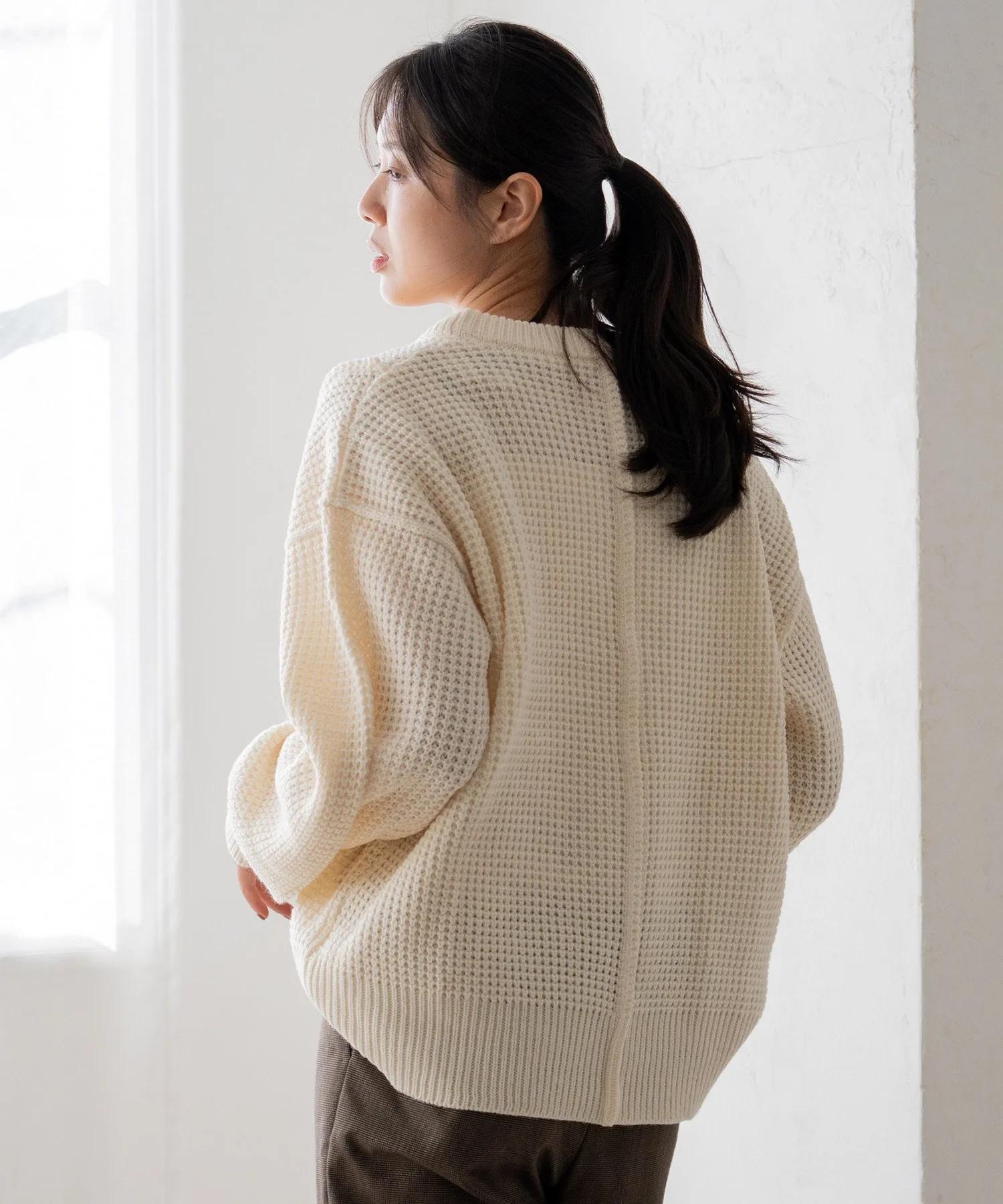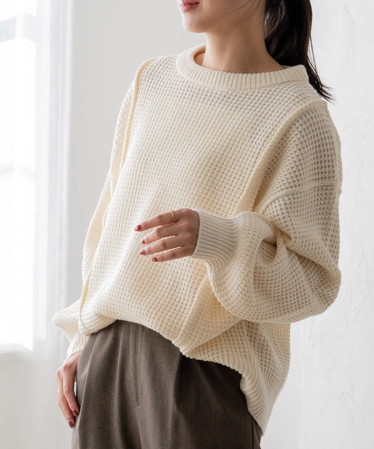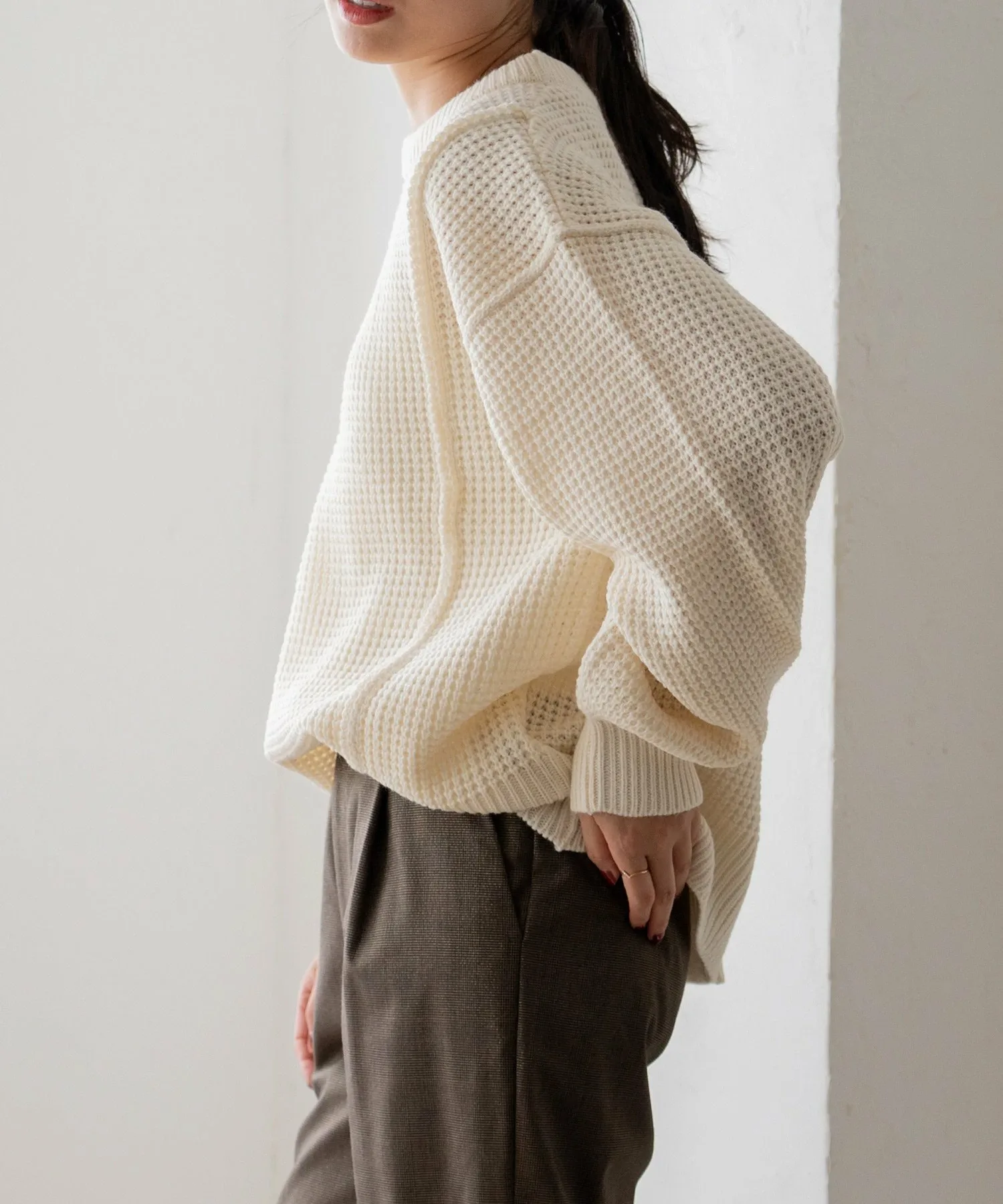 Свободный пуловер из вафельной вязки