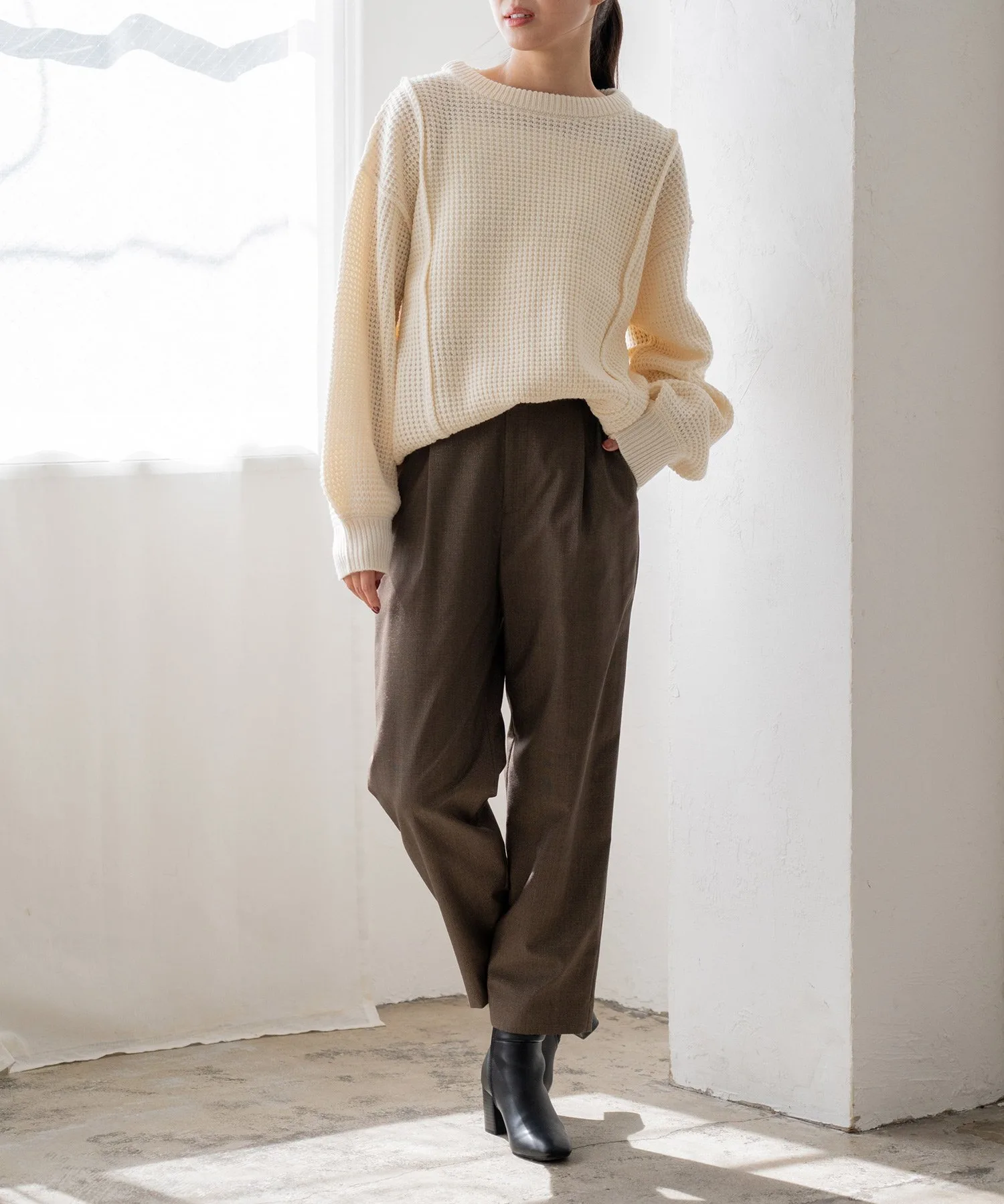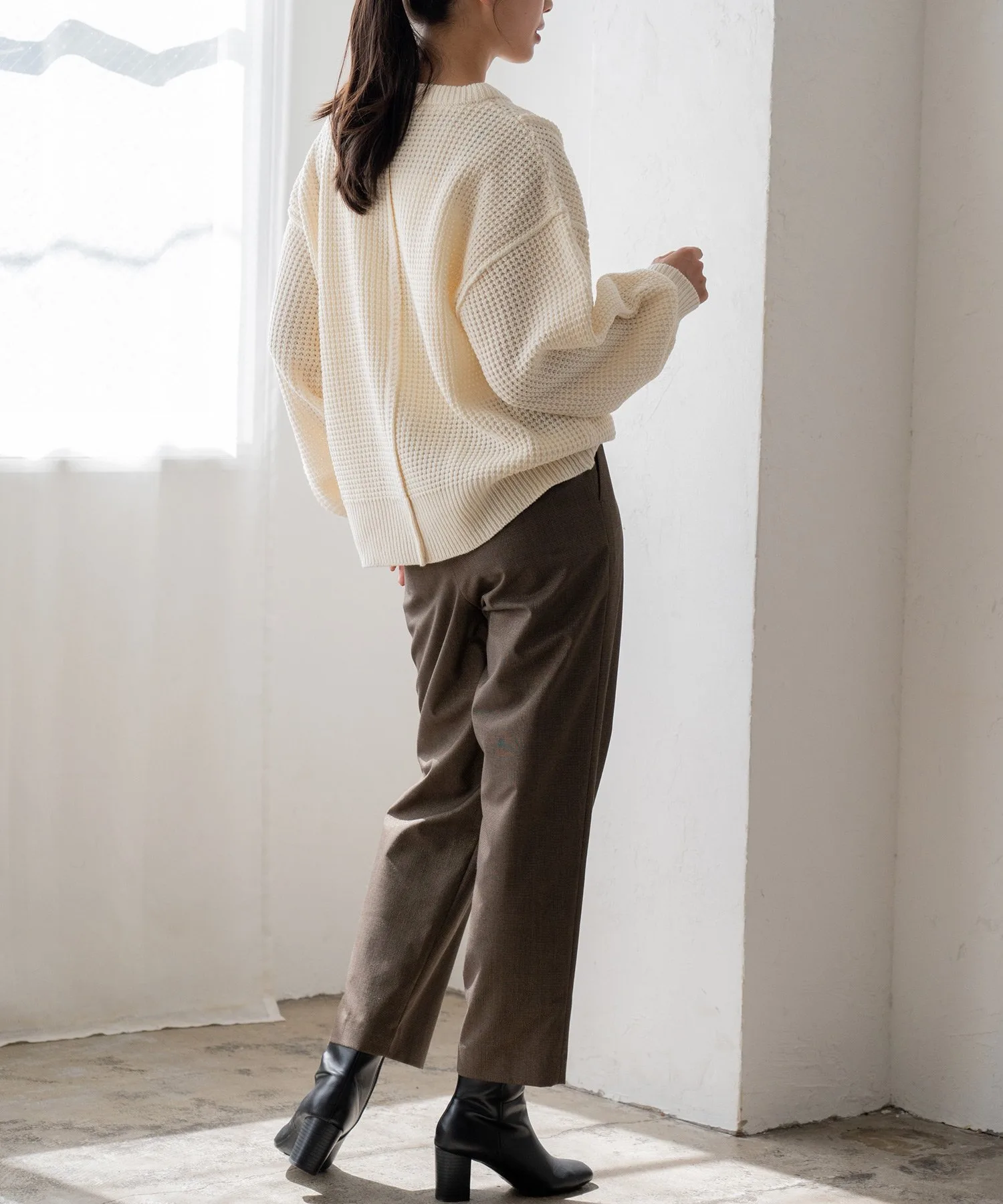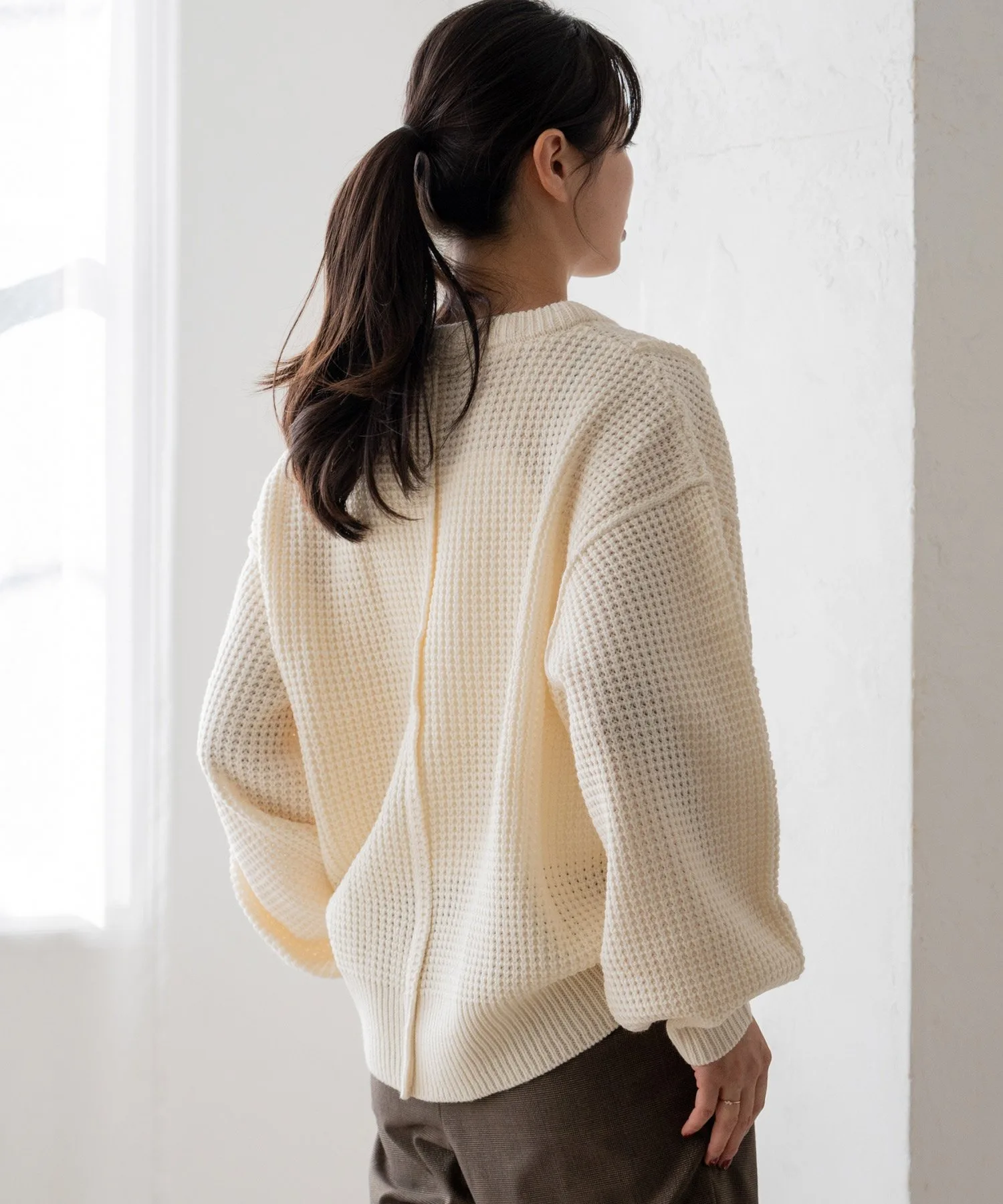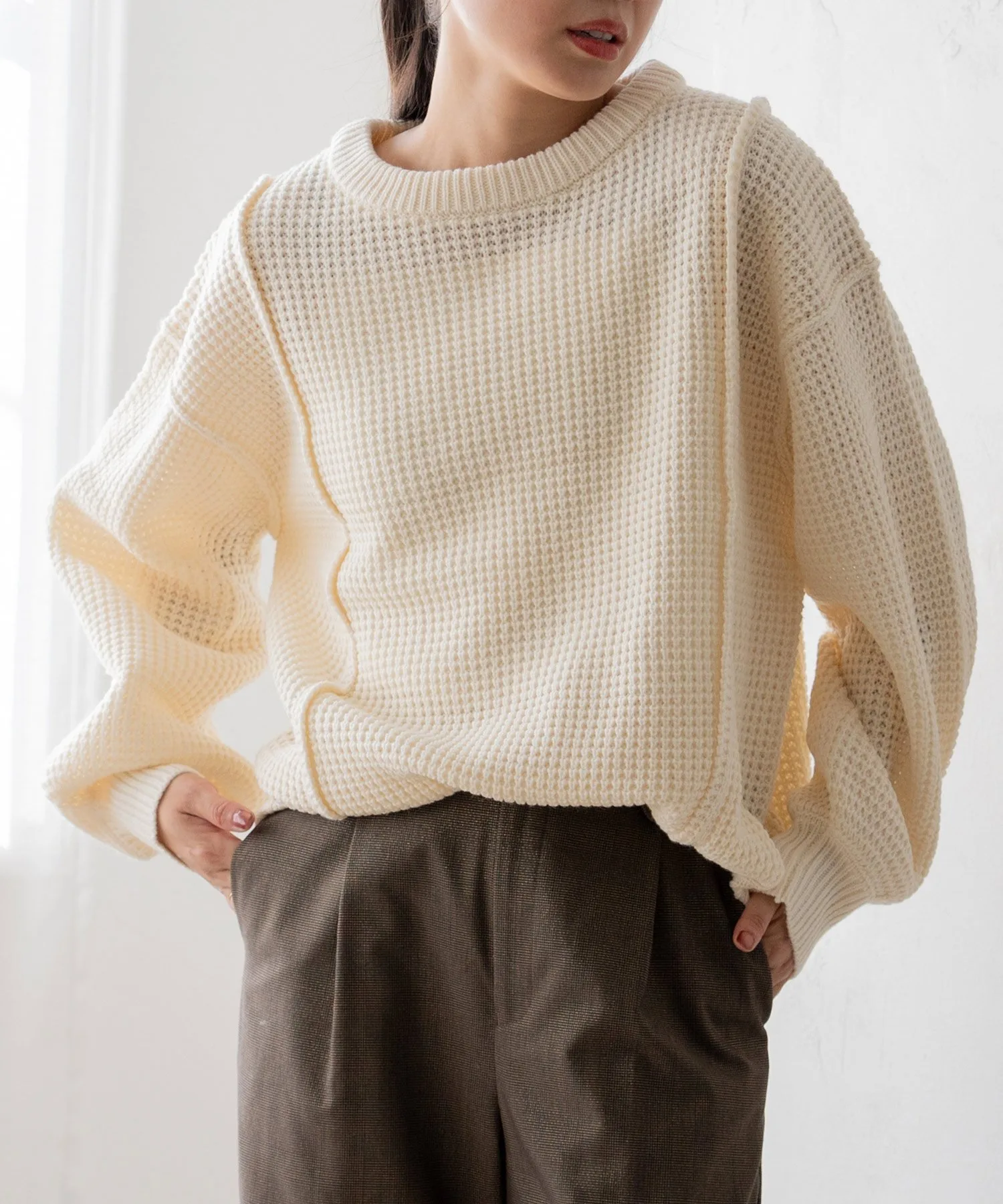 Свободный пуловер из вафельной вязки