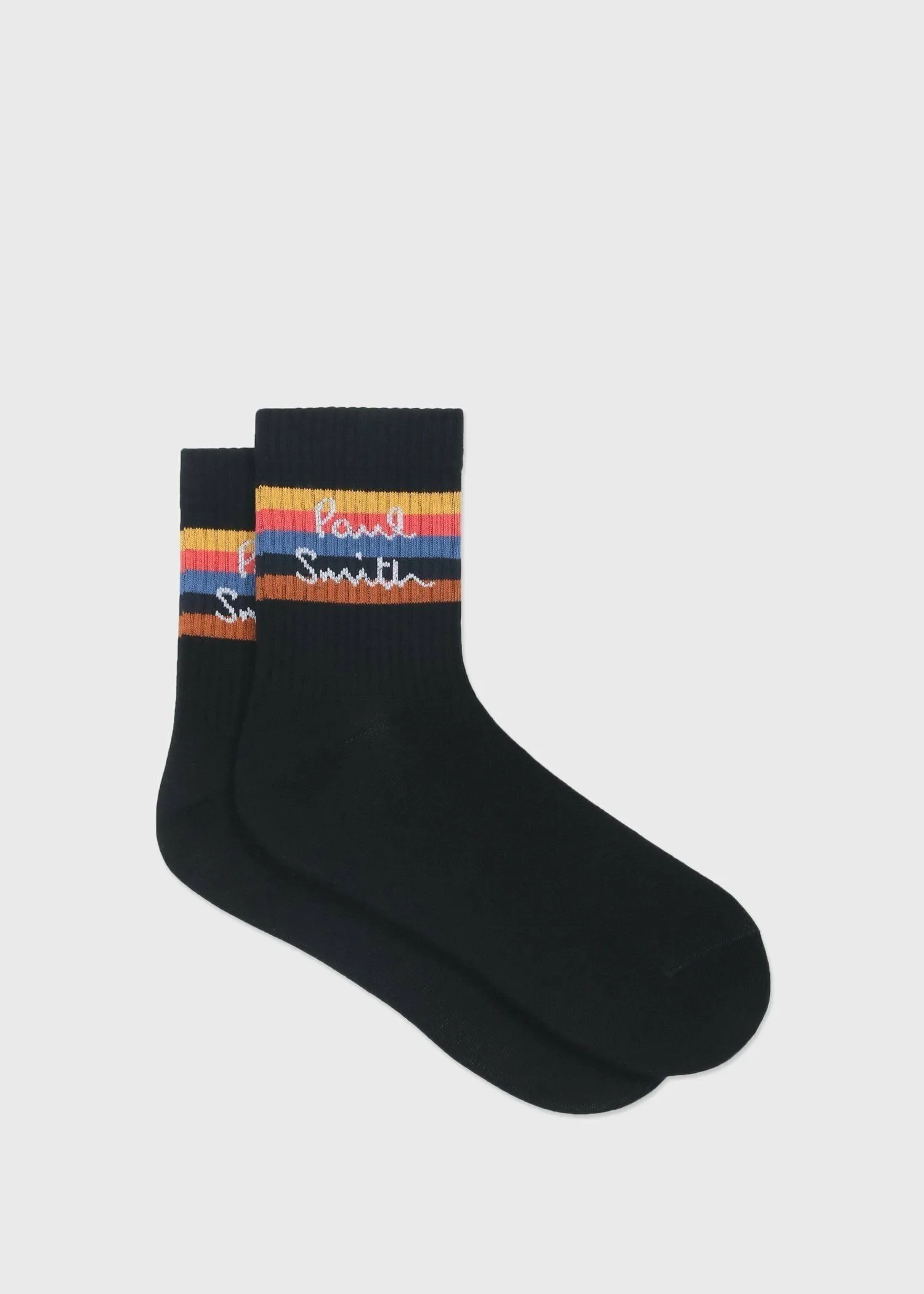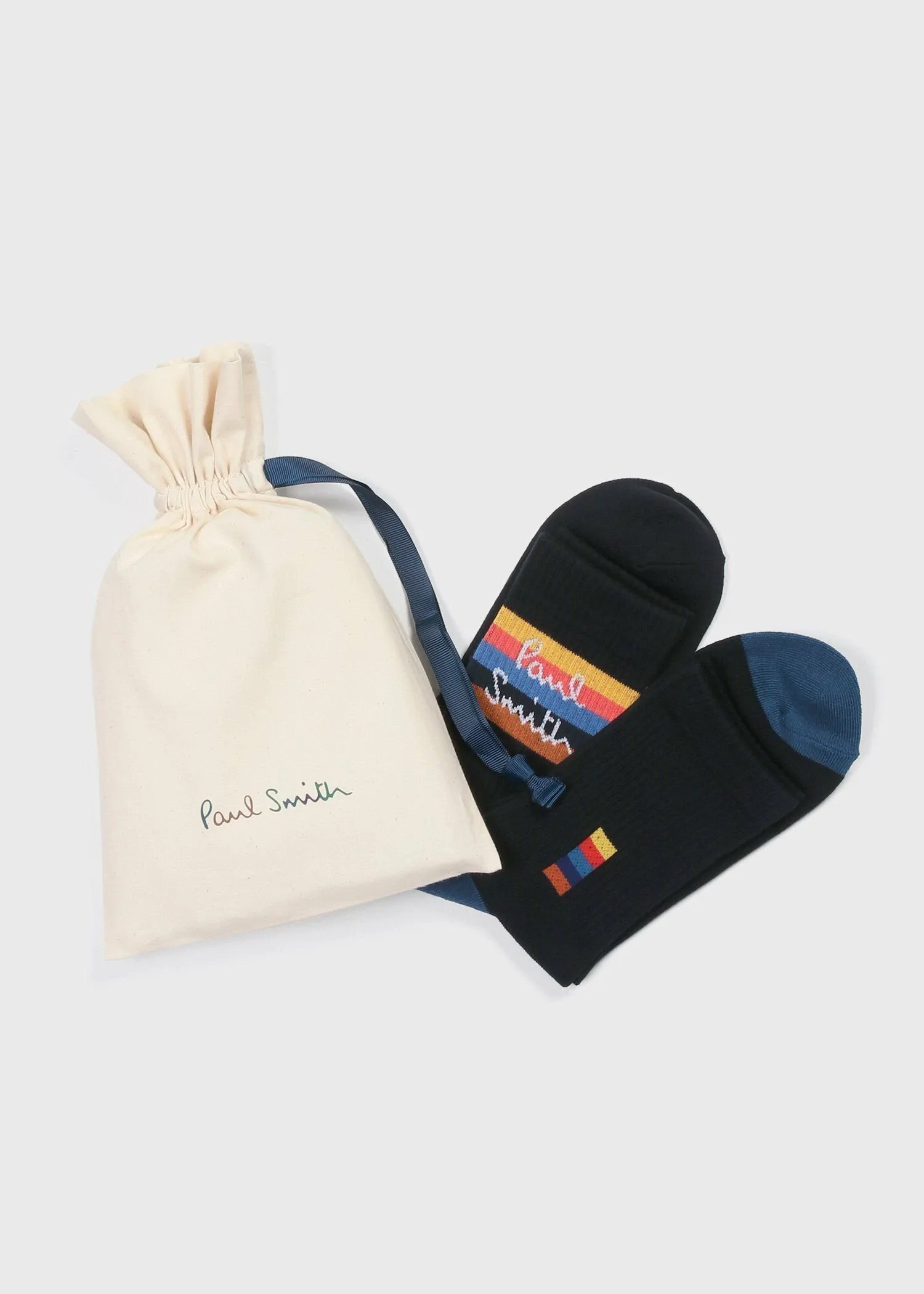 [Эксклюзивно в интернет-магазине] Специальный подарочный набор, эксклюзивно представленный в интернет-магазине, включает две пары носков, упакованных в красочный оригинальный мешочек с логотипом Paul Smith. [Носки с художественными полосками и логотипом] Яркий дизайн с красочными художественными полосками и перекрывающимся логотипом Paul Smith. Идеальный вариант для повседневного стиля. [Носки с художественными полосками] Повседневные носки с художественными полосками в качестве уникального акцента. Контрастные цвета на мыске и пятке добавляют изюминку. Сделано в Японии.