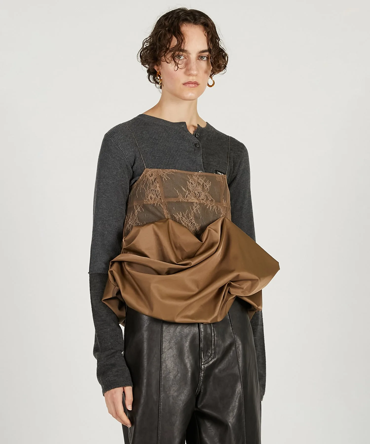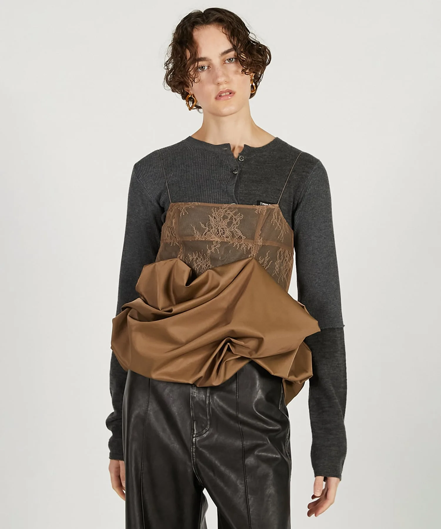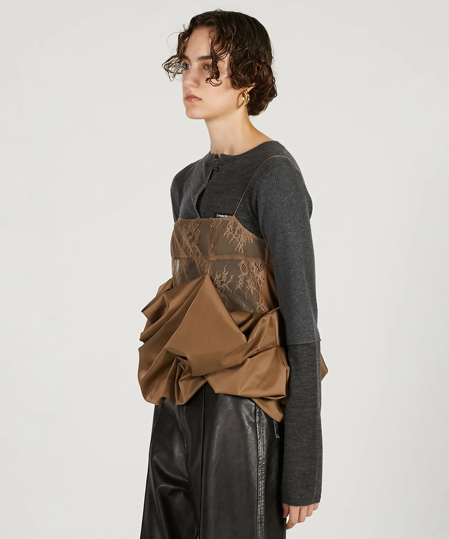 Нежное кружево на груди создает элегантный полупрозрачный эффект.