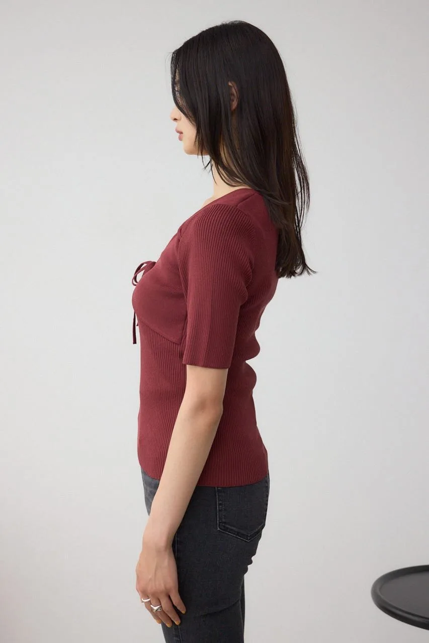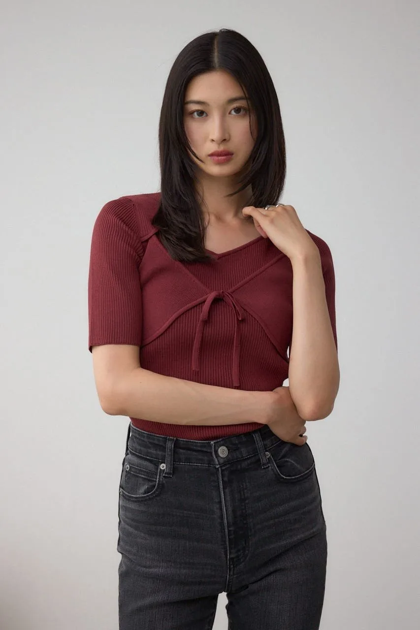 Этот вязаный бюстье имеет детали, создающие эффект многослойности.